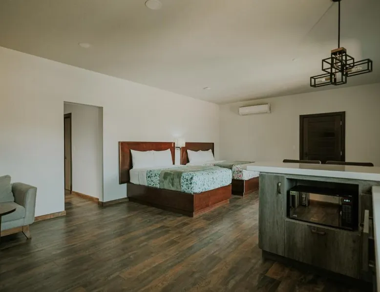 Comfortable Accommodations: Hacienda Los Olivos in Valle de Guadalupe offers spacious rooms with air-conditioning, private bathrooms, and garden or pool views. Guests enjoy free WiFi, streaming services, and soundproofing for a relaxing stay. Outdoor Amenities: The hotel features a sun terrace, garden, and a year-round outdoor swimming pool. Additional facilities include an outdoor fireplace, hot tub, and picnic area, providing ample opportunities for leisure and relaxation. Convenient Services: Hacienda Los Olivos provides a paid shuttle service, public bath, and free on-site private parking. The property offers a 24-hour front desk, concierge, and tour desk, ensuring all guest needs are met. Nearby Attractions: Located 66 mi from Tijuana International Airport, the hotel is close to Valle de Guadalupe vineyards and other local attractions. Guests can enjoy scenic views of the surrounding landscape and engage in various activities. This luxurious villa features a pool with a view, a hot tub and a spa bath. This spacious villa consists of 1 living room, 2 separate bedrooms and 1 bathroom with a shower and free toiletries. Meals can be prepared in the kitchen, which is equipped with a refrigerator, a dishwasher, kitchenware and an oven. The air-conditioned villa provides a flat-screen TV with streaming services, a private entrance, soundproof walls, a mini-bar as well as garden views. The unit offers 3 beds.