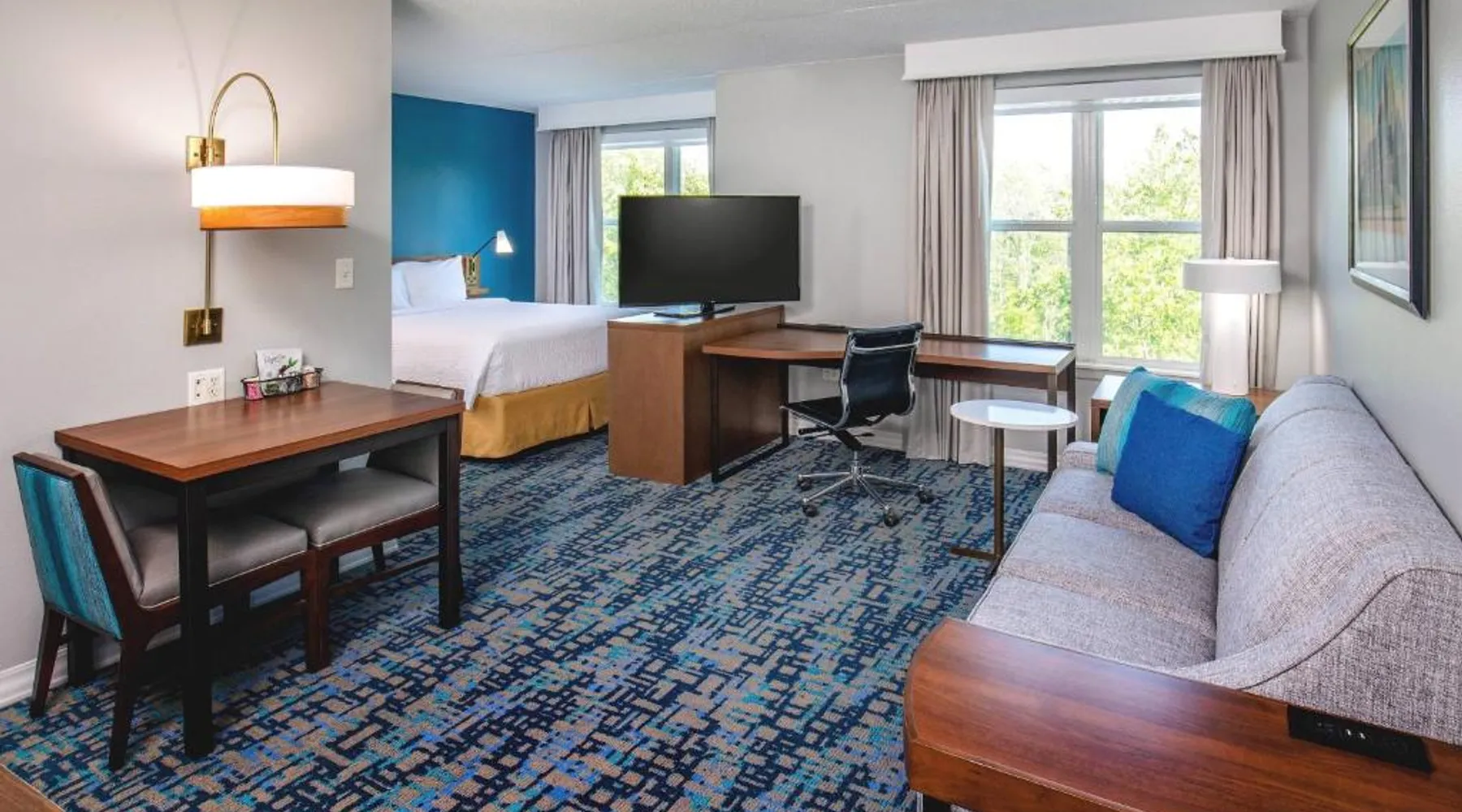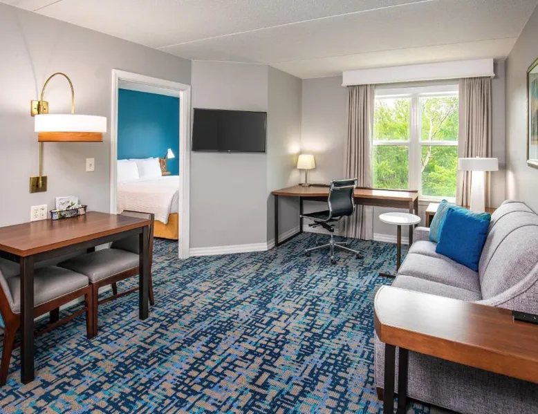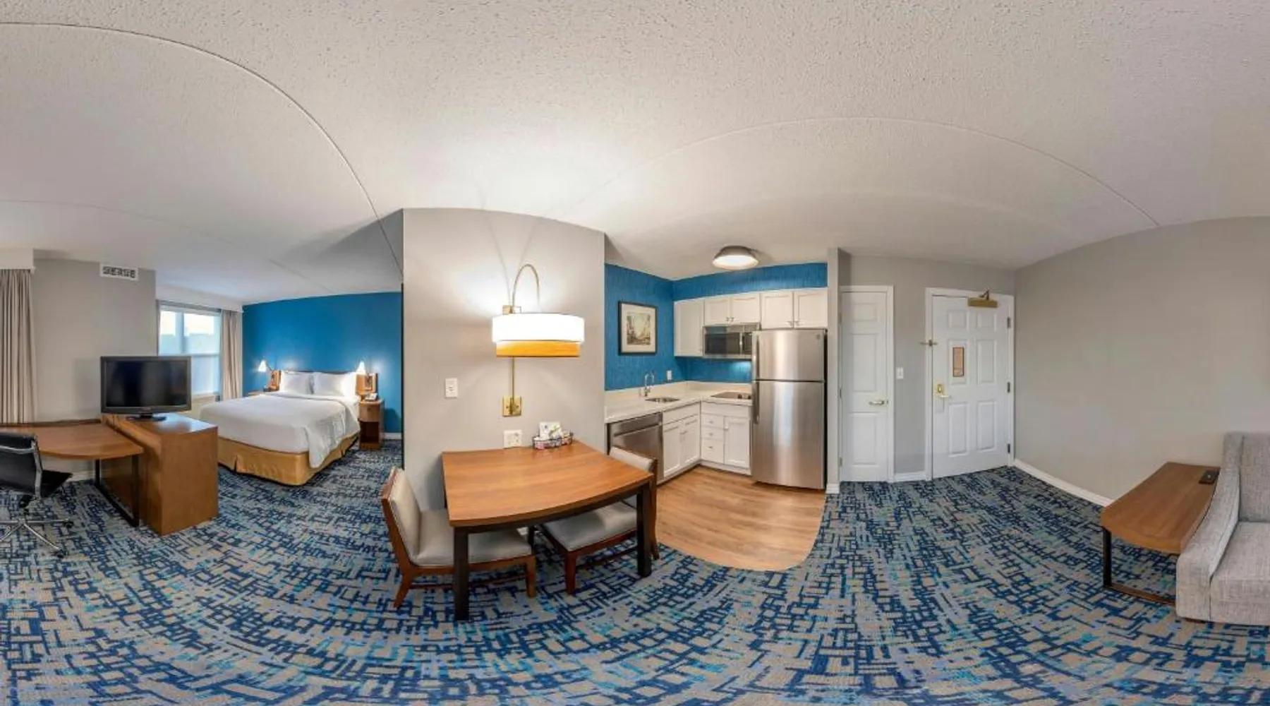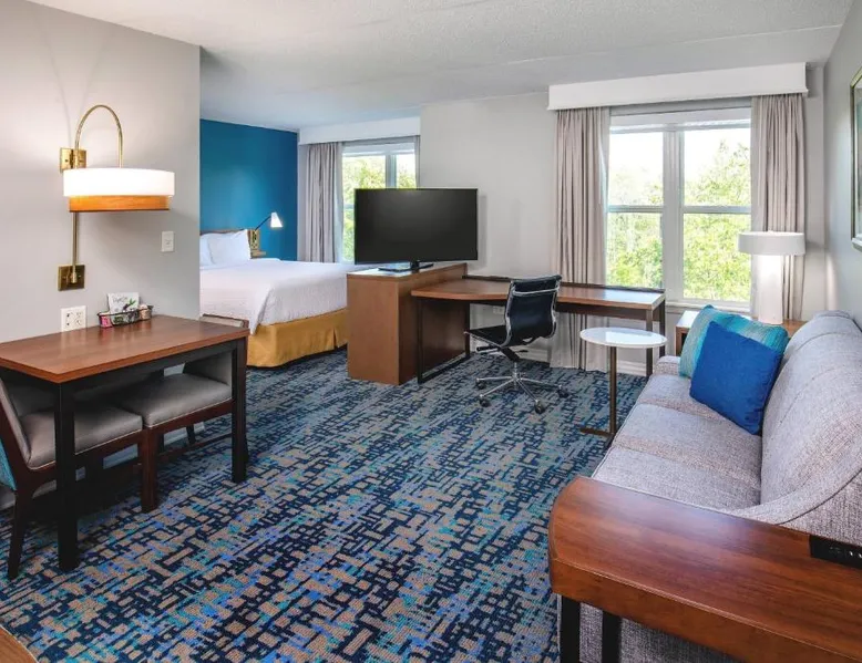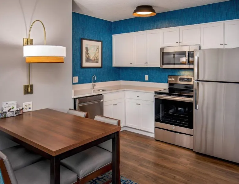 Located just 13 miles from downtown Boston, Residence Inn Boston Woburn offers easy access to major highways and the commuter rail, making it perfect for both business and leisure travelers. Nearby attractions include Burlington, Lexington, Andover, and Tewksbury. Enjoy our comfortable studios and suites, each featuring fully equipped kitchens with a refrigerator, cooktop, microwave, and coffee maker—ideal for extended stays. Unwind in our heated indoor pool or stay fit in the on-site fitness center. Additional conveniences include same-day dry cleaning, a 24-hour convenience store, and coin-operated laundry. Ample complimentary parking is available. Residence Inn Boston Woburn combines comfort and convenience for a memorable stay. This studio features an open layout including a fully equipped kitchen along with a seating area, cable TV, and a work desk.