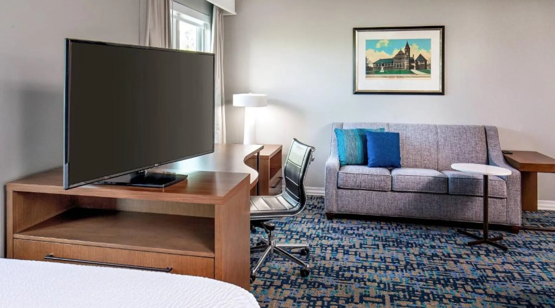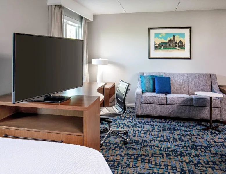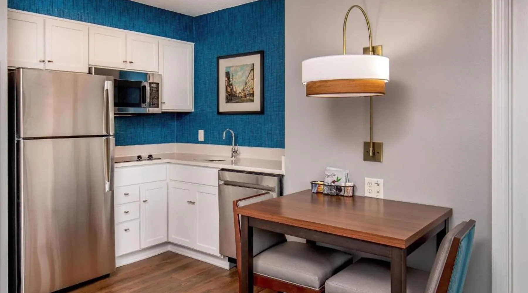 Located just 13 miles from downtown Boston, Residence Inn Boston Woburn offers easy access to major highways and the commuter rail, making it perfect for both business and leisure travelers. Nearby attractions include Burlington, Lexington, Andover, and Tewksbury. Enjoy our comfortable studios and suites, each featuring fully equipped kitchens with a refrigerator, cooktop, microwave, and coffee maker—ideal for extended stays. Unwind in our heated indoor pool or stay fit in the on-site fitness center. Additional conveniences include same-day dry cleaning, a 24-hour convenience store, and coin-operated laundry. Ample complimentary parking is available. Residence Inn Boston Woburn combines comfort and convenience for a memorable stay. This studio features an open layout including a fully equipped kitchen along with a seating area, cable TV, and a work desk.
