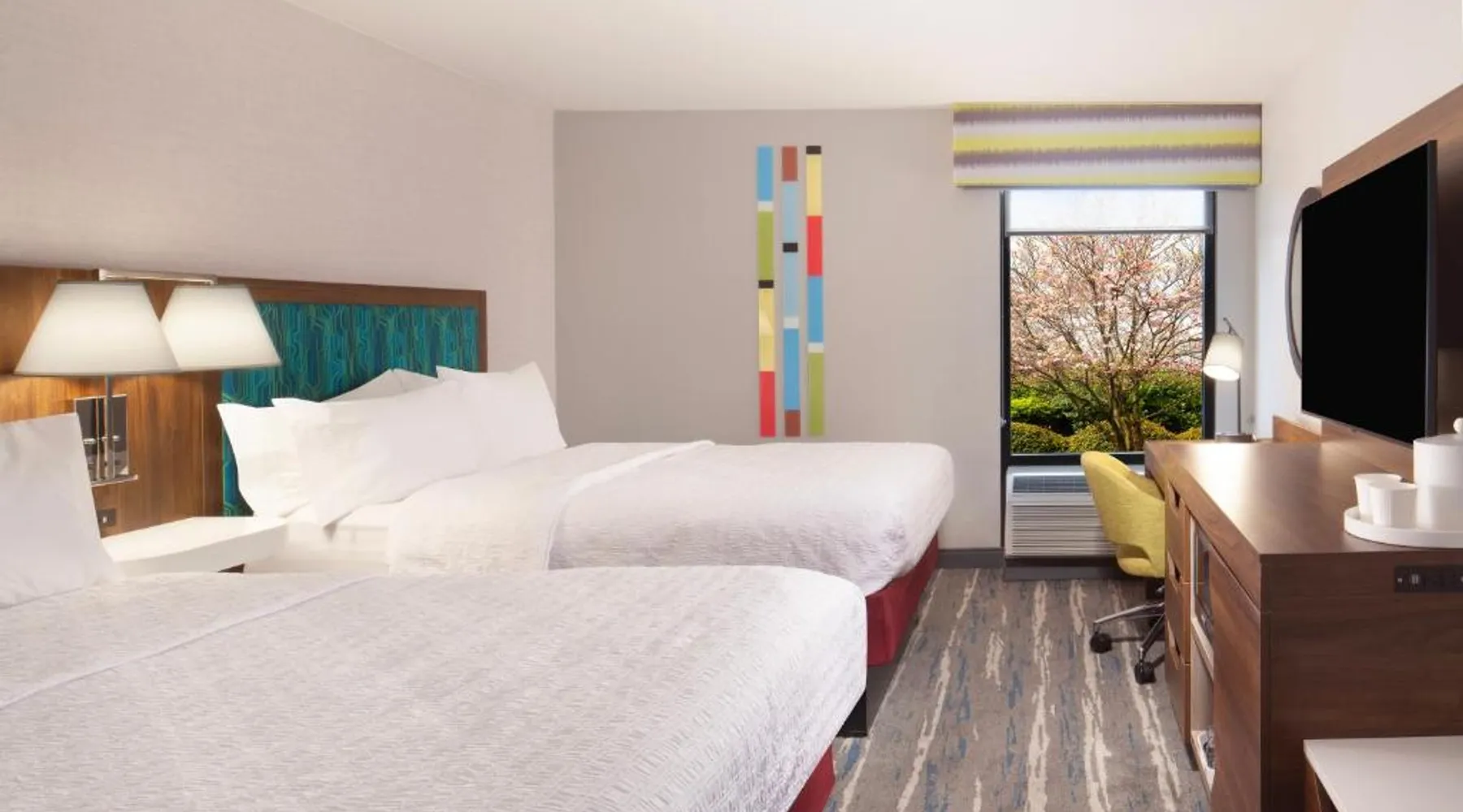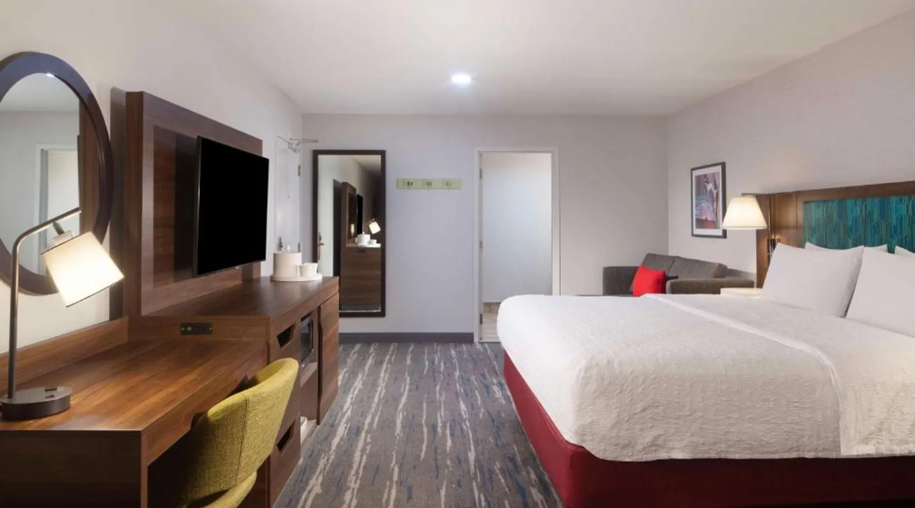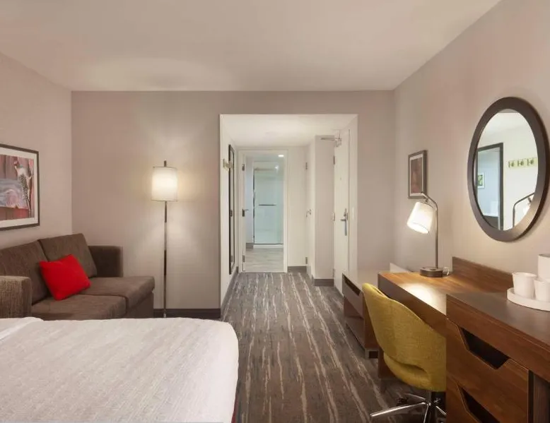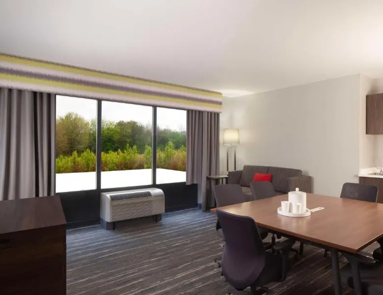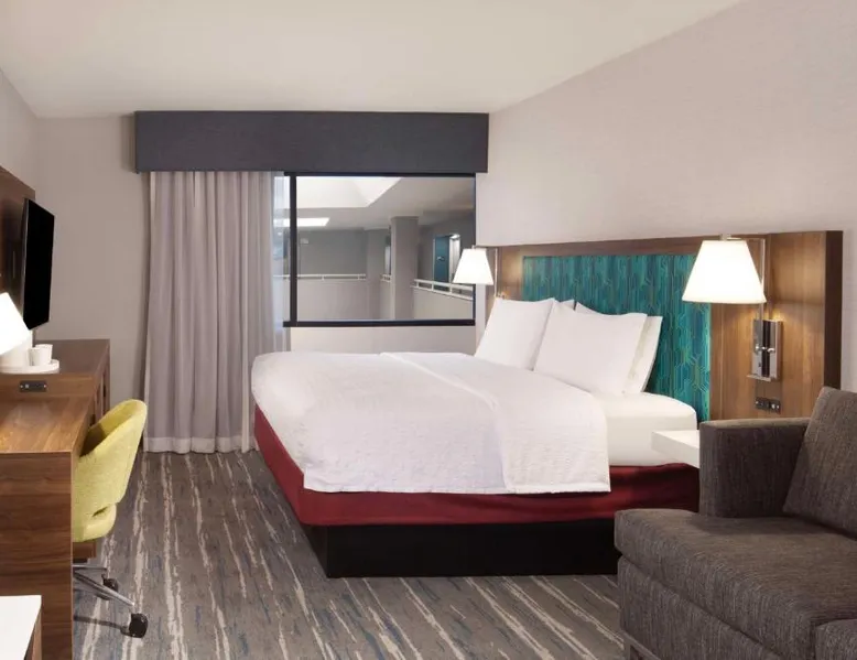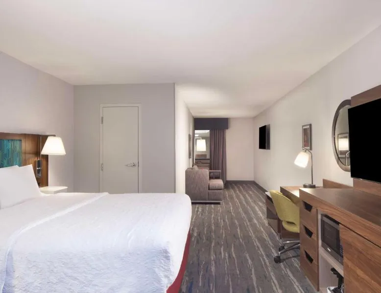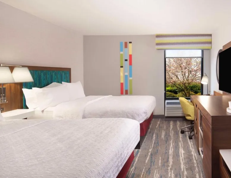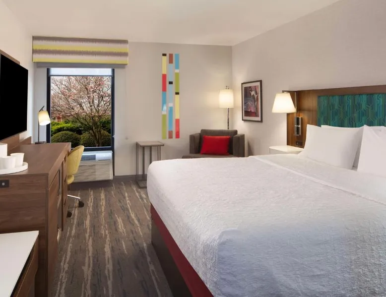 Comfortable Accommodations: Hampton Inn Athens in Athens offers family rooms with air-conditioning, free WiFi, and amenities such as a refrigerator, microwave, and TV. Each room includes a work desk, sofa bed, and bathrobes. Leisure Facilities: Guests can enjoy a seasonal outdoor swimming pool, fitness room, and free on-site parking. Additional facilities include a elevator and 24-hour front desk. Convenient Location: Located 48 mi from Chattanooga Metropolitan Airport, the hotel is highly rated by guests for its excellent service and comfortable accommodations. This room features a microwave, refrigerator, and cable TV. A sofa bed is also included.