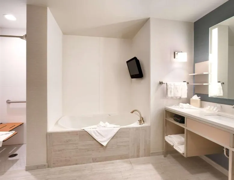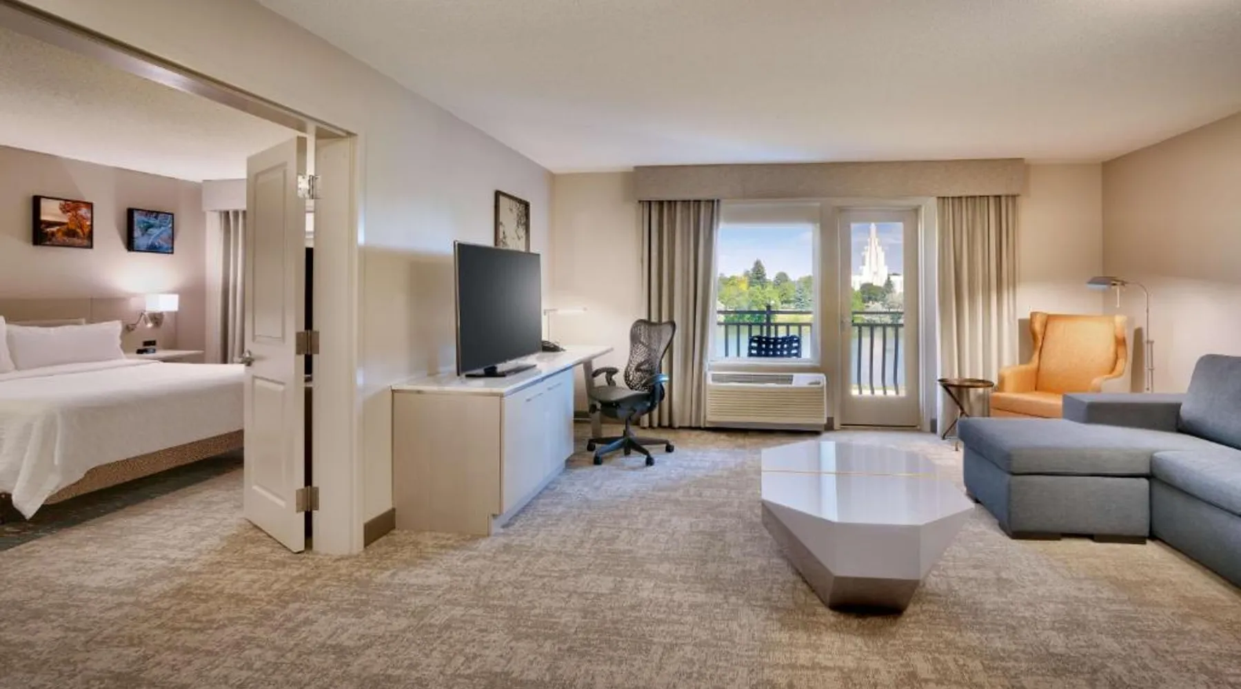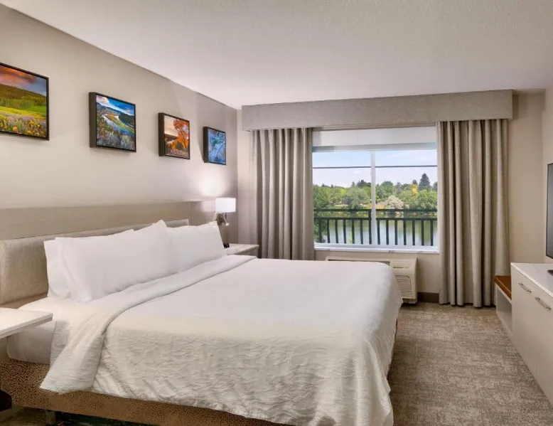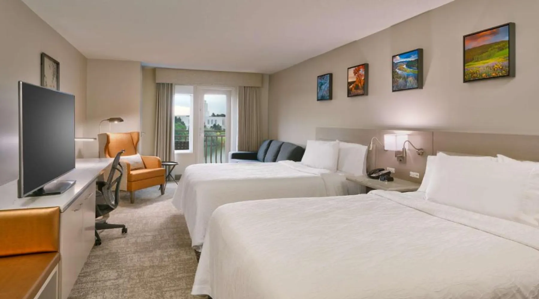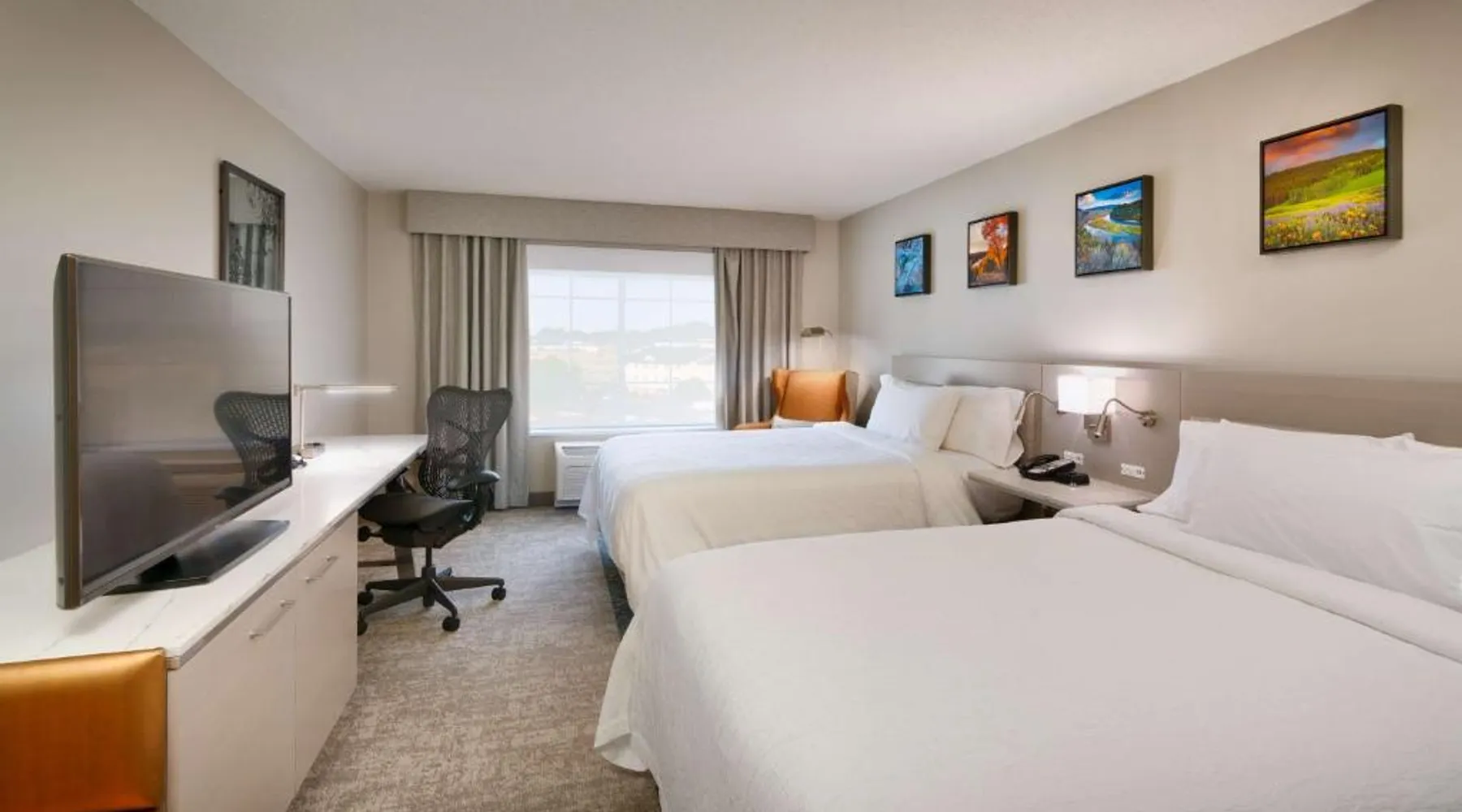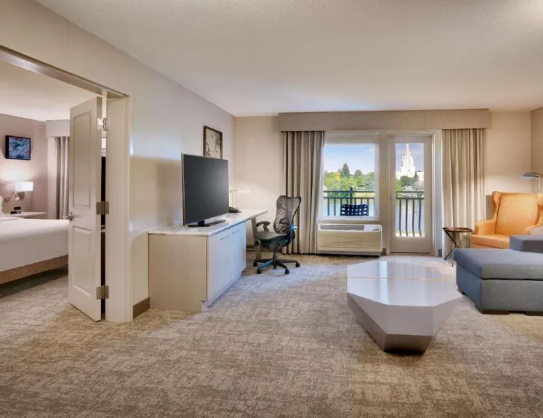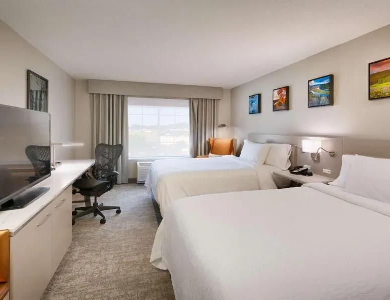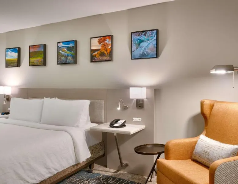 Comfortable Accommodations: Hilton Garden Inn Idaho Falls in Idaho Falls offers family rooms with air-conditioning, free WiFi, and modern amenities. Each room includes a work desk, refrigerator, and TV. Dining and Leisure: The family-friendly restaurant serves American cuisine for dinner. Guests can relax at the bar or unwind in the indoor swimming pool. Additional facilities include a sun terrace and hot tub. Convenient Location: Located 17 mi from Idaho Falls Regional Airport and 28 mi from Eliza R. Snow Performing Arts Center. Guests appreciate the scenic views and the hotel’s convenient location. Featuring a river view, this spacious suite provides free Wi-Fi, a flat-screen cable TV, a seating area and free toiletries in the private bathroom. Tea and coffee-making facilities are also offered.