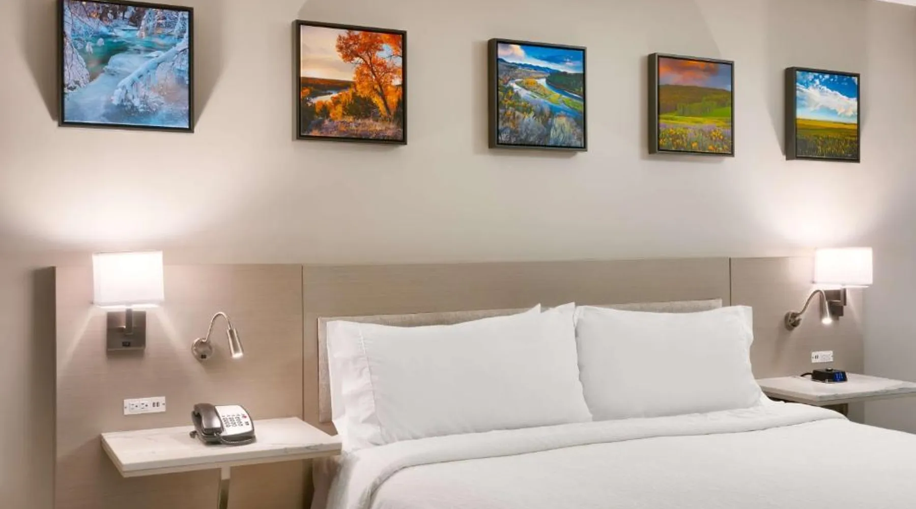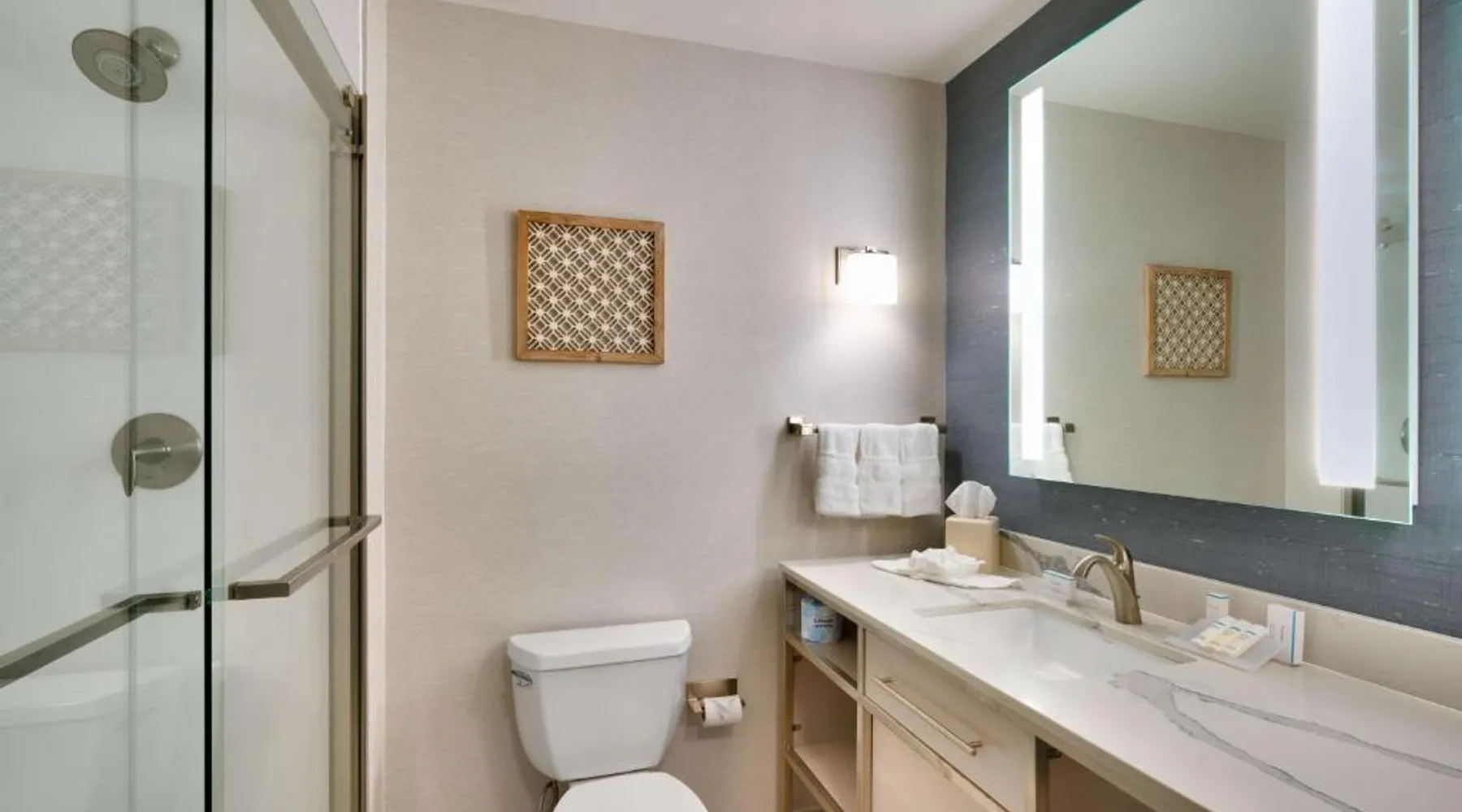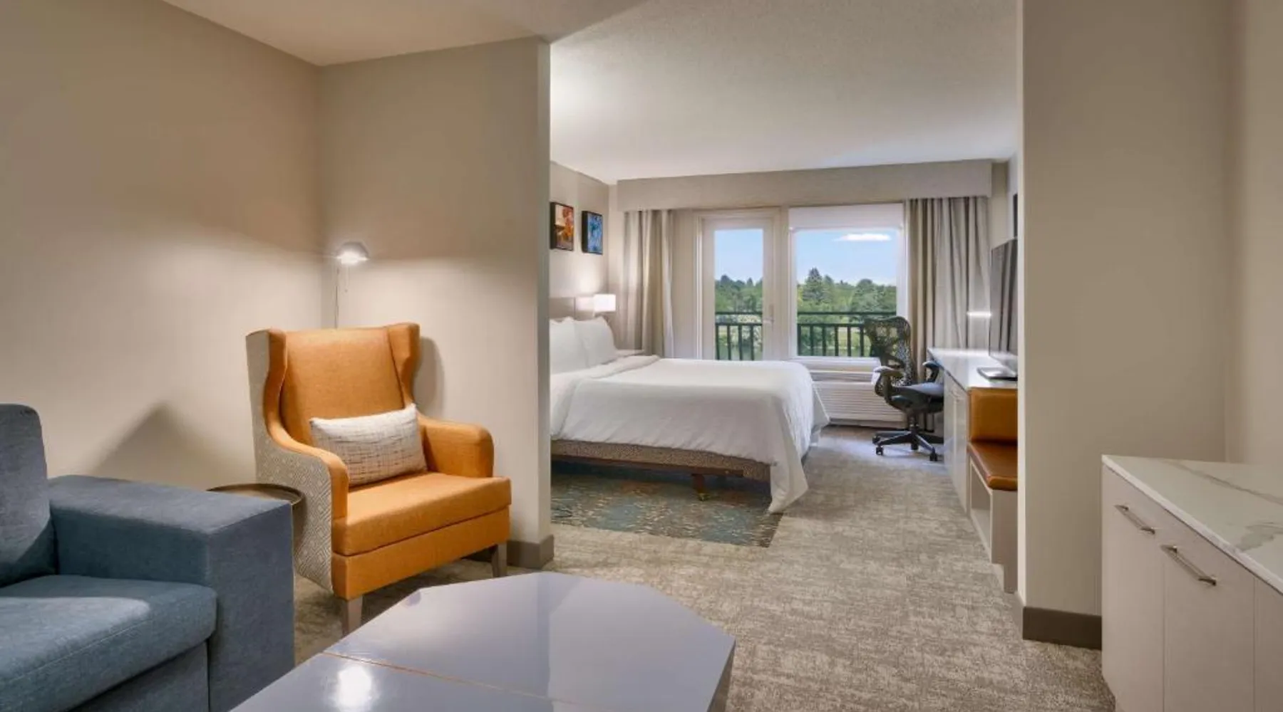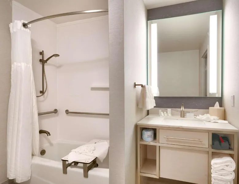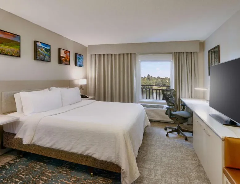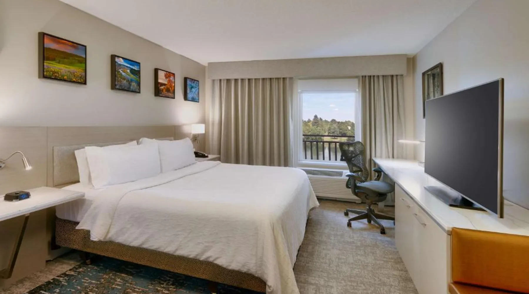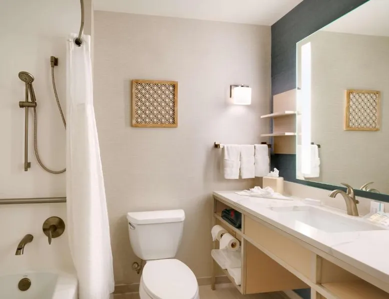 Comfortable Accommodations: Hilton Garden Inn Idaho Falls in Idaho Falls offers family rooms with air-conditioning, free WiFi, and modern amenities. Each room includes a work desk, refrigerator, and TV. Dining and Leisure: The family-friendly restaurant serves American cuisine for dinner. Guests can relax at the bar or unwind in the indoor swimming pool. Additional facilities include a sun terrace and hot tub. Convenient Location: Located 17 mi from Idaho Falls Regional Airport and 28 mi from Eliza R. Snow Performing Arts Center. Guests appreciate the scenic views and the hotel’s convenient location. Featuring a river view, this spacious suite provides free Wi-Fi, a flat-screen cable TV, a seating area and free toiletries in the private bathroom. Tea and coffee-making facilities are also offered.