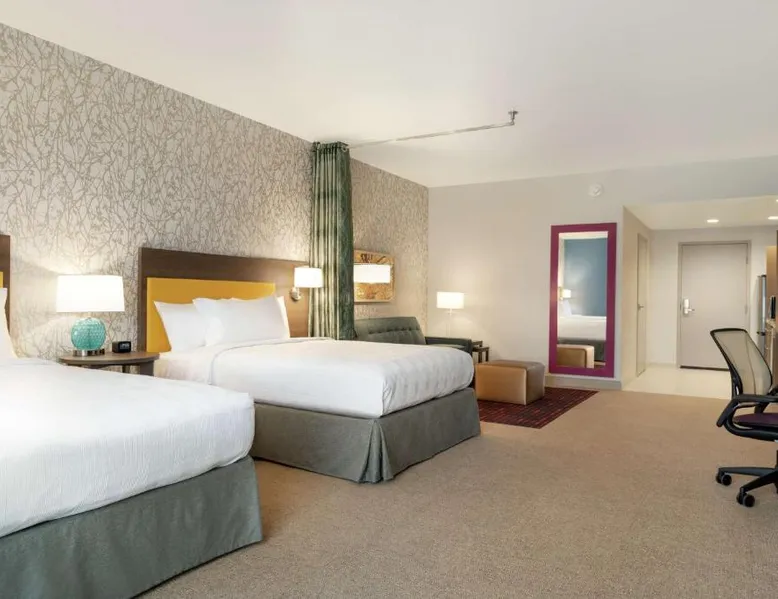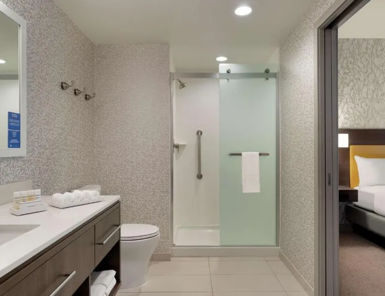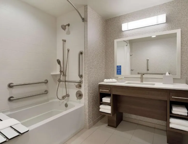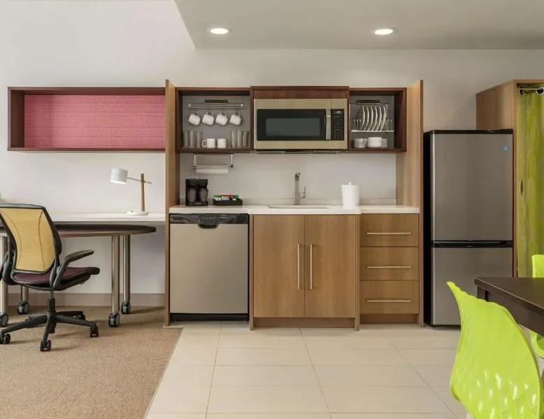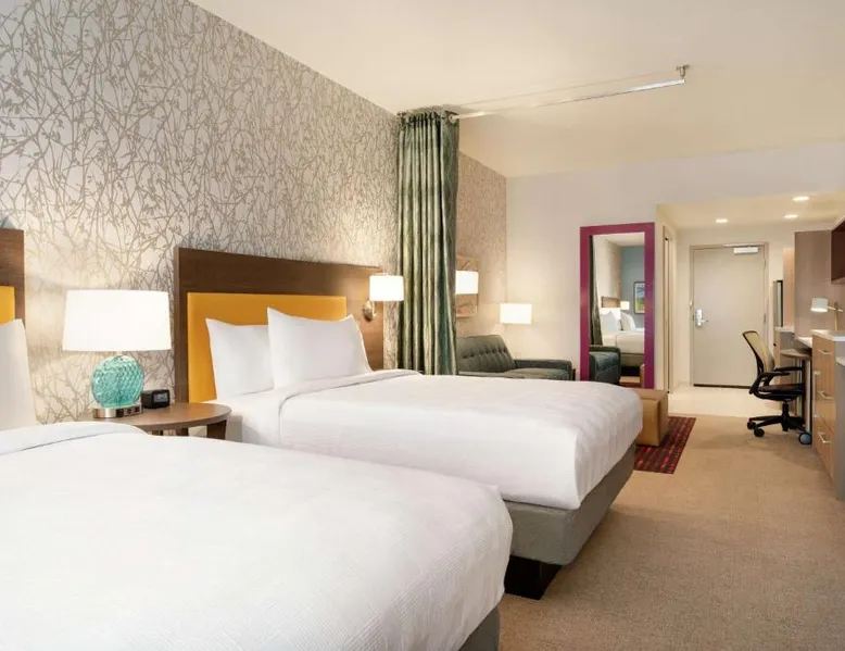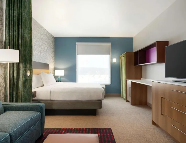 Comfortable Accommodations: Home2 Suites By Hilton Martinsburg, WV in Martinsburg offers family rooms with air-conditioning, kitchen facilities, and free WiFi. Each room includes a sofa bed, work desk, and free toiletries. Exceptional Facilities: Guests can enjoy an indoor swimming pool, fitness room, and outdoor fireplace. Additional amenities include a coffee shop, outdoor seating area, and barbecue facilities. Free on-site private parking is available. Delicious Breakfast: A buffet breakfast is served daily, featuring fresh pastries, pancakes, fruits, and juice. The property staff and service support receive high ratings from guests. Convenient Location: Located 24 mi from Hagerstown Regional Airport, the hotel is near attractions such as Locust Hill Golf Course (20 mi) and Harpers Ferry National Historical Park (22 mi). The fully equipped kitchen features a refrigerator, a dishwasher, kitchenware and a microwave. The air-conditioned suite provides a flat-screen TV with cable channels, a tea and coffee maker, a seating area and heating. The unit offers 2 beds.