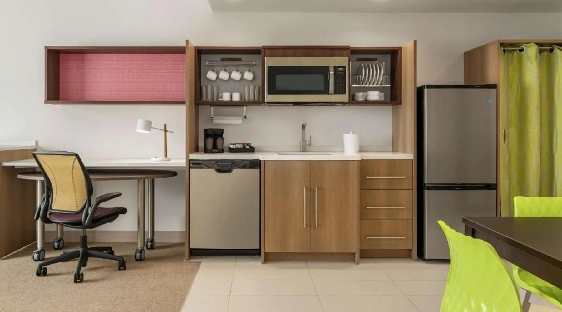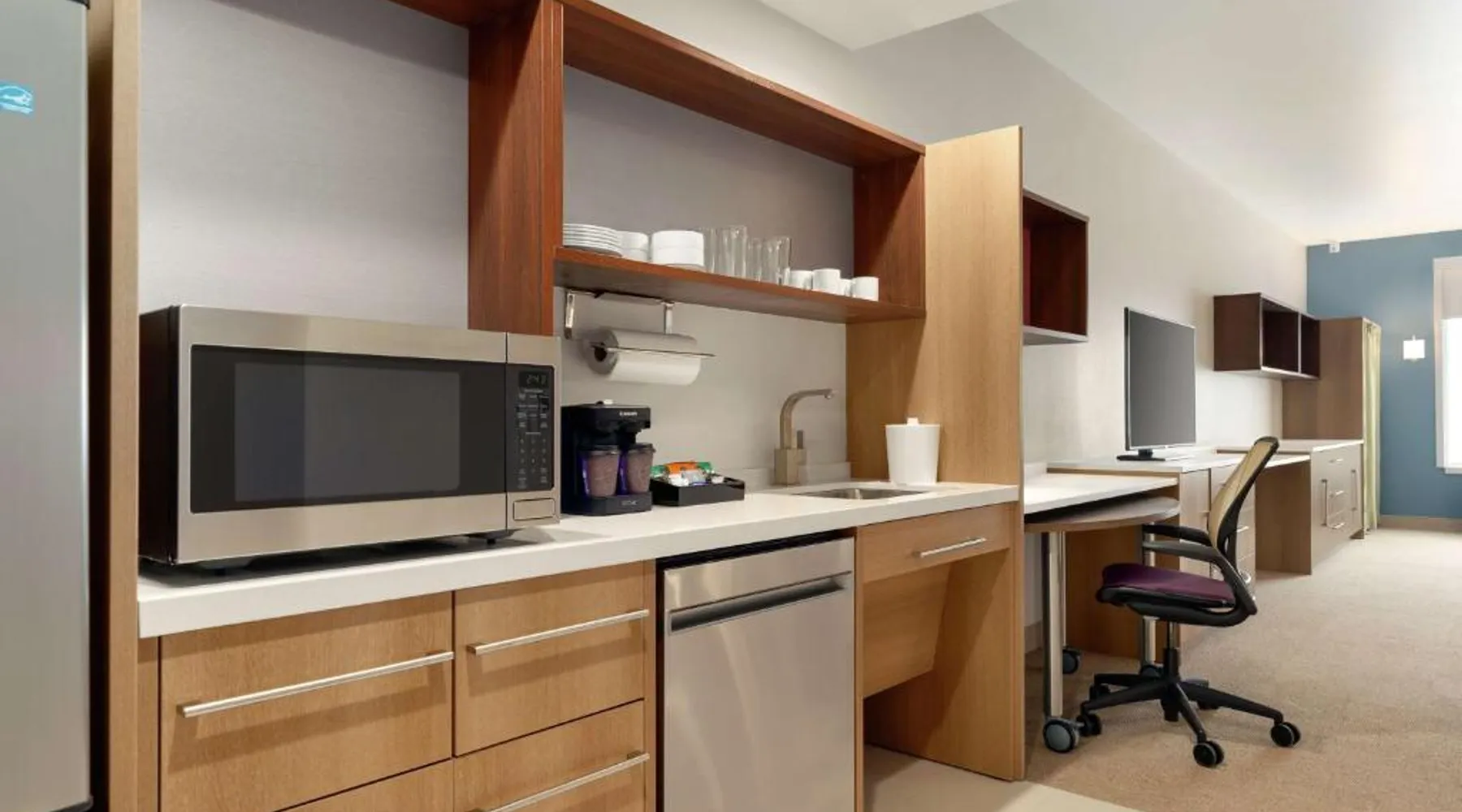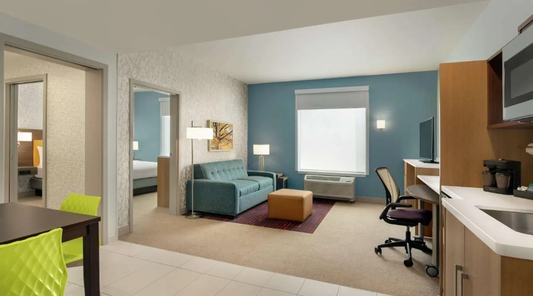 Comfortable Accommodations: Home2 Suites By Hilton Martinsburg, WV in Martinsburg offers family rooms with air-conditioning, kitchen facilities, and free WiFi. Each room includes a sofa bed, work desk, and free toiletries. Exceptional Facilities: Guests can enjoy an indoor swimming pool, fitness room, and outdoor fireplace. Additional amenities include a coffee shop, outdoor seating area, and barbecue facilities. Free on-site private parking is available. Delicious Breakfast: A buffet breakfast is served daily, featuring fresh pastries, pancakes, fruits, and juice. The property staff and service support receive high ratings from guests. Convenient Location: Located 24 mi from Hagerstown Regional Airport, the hotel is near attractions such as Locust Hill Golf Course (20 mi) and Harpers Ferry National Historical Park (22 mi). The fully equipped kitchen features a refrigerator, a dishwasher, kitchenware and a microwave. The air-conditioned suite provides a flat-screen TV with cable channels, a tea and coffee maker, a seating area and heating. The unit offers 2 beds.