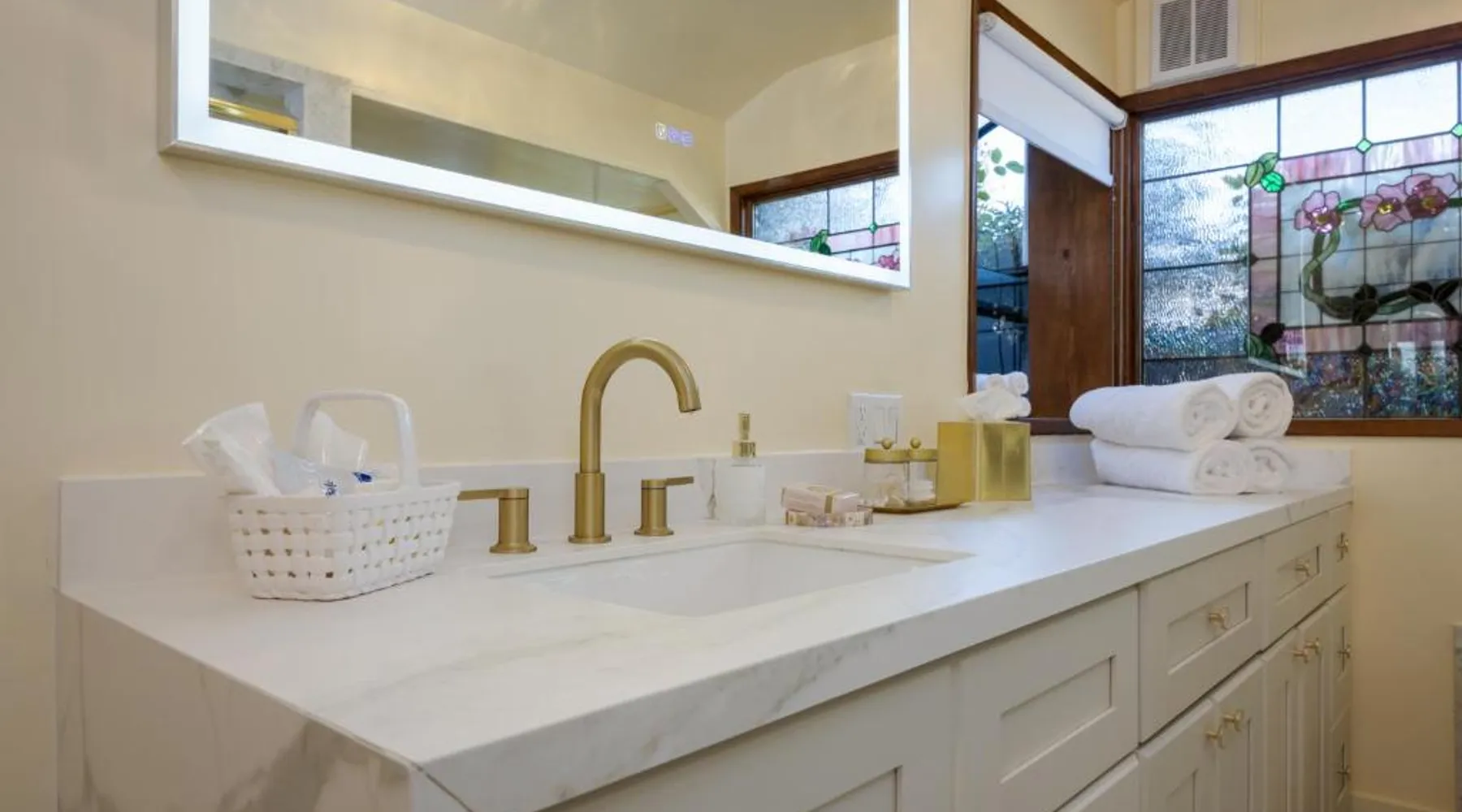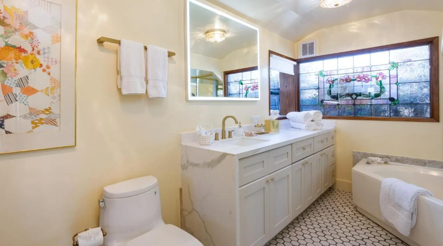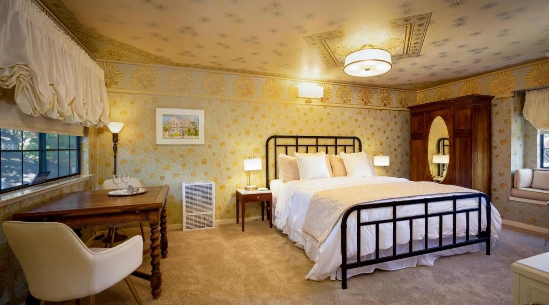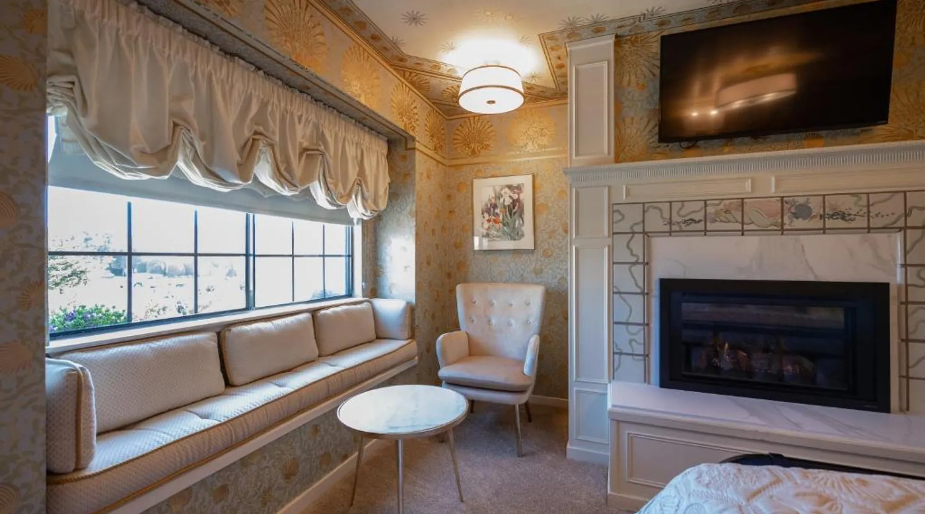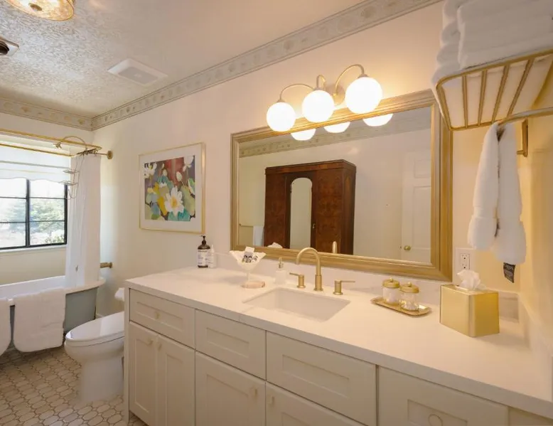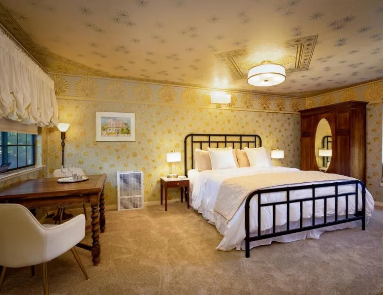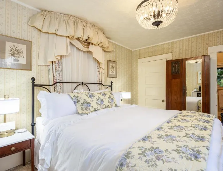 Elegant Accommodations: Mill Rose Inn in Half Moon Bay offers a 4-star bed and breakfast experience with a beautiful garden and terrace. Guests enjoy free WiFi, ensuring connectivity during their stay. Comfortable Amenities: The property features private bathrooms with bathrobes, mini-bars, and soundproofing. Additional amenities include spa baths, fireplaces, and private pools, providing relaxation and comfort. Delicious Breakfast: A variety of breakfast options are available, including vegetarian, vegan, and gluten-free choices. Local specialties, warm dishes, and fresh fruits are served in-room or outdoor seating areas. Convenient Location: Located 16 mi from San Francisco International Airport, Mill Rose Inn is an 18-minute walk from Half Moon Bay State Beach. Nearby attractions include Shoreline Amphitheater and Lands End Lookout Visitor Center. This spacious, private suite offers antique furnishings, bay windows with garden views, and a claw-foot bath tub. A separate seating area with a fireplace is also included.