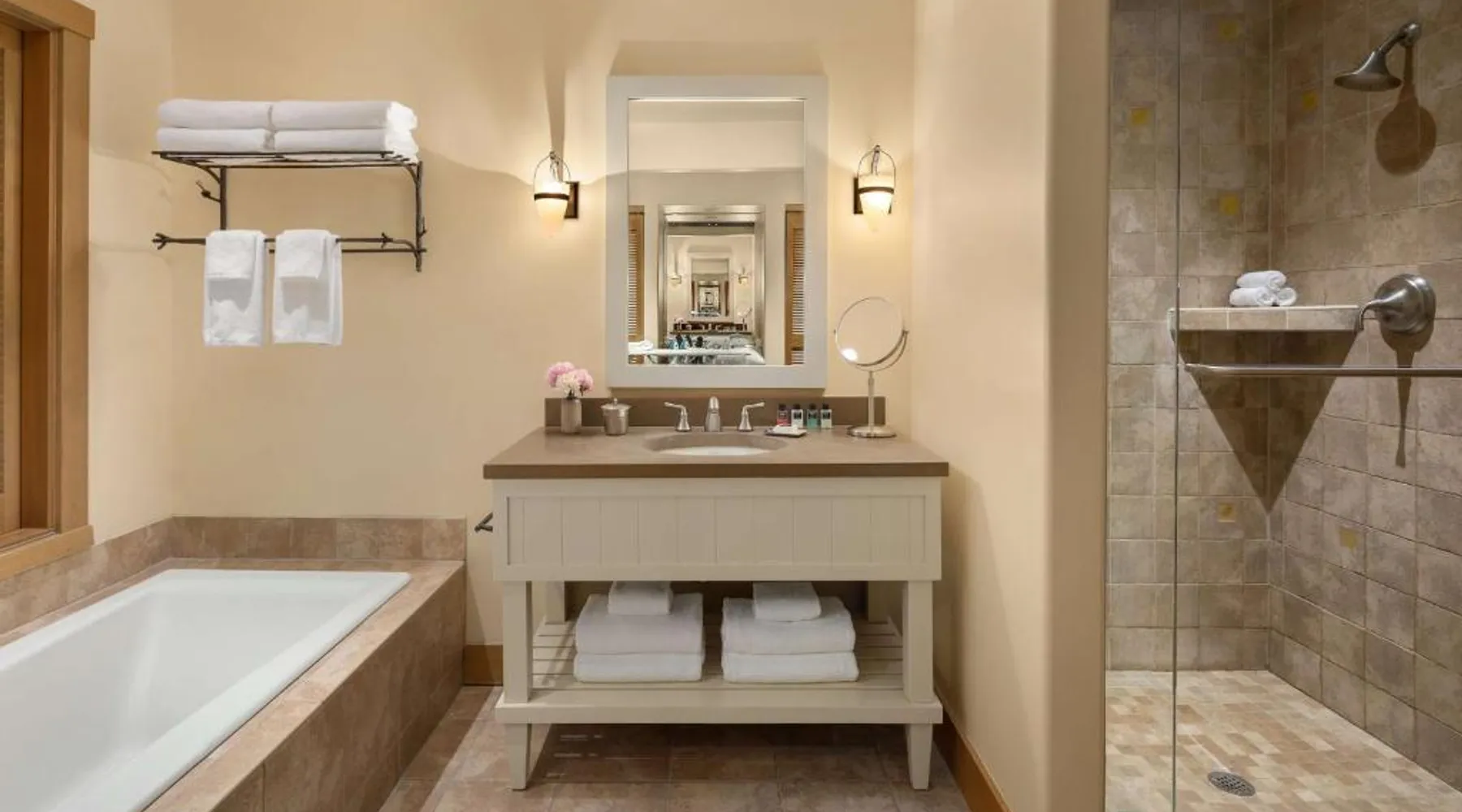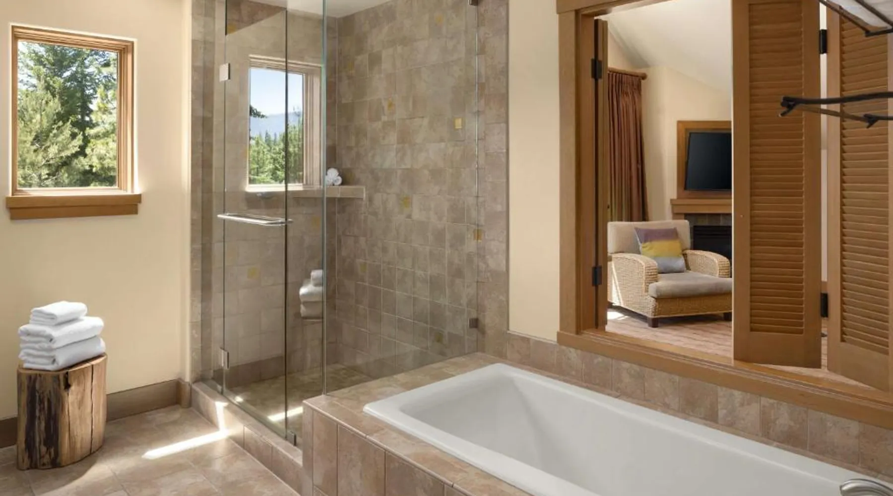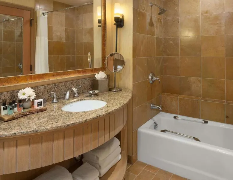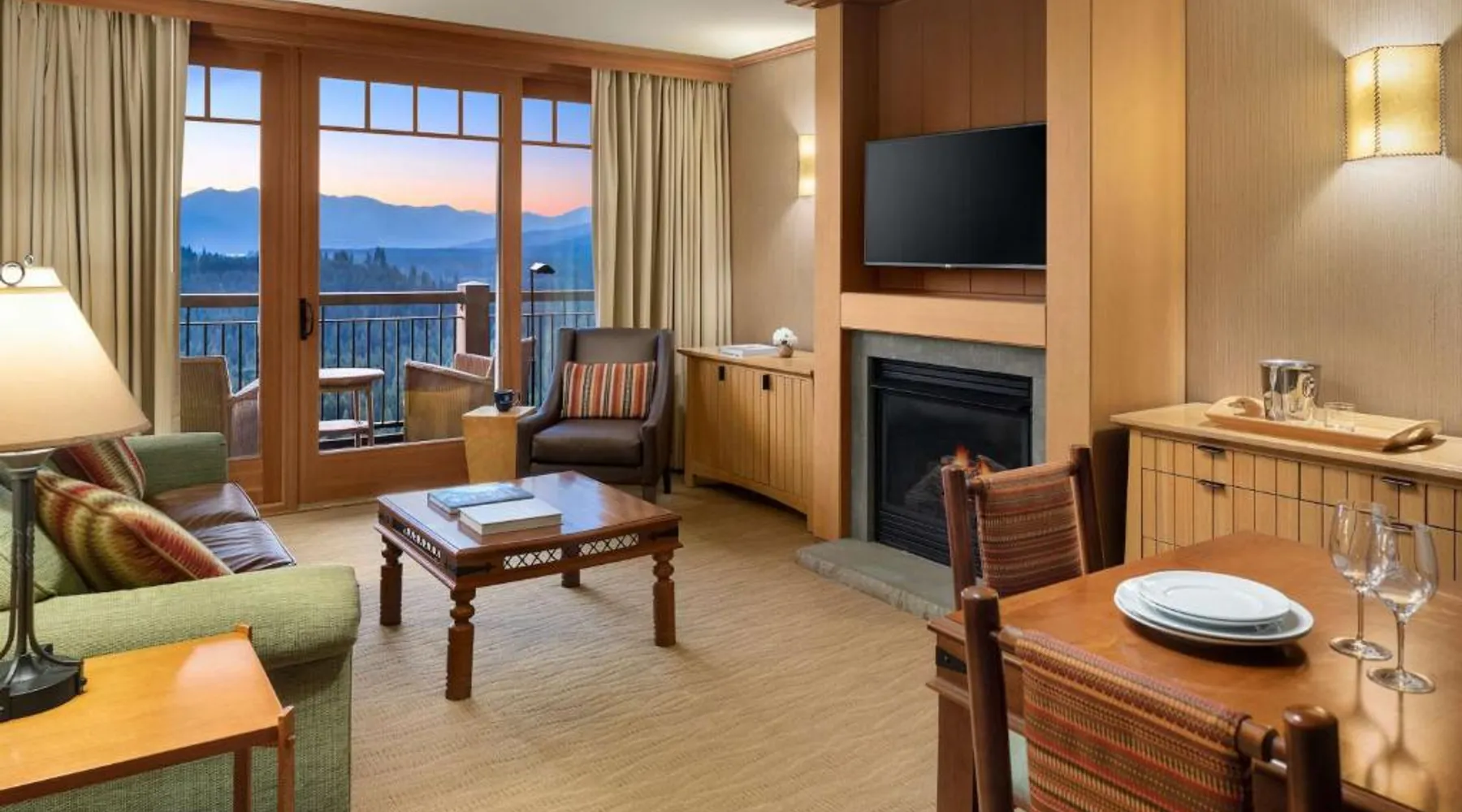 Comfortable Accommodations: Suncadia Resort in Cle Elum offers family rooms with air-conditioning, free WiFi, and amenities such as tea and coffee makers, hairdryers, and wardrobes. Each room includes a bath or shower, TV, and free toiletries. Leisure Facilities: Guests can enjoy spa facilities, a sauna, fitness center, sun terrace, and seasonal outdoor and indoor swimming pools. Additional amenities include a hot tub, steam room, and yoga classes. Dining Experience: The family-friendly restaurant serves American cuisine with vegetarian, vegan, and gluten-free options. Dining options include lunch, dinner, and cocktails in a traditional ambiance. Location and Activities: Located 71 mi from Yakima Air Terminal, the resort offers hiking, cycling, and film nights. Guests appreciate the scenic views and proximity to nature. This air-conditioned suite is consisted of of a TV with cable channels and a shared bathroom.