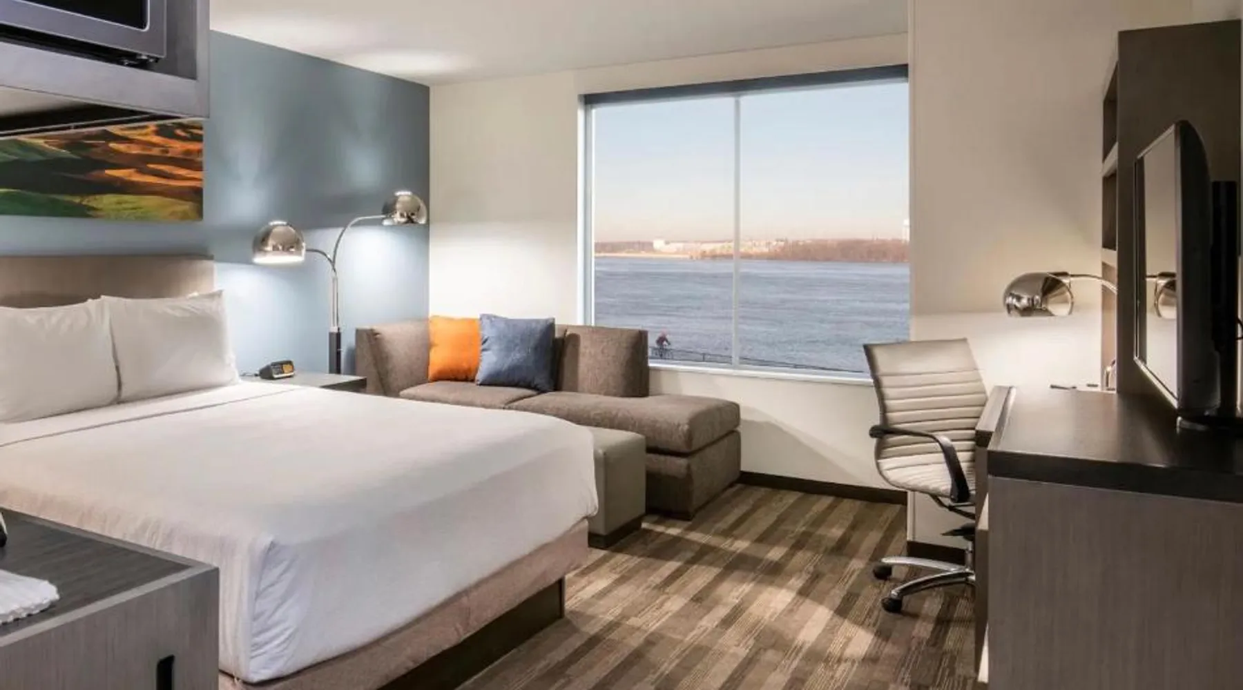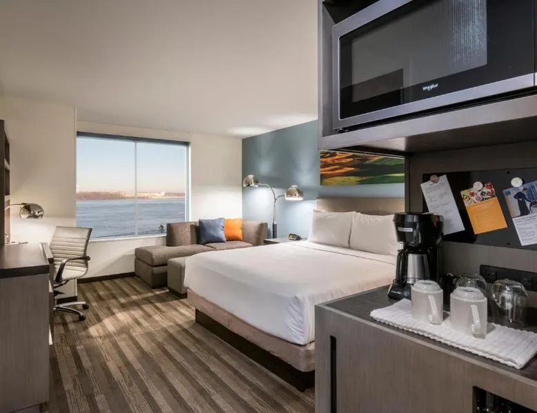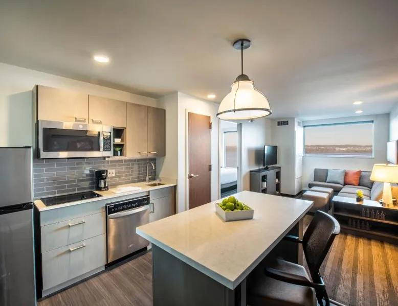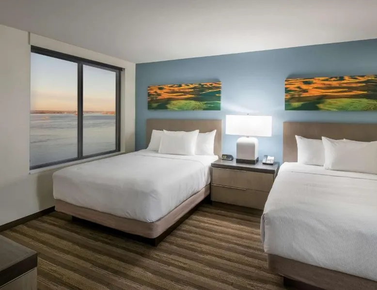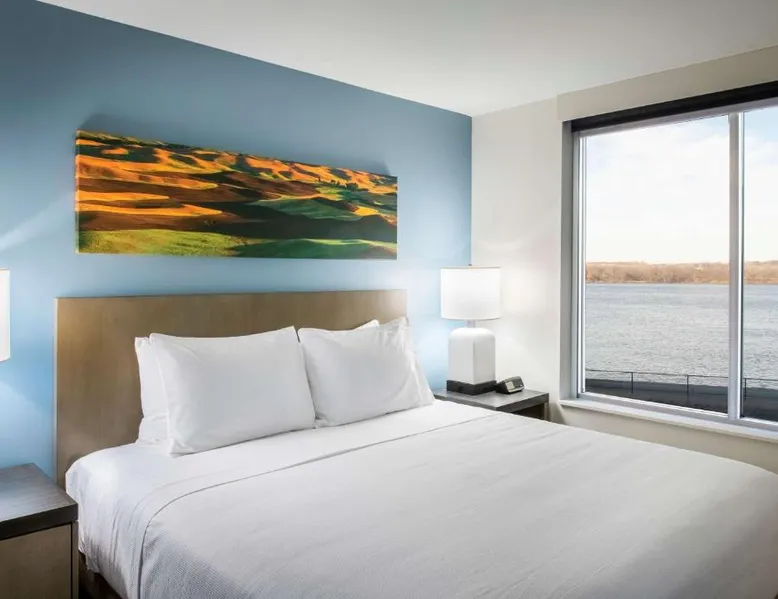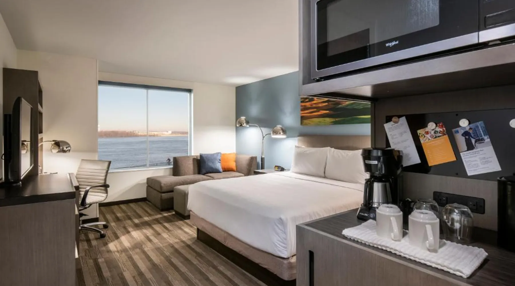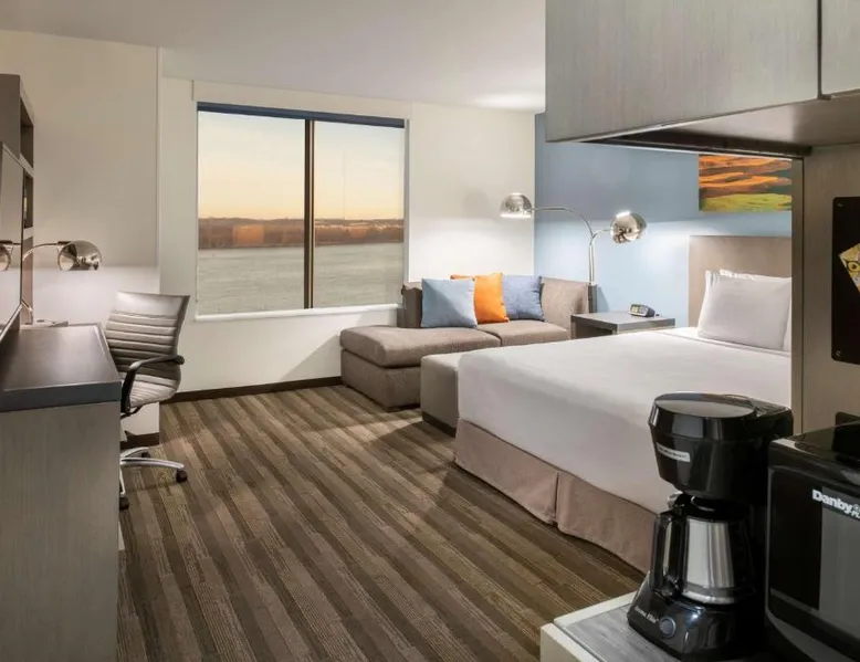 Comfortable Accommodations: Hyatt House East Moline/Quad Cities in East Moline offers family rooms with air-conditioning, private bathrooms, and modern amenities. Each room includes a tea and coffee maker, hairdryer, sofa bed, and work desk. Exceptional Facilities: Guests can enjoy a fitness center, terrace, indoor swimming pool, and free WiFi. Additional amenities include a lounge, outdoor fireplace, fitness room, and 24-hour front desk. Dining Options: The hotel serves American cuisine with a buffet breakfast. On-site dining options include a restaurant and bar, catering to diverse preferences. Prime Location: Located 8.1 mi from Quad City International Airport, the hotel is near attractions such as TaxSlayer Center (4.3 mi) and Fryxell Geology Museum (5.6 mi). Guests appreciate the scenic views and excellent service. This air-conditioned suite includes a flat-screen TV with cable channels and a private bathroom. The unit offers 3 beds.