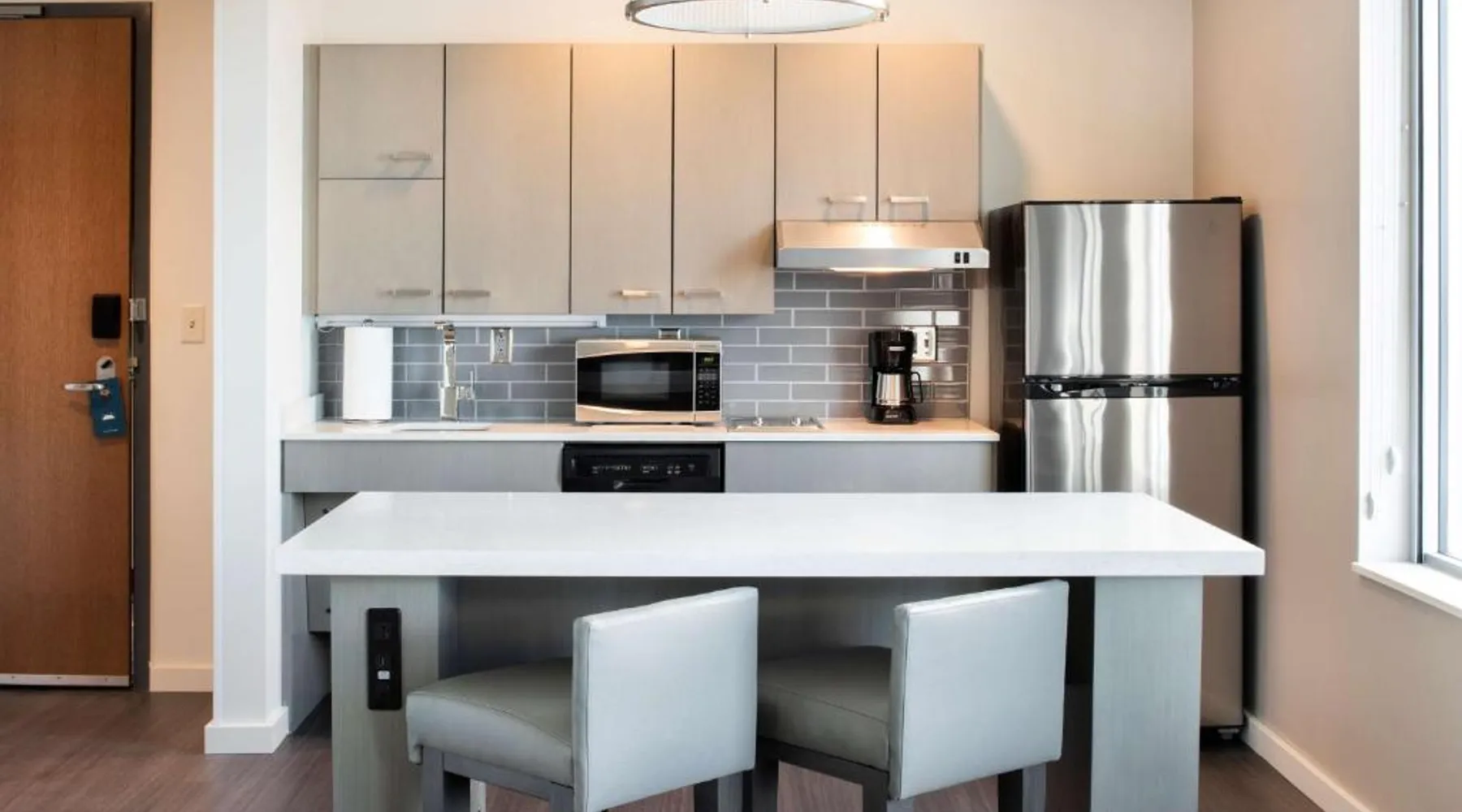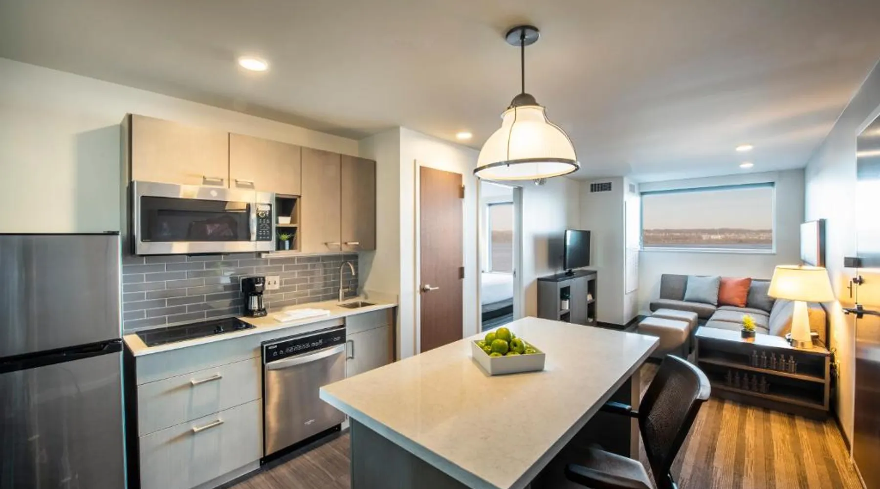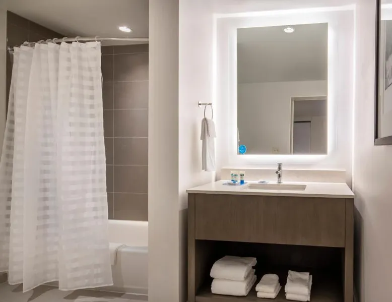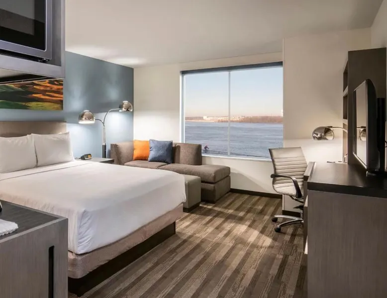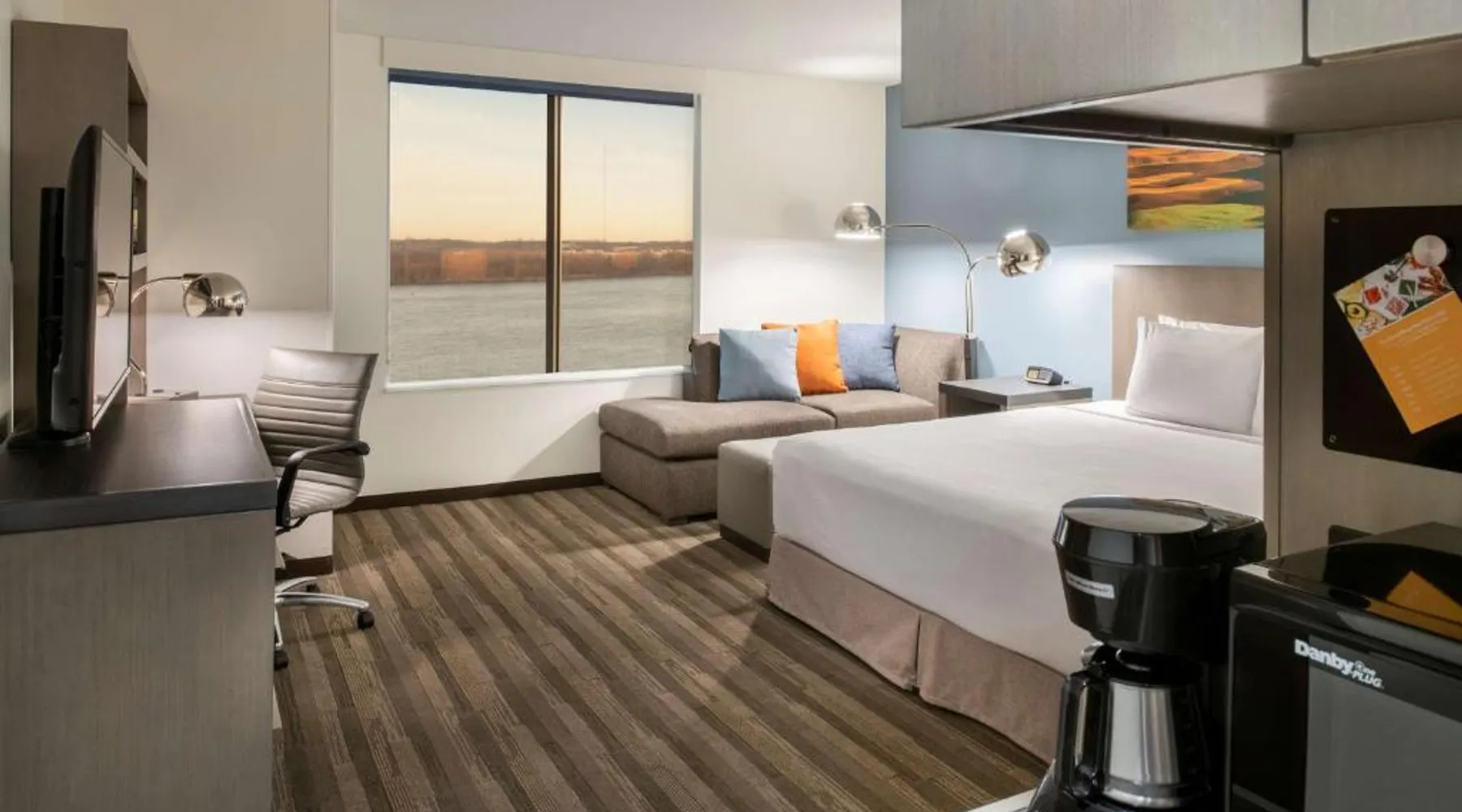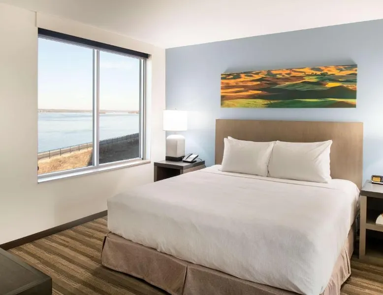 Comfortable Accommodations: Hyatt House East Moline/Quad Cities in East Moline offers family rooms with air-conditioning, private bathrooms, and modern amenities. Each room includes a tea and coffee maker, hairdryer, sofa bed, and work desk. Exceptional Facilities: Guests can enjoy a fitness center, terrace, indoor swimming pool, and free WiFi. Additional amenities include a lounge, outdoor fireplace, fitness room, and 24-hour front desk. Dining Options: The hotel serves American cuisine with a buffet breakfast. On-site dining options include a restaurant and bar, catering to diverse preferences. Prime Location: Located 8.1 mi from Quad City International Airport, the hotel is near attractions such as TaxSlayer Center (4.3 mi) and Fryxell Geology Museum (5.6 mi). Guests appreciate the scenic views and excellent service. This air-conditioned suite includes a flat-screen TV with cable channels and a private bathroom. The unit offers 3 beds.