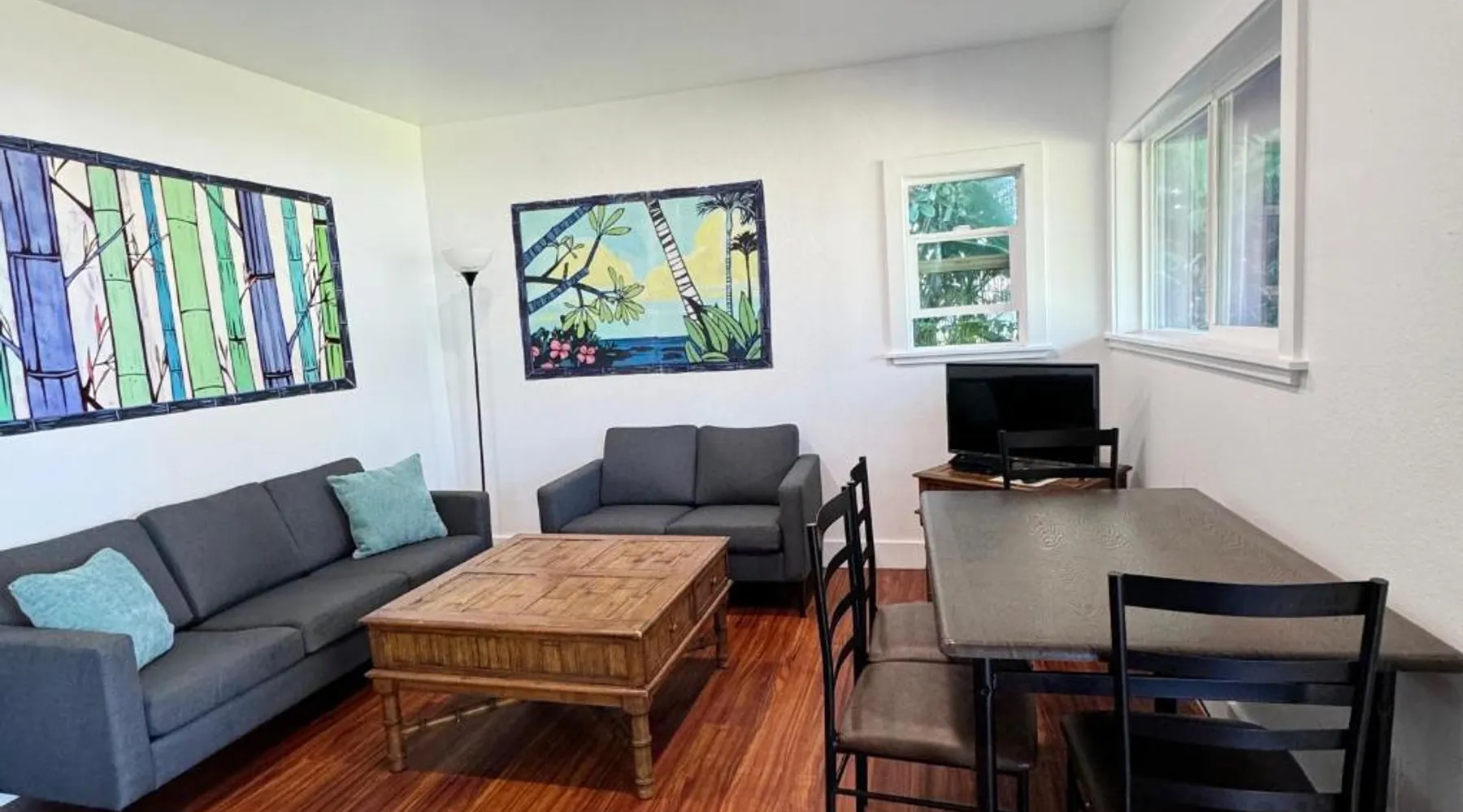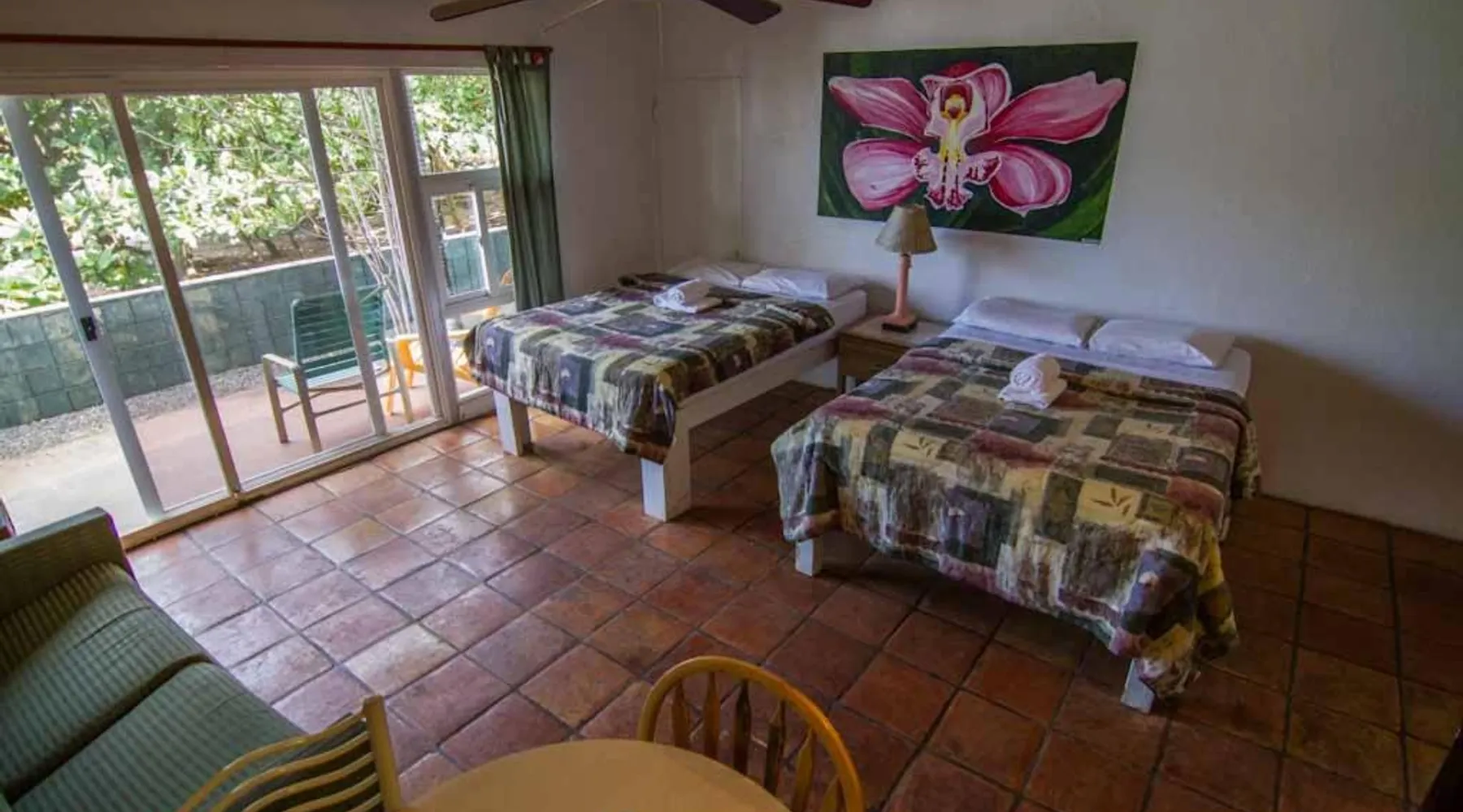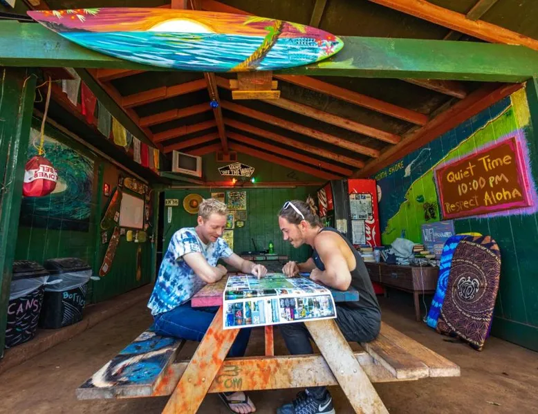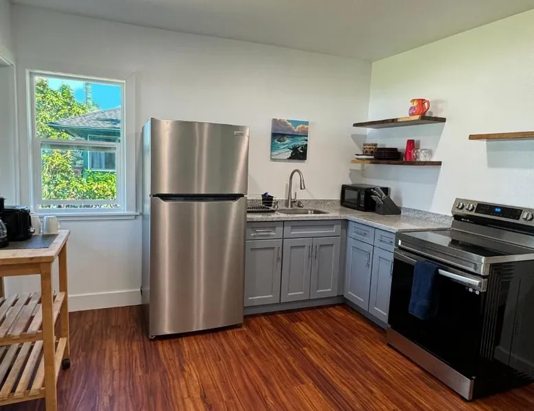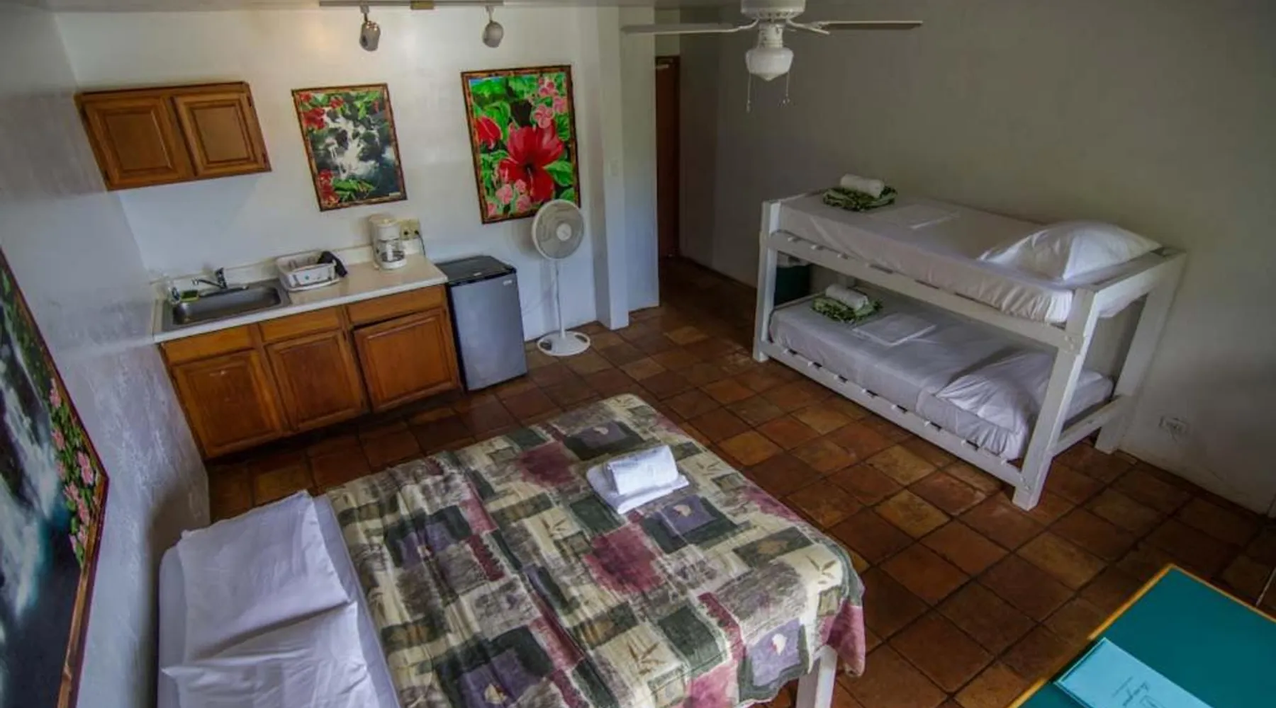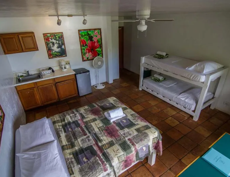 This hostel is in Haleiwa, Hawaii and across the street from Three Tables Beach. This hostel features a kitchen area and cable TV. The Backpackers Vacation Inn and Plantation Village provides free parking. Guests receive access to laundry facilities. The Backpackers is within a 5-minute walk to Sharks Cove and Waimea Bay. The Pipeline is 1 mile away. Sunset Beach Park is 3 miles from the hostel. Beach front studio with ocean view, full kitchen and bathroom.