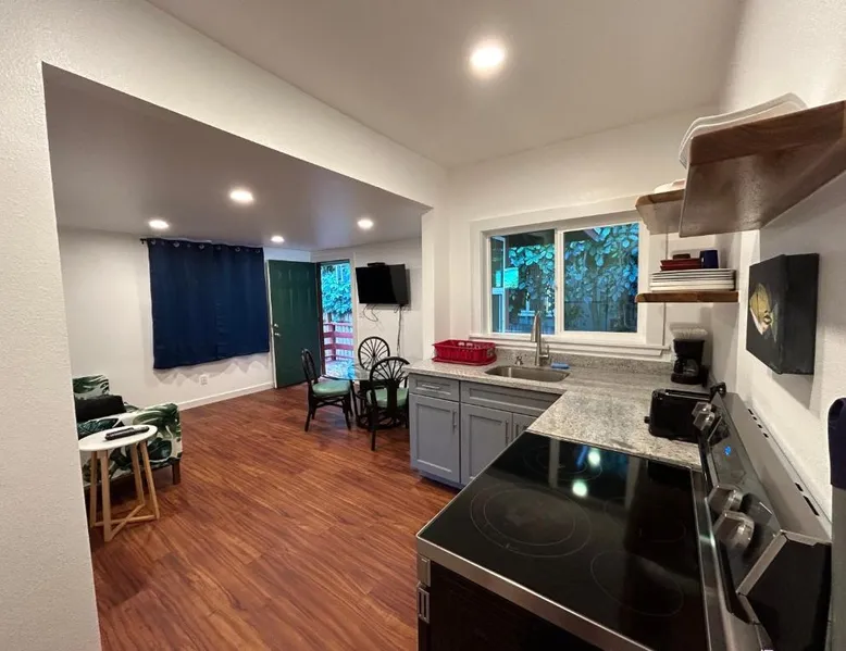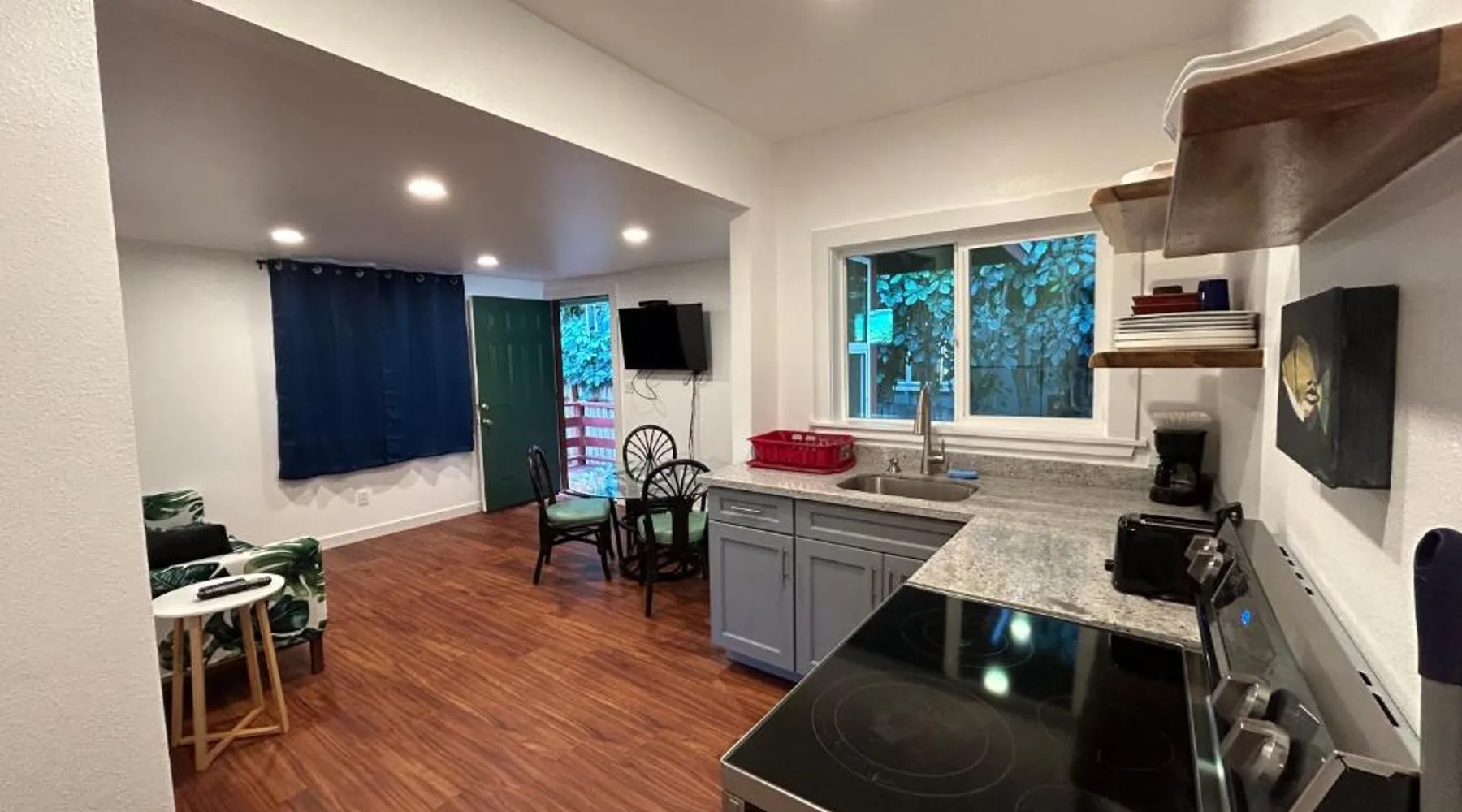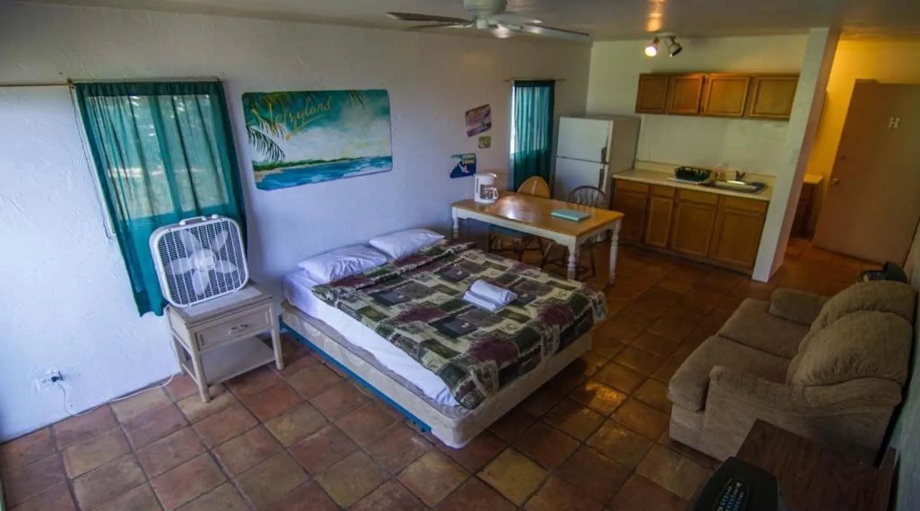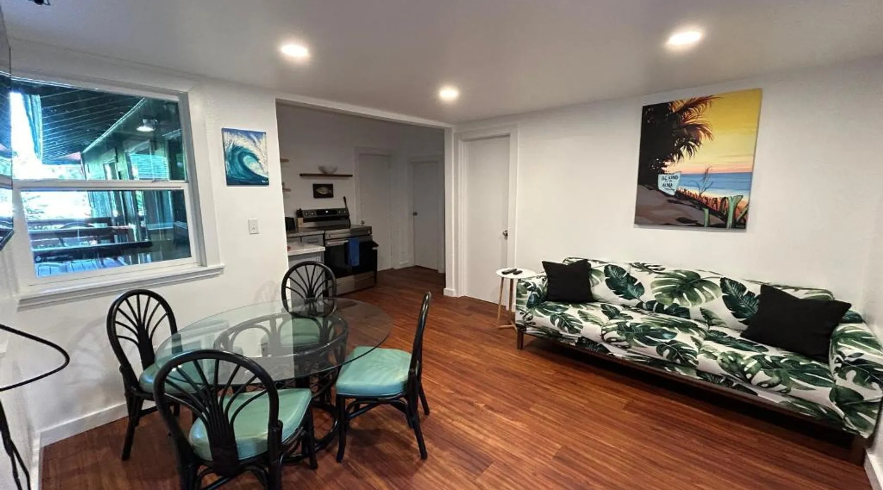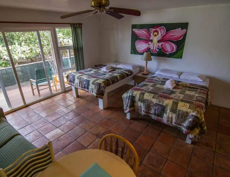 This hostel is in Haleiwa, Hawaii and across the street from Three Tables Beach. This hostel features a kitchen area and cable TV. The Backpackers Vacation Inn and Plantation Village provides free parking. Guests receive access to laundry facilities. The Backpackers is within a 5-minute walk to Sharks Cove and Waimea Bay. The Pipeline is 1 mile away. Sunset Beach Park is 3 miles from the hostel. Beach front studio with ocean view, full kitchen and bathroom.