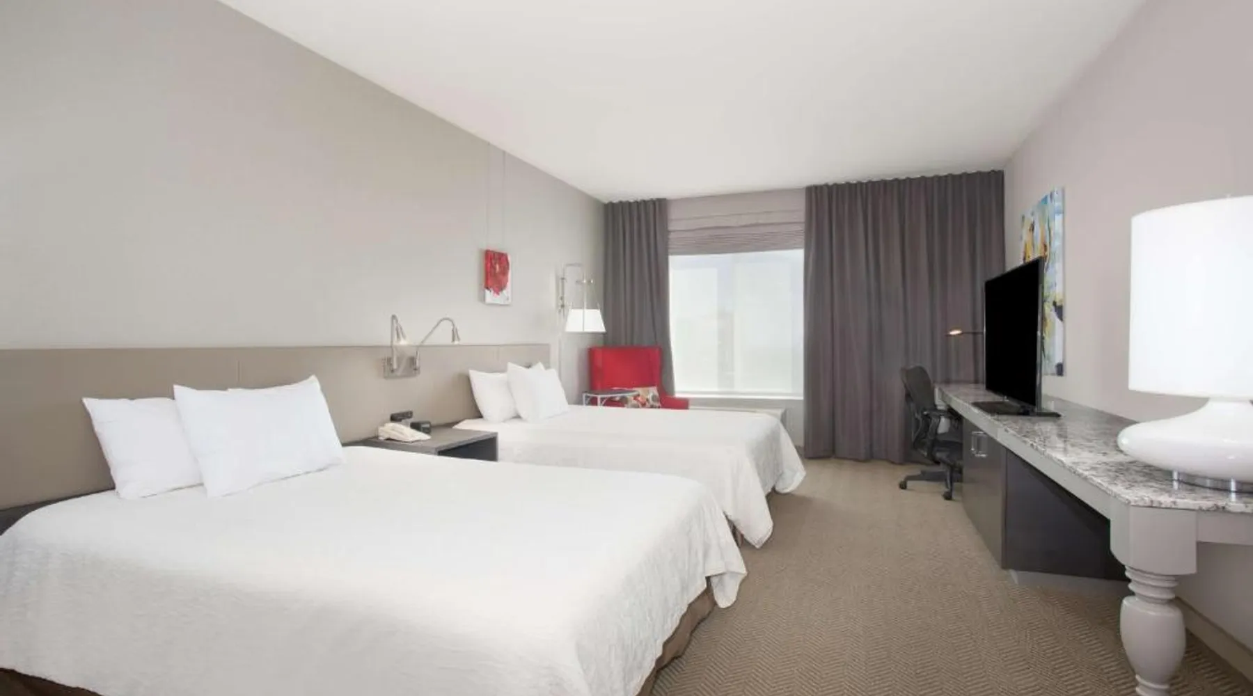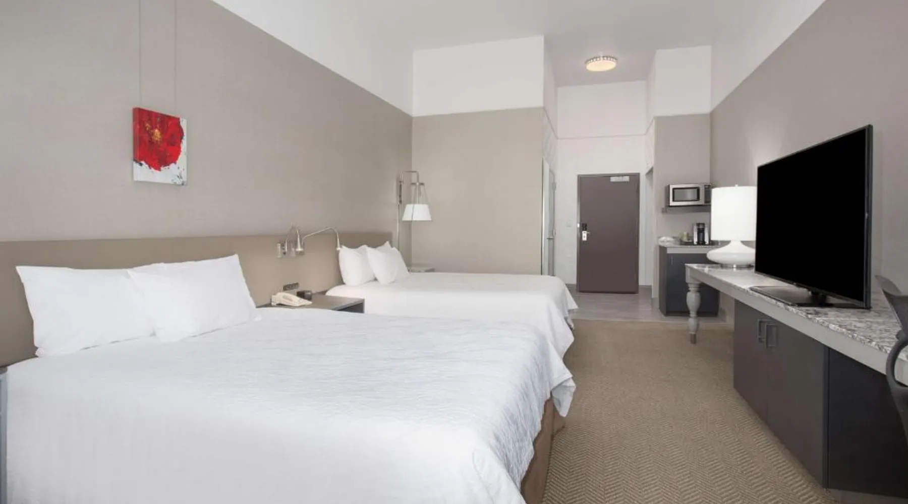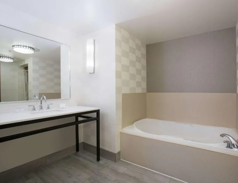 Comfortable Accommodations: Hilton Garden Inn Salt Lake City/Layton in Layton offers family rooms with air-conditioning, refrigerators, microwaves, and free WiFi. Each room includes a work desk, TV, and free toiletries. Exceptional Facilities: Guests enjoy ski-to-door access, an indoor swimming pool, fitness center, and a hot tub. Additional amenities include a lounge, fitness room, and 24-hour front desk. Dining Options: The traditional restaurant serves American cuisine with a continental, American, buffet, and à la carte breakfast. Live music enhances the dining experience. Prime Location: Located 8.7 mi from Ogden-Hinckley Airport, the hotel is a short walk from Davis Conference Center. Nearby attractions include Lagoon Amusement Park (9.3 mi) and Temple Square (25 mi). The double room offers air conditioning, a tea and coffee maker, heating, as well as a flat-screen TV. The unit offers 1 bed.