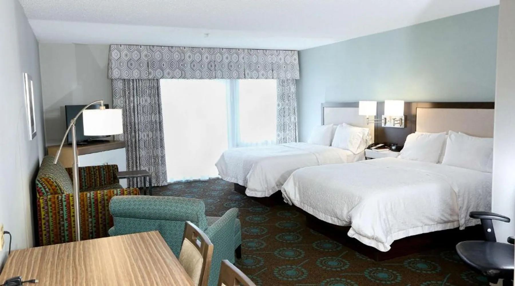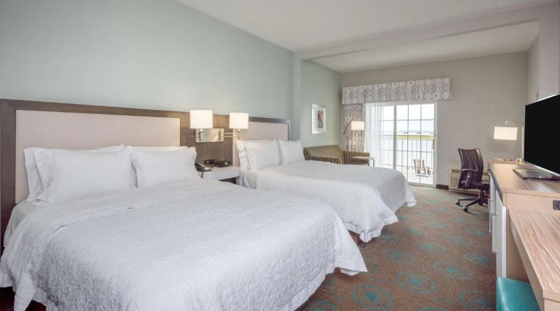 Hampton Inn & Suites in Chincoteague, VA offers waterfront accommodations. Free WiFi is available. A flat-screen TV is available. There is a 24-hour front desk at the property. Additional amenities include complimentary breakfast, a pool, hot tub and fitness center. The nearest airport is Salisbury-Ocean City Wicomico Regional Airport, 29 mi from Hampton Inn & Suites Chincoteague-Waterfront, Va. Boasting a balcony, this family room also offers a tea and coffee maker, a safe deposit box and a flat-screen TV. The unit has 2 beds.
