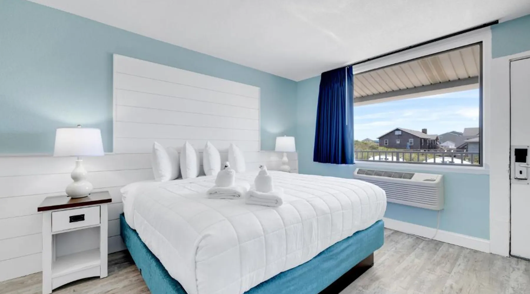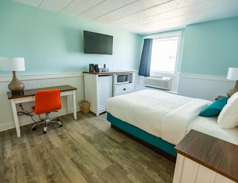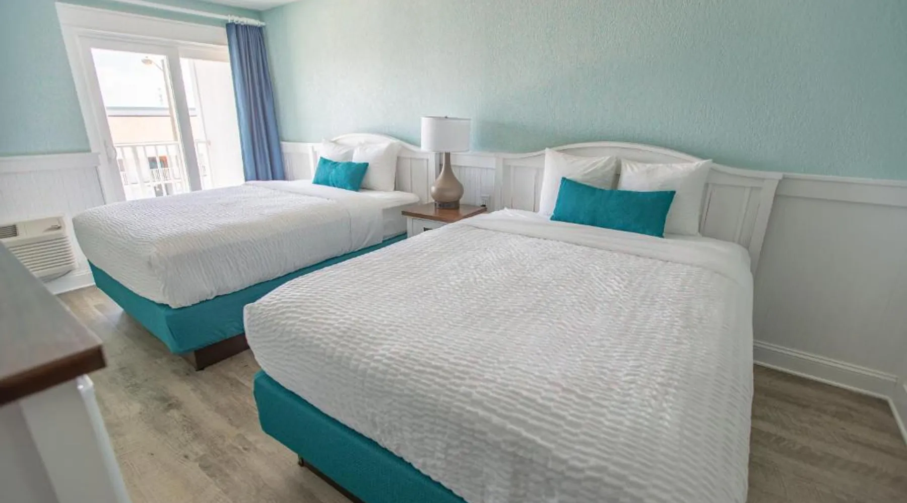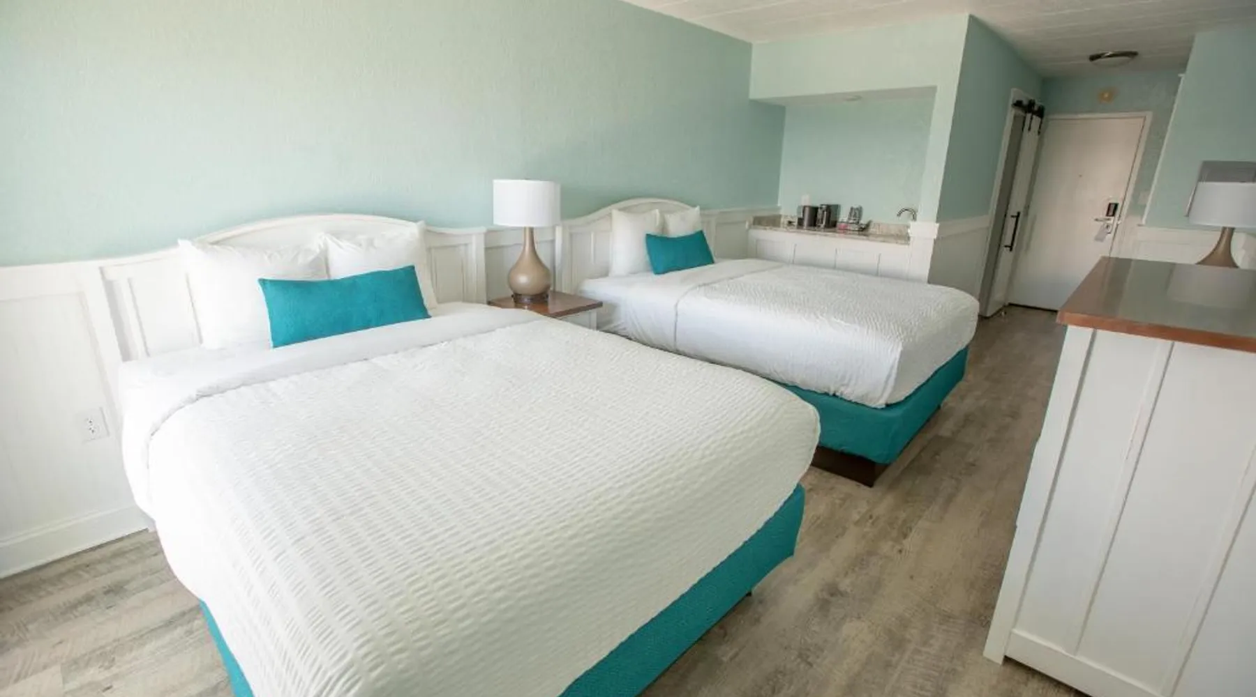 The John Yancey Oceanfront Inn is located on the shores of the Atlantic Ocean in Kill Devil Hills. This hotel serves a daily continental breakfast and has an outdoor pool on site. A microwave and small refrigerator are provided in every room of this oceanfront hotel. Free Wi-Fi and cable TV are also included as well as in-room coffee-making facilities and a private balcony. Laundry facilities is on site at the Kill Devil Hills John Yancey Oceanfront Inn along with a children’s playground. Guests will also receive free paces to the Outer Banks YMCA for extra fitness and recreation options. This hotel is just 5 minutes’ drive from the Outer Banks Family YMCA and the Wright Memorial is 2.5 miles away. Roanoke Island is 20 minutes away by car. This air-conditioned quadruple room is consisted of of a TV with cable channels and a private bathroom. The unit has 2 beds.