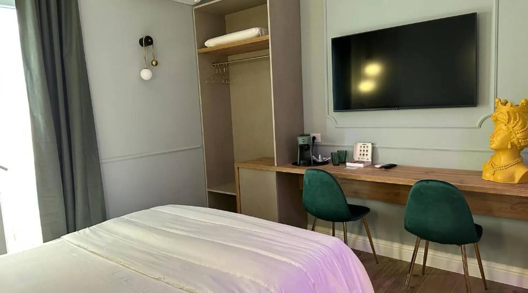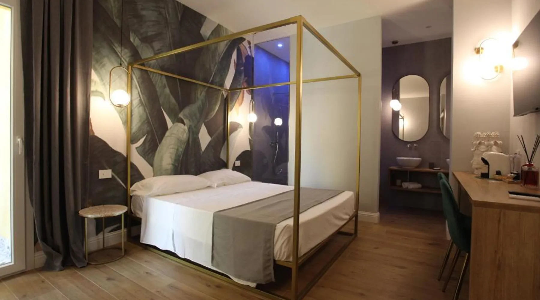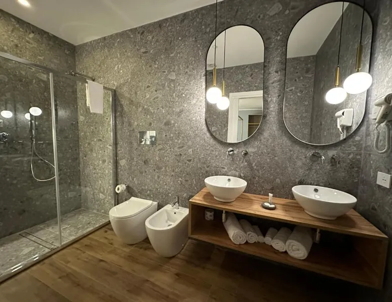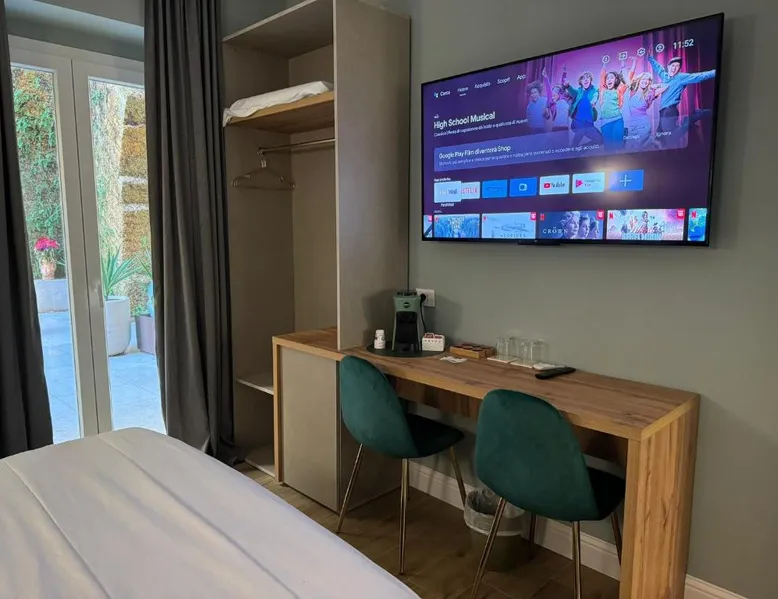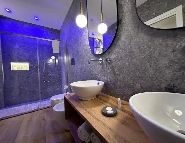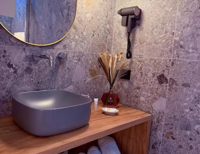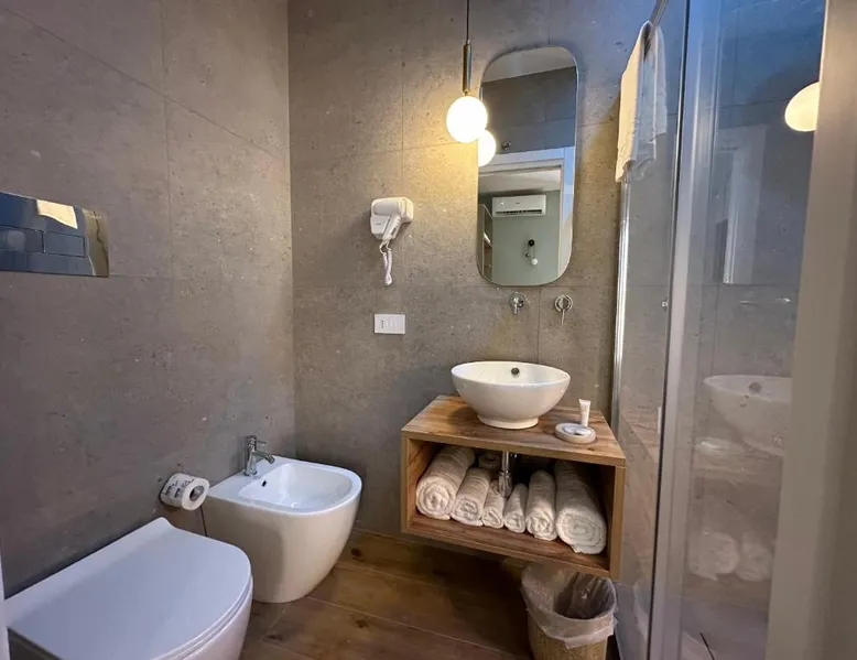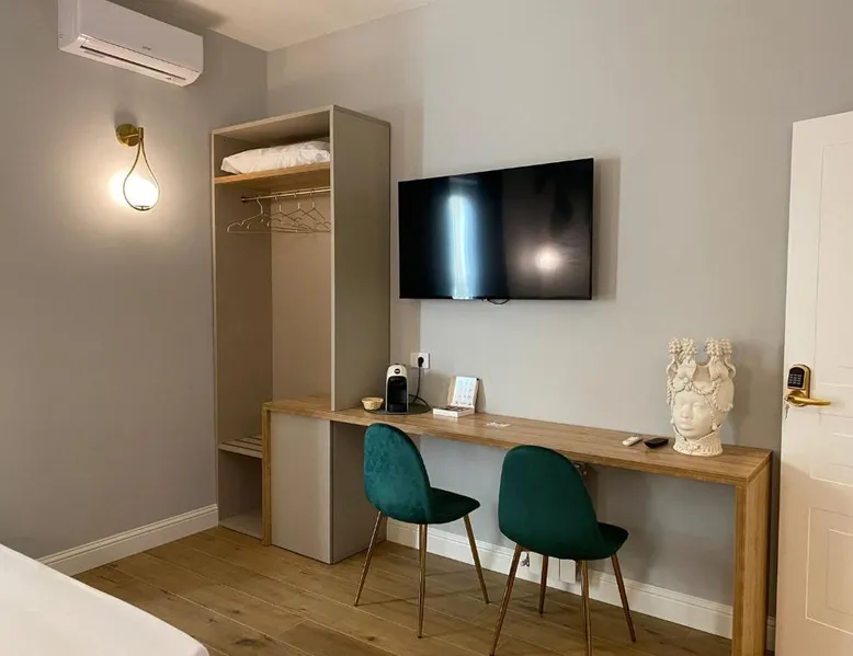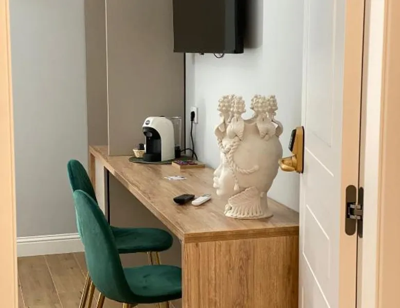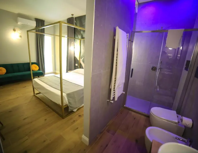 Comfortable Accommodations: Krysos Luxury Rooms in Agrigento offers recently renovated adults-only bed and breakfast rooms with air-conditioning, balconies, and private bathrooms. Each room includes a work desk, mini-bar, and free WiFi. Exceptional Facilities: Guests enjoy free WiFi, private check-in and check-out, housekeeping, and a coffee shop. Additional amenities include an outdoor seating area, full-day security, room service, and luggage storage. Delicious Breakfast: A variety of breakfast options are available, including continental, Italian, vegetarian, vegan, and gluten-free. Local specialties are served in the room, highly praised by guests. Prime Location: Located 71 mi from Comiso Airport, the property is a 17-minute walk from Teatro Luigi Pirandello and 1640 feet from Agrigento Train Station. Heraclea Minoa is 23 mi away. Featuring a private entrance, this air-conditioned suite consists of 1 living room, 1 separate bedroom and 1 bathroom with a walk-in shower and a bidet. The suite provides soundproof walls, a mini-bar, a tea and coffee maker, a flat-screen TV with streaming services, as well as a quiet street view. The unit offers 1 bed.