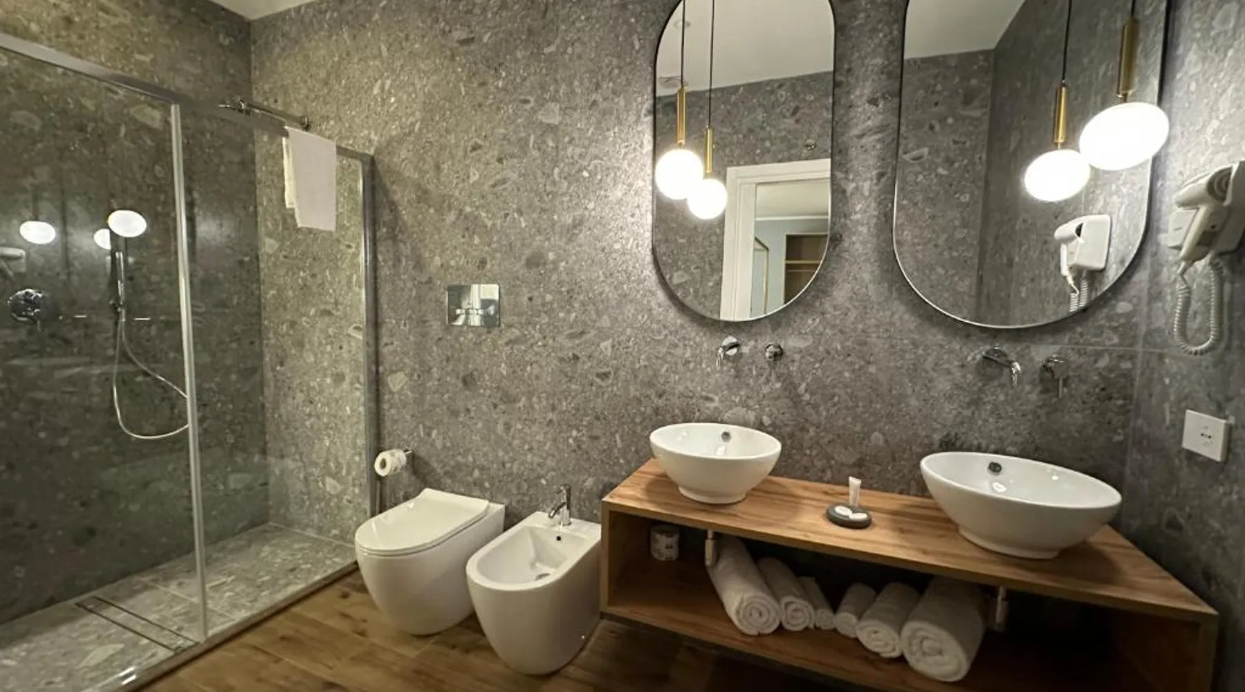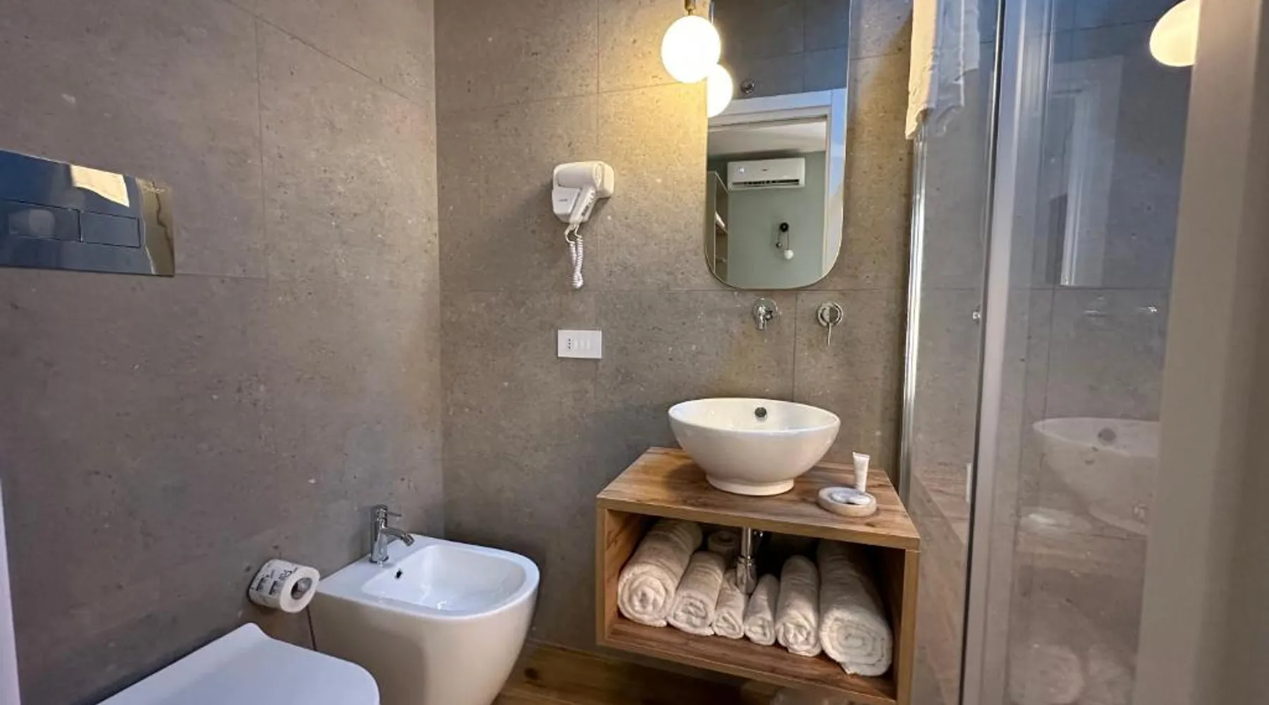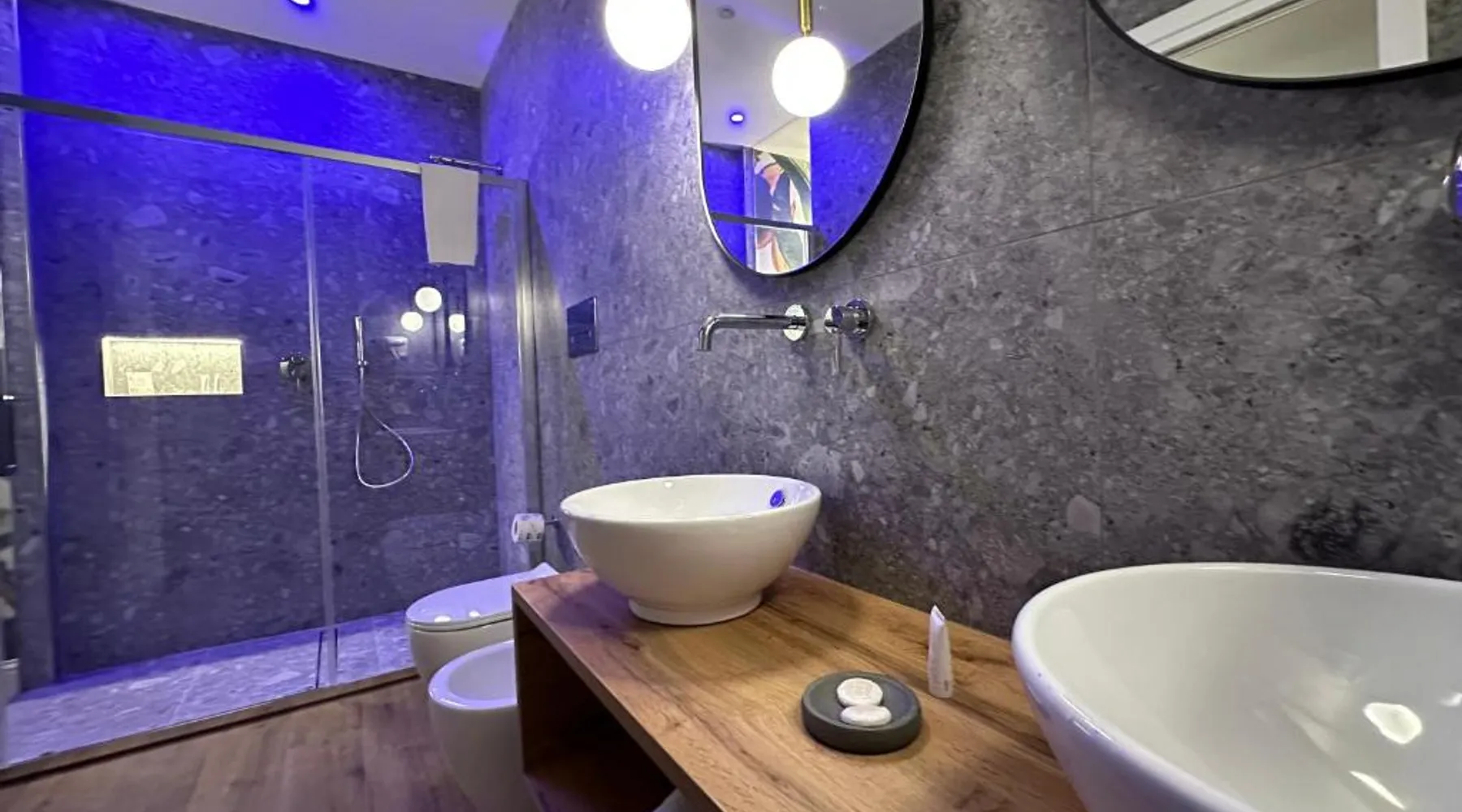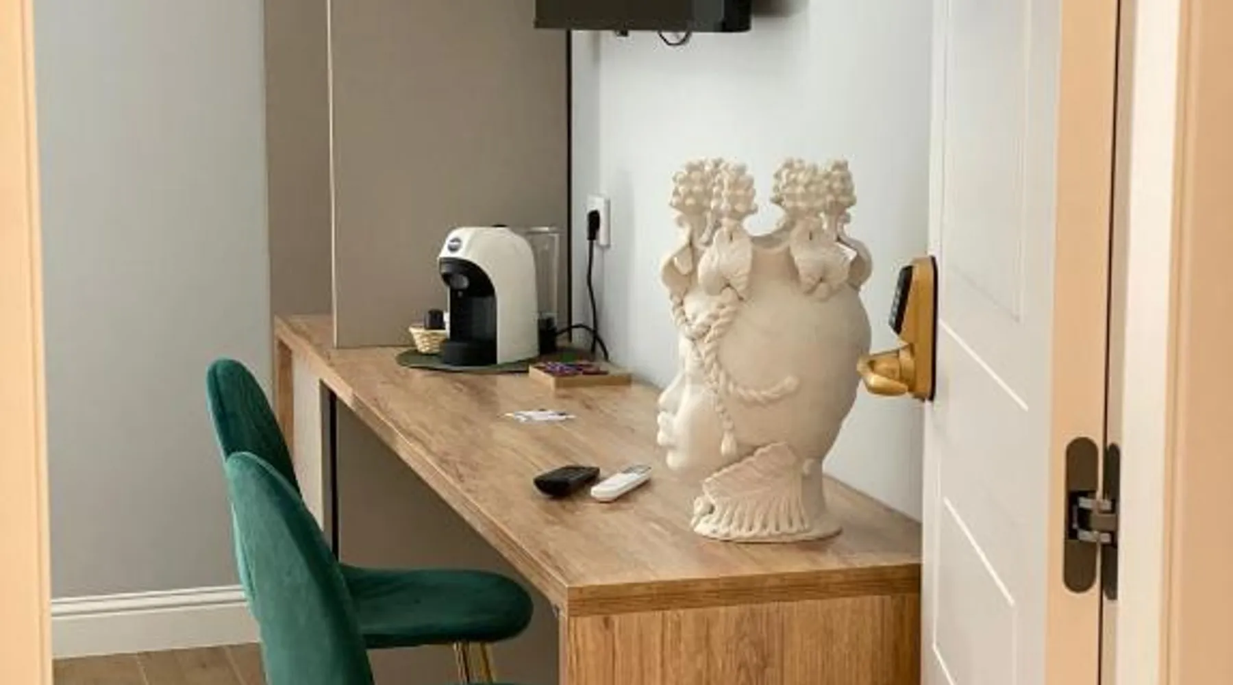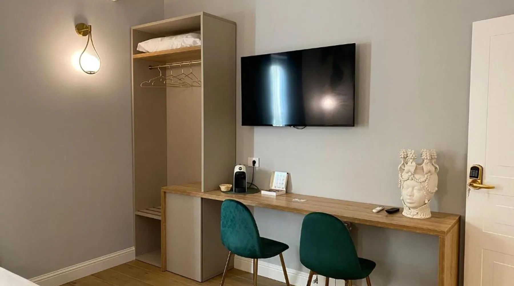 Comfortable Accommodations: Krysos Luxury Rooms in Agrigento offers recently renovated adults-only bed and breakfast rooms with air-conditioning, balconies, and private bathrooms. Each room includes a work desk, mini-bar, and free WiFi. Exceptional Facilities: Guests enjoy free WiFi, private check-in and check-out, housekeeping, and a coffee shop. Additional amenities include an outdoor seating area, full-day security, room service, and luggage storage. Delicious Breakfast: A variety of breakfast options are available, including continental, Italian, vegetarian, vegan, and gluten-free. Local specialties are served in the room, highly praised by guests. Prime Location: Located 71 mi from Comiso Airport, the property is a 17-minute walk from Teatro Luigi Pirandello and 1640 feet from Agrigento Train Station. Heraclea Minoa is 23 mi away. Featuring a private entrance, this air-conditioned suite consists of 1 living room, 1 separate bedroom and 1 bathroom with a walk-in shower and a bidet. The suite provides soundproof walls, a mini-bar, a tea and coffee maker, a flat-screen TV with streaming services, as well as a quiet street view. The unit offers 1 bed.