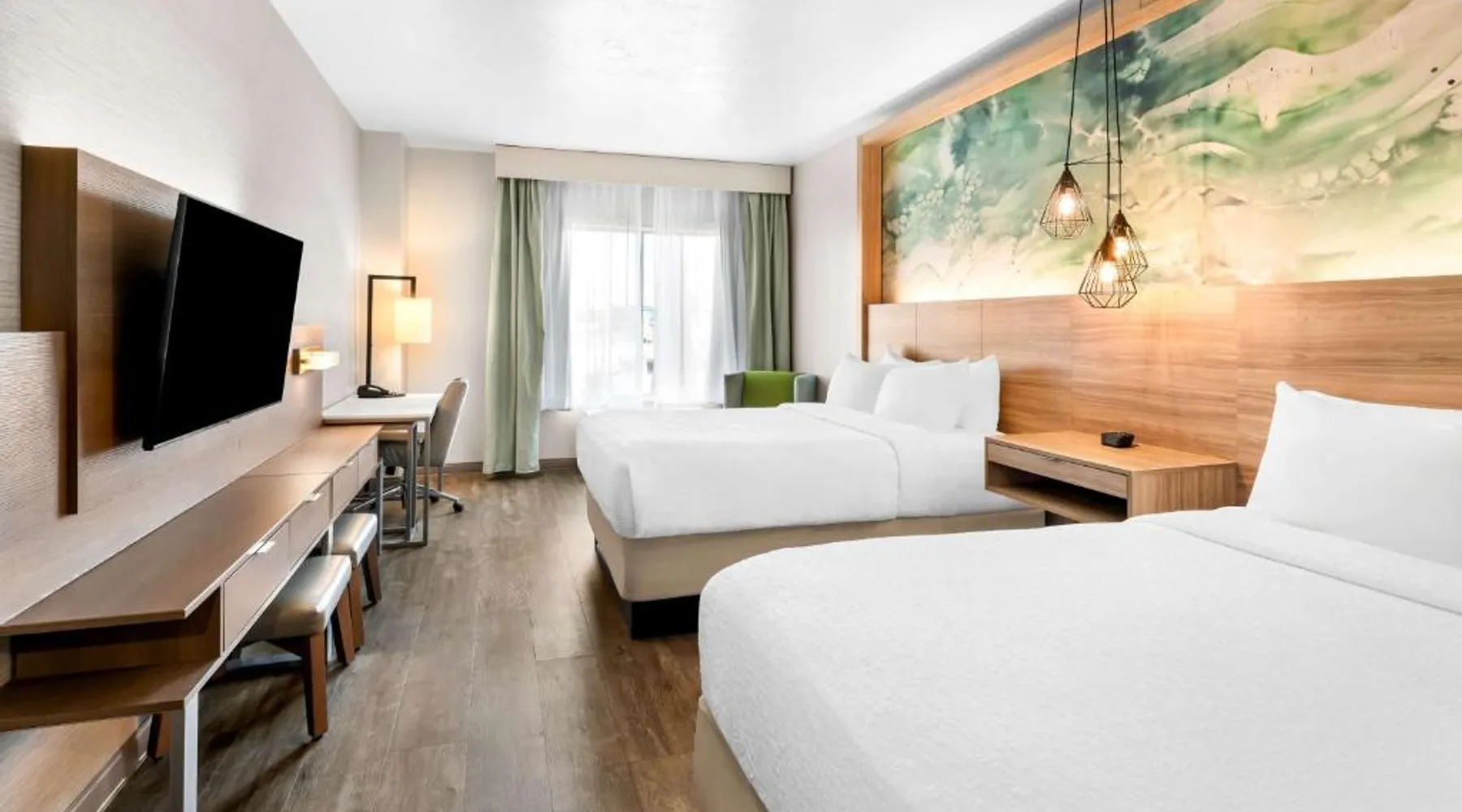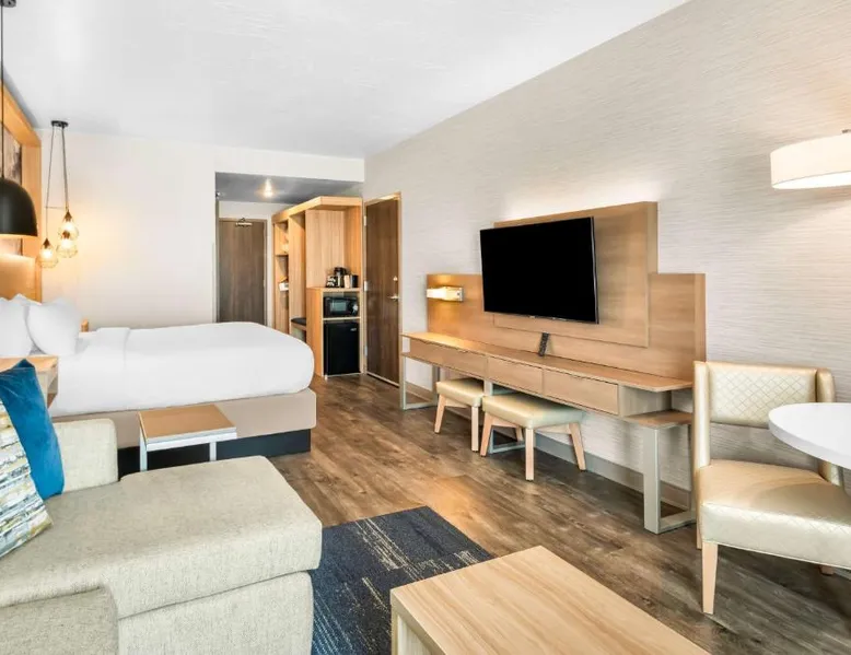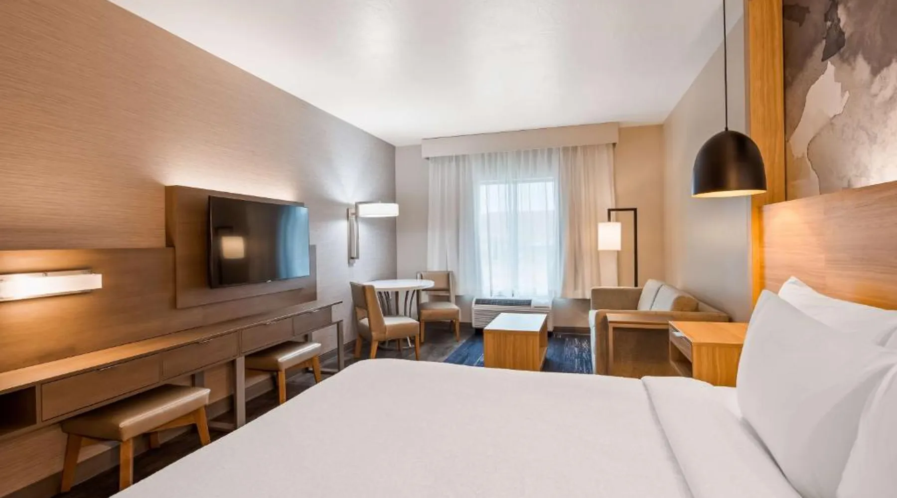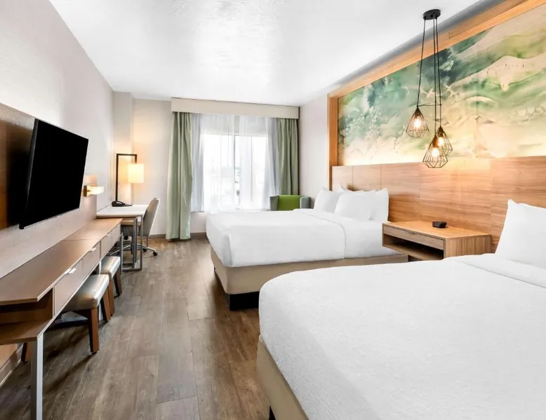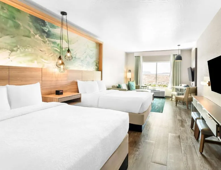 Comfortable Accommodations: Best Western Plus Settlers Point in Washington offers comfortable rooms with air-conditioning, private bathrooms, and mountain views. Each room includes a tea and coffee maker, refrigerator, work desk, and TV. Exceptional Facilities: Guests enjoy a fitness center, indoor swimming pool, and free WiFi. Additional amenities include a hot tub, outdoor fireplace, and electric vehicle charging station. Convenient Services: The hotel providing free on-site private check-site private check-site private parking, a 24-hour front desk, and concierge service. Local Attractions: Located 11 mi from St. George Regional Airport, the hotel is near St George Temple (6.8 mi), Pine Valley Chapel (3 mi), and Dixie State University (5.6 mi). Guests can enjoy hiking and cycling in the surrounding area. The spacious double room provides air conditioning, a tea and coffee maker, as well as a private bathroom featuring a bath or a shower and a hairdryer. This double room features a wardrobe, a flat-screen TV and mountain views. The unit offers 1 bed.
