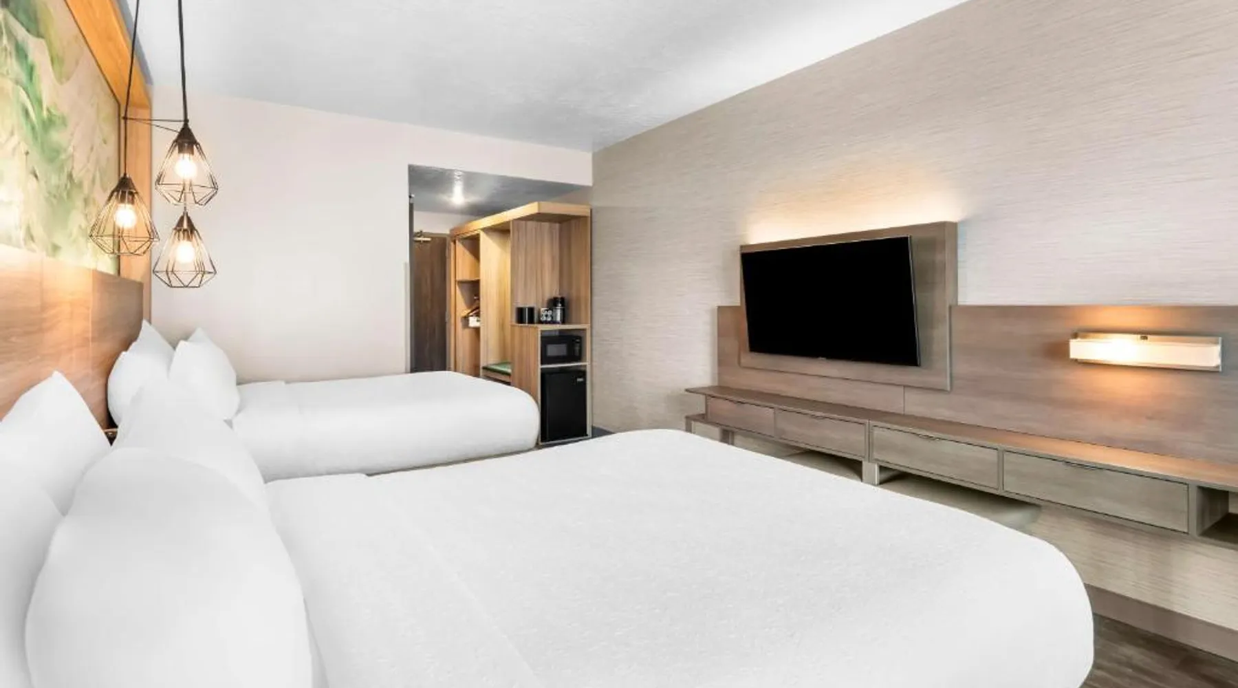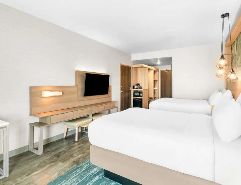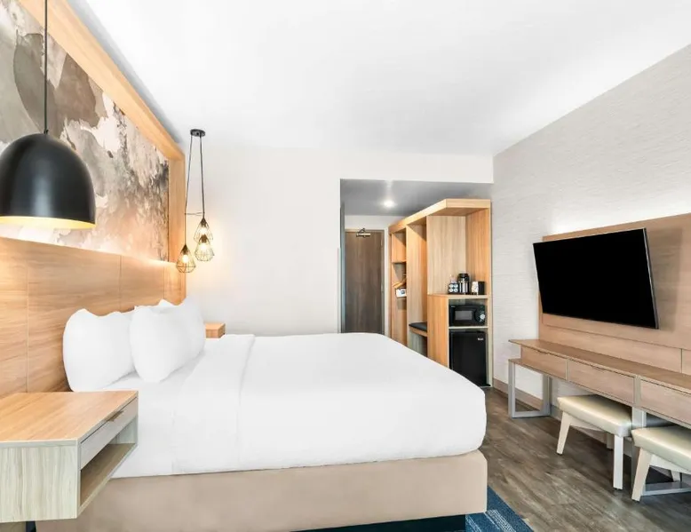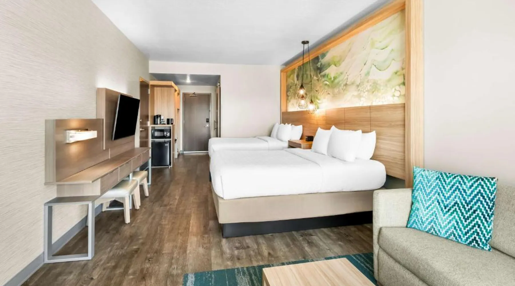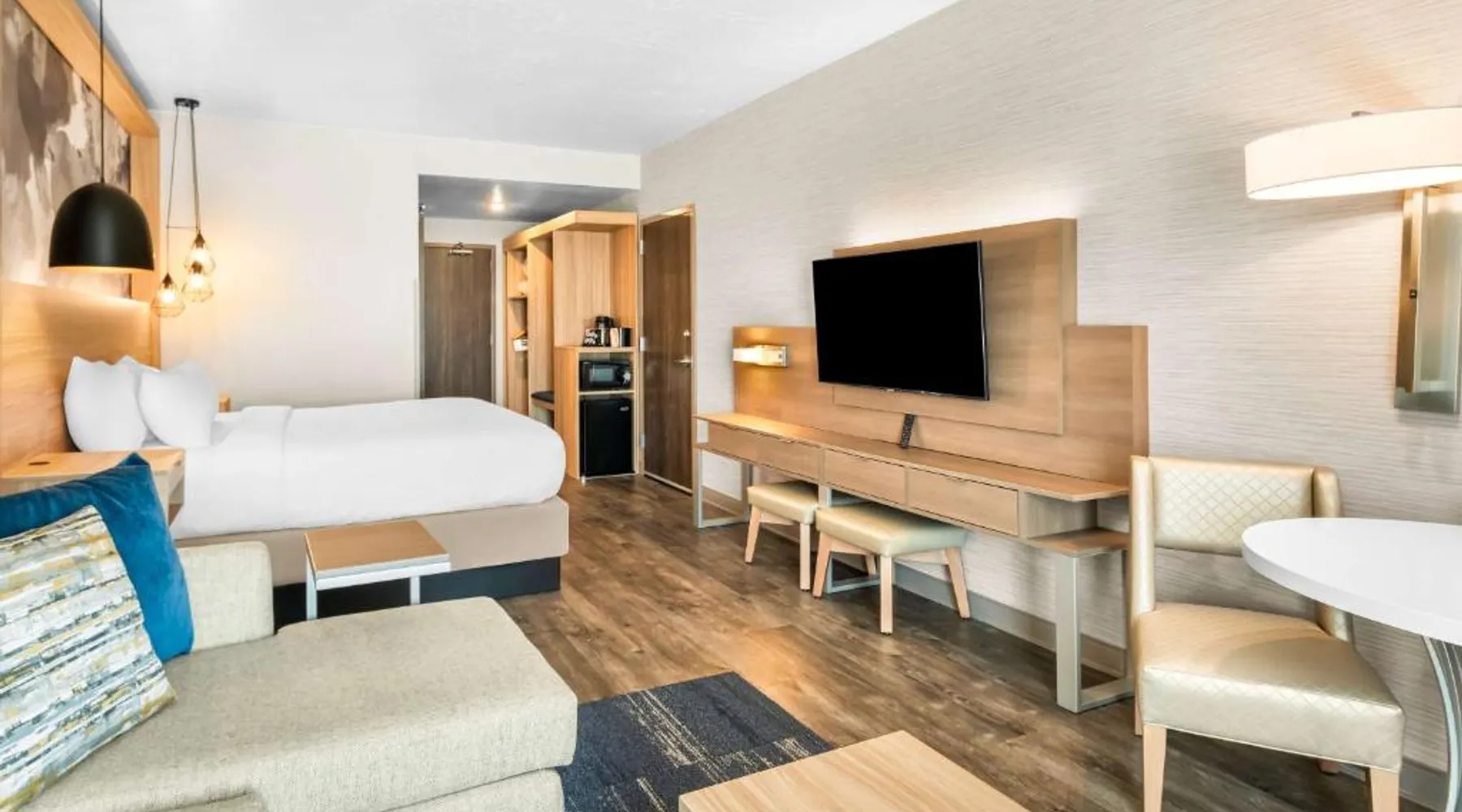 Comfortable Accommodations: Best Western Plus Settlers Point in Washington offers comfortable rooms with air-conditioning, private bathrooms, and mountain views. Each room includes a tea and coffee maker, refrigerator, work desk, and TV. Exceptional Facilities: Guests enjoy a fitness center, indoor swimming pool, and free WiFi. Additional amenities include a hot tub, outdoor fireplace, and electric vehicle charging station. Convenient Services: The hotel providing free on-site private check-site private check-site private parking, a 24-hour front desk, and concierge service. Local Attractions: Located 11 mi from St. George Regional Airport, the hotel is near St George Temple (6.8 mi), Pine Valley Chapel (3 mi), and Dixie State University (5.6 mi). Guests can enjoy hiking and cycling in the surrounding area. The spacious double room provides air conditioning, a tea and coffee maker, as well as a private bathroom featuring a bath or a shower and a hairdryer. This double room features a wardrobe, a flat-screen TV and mountain views. The unit offers 1 bed.