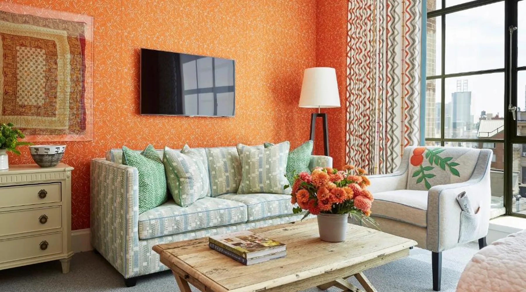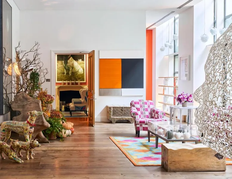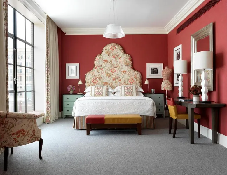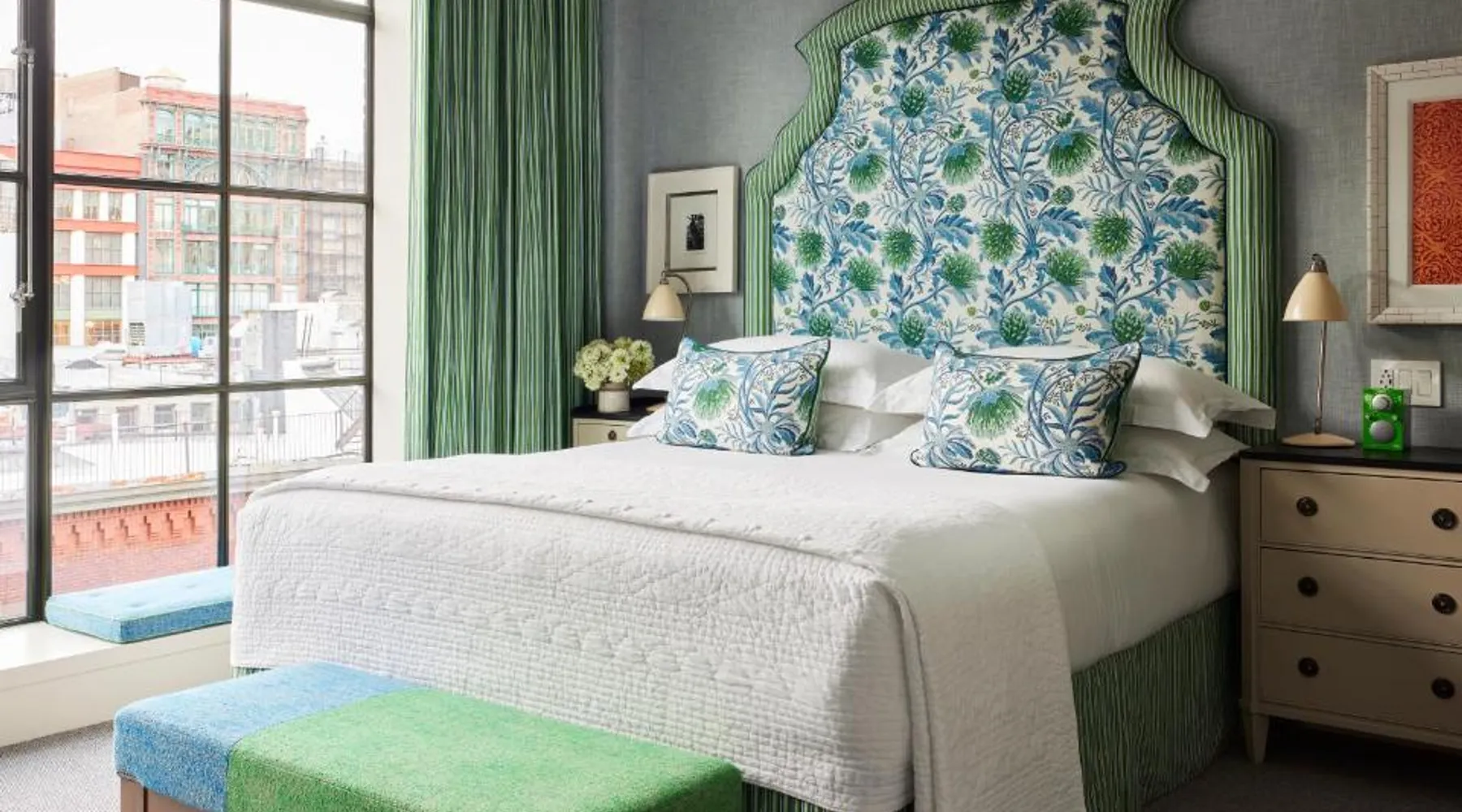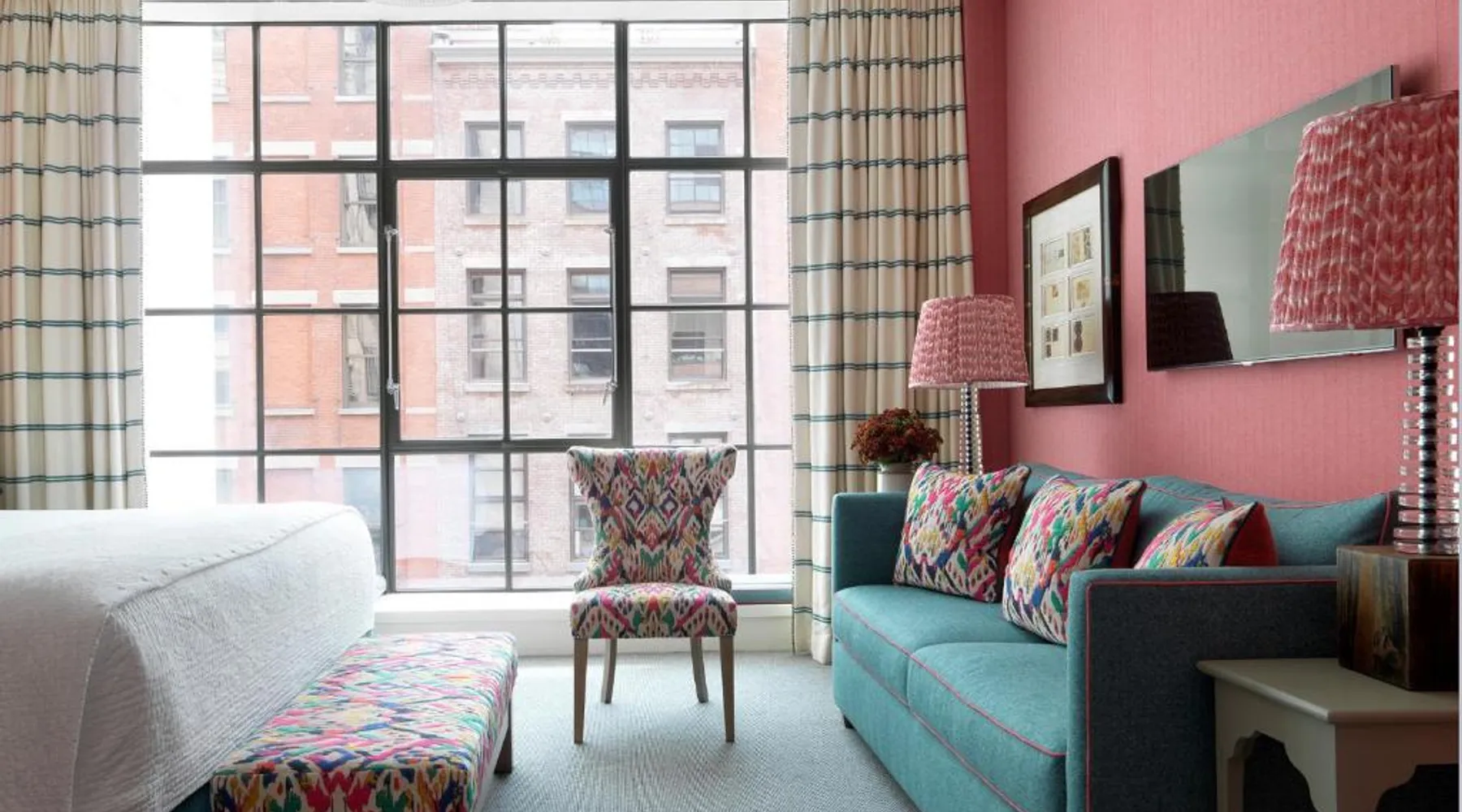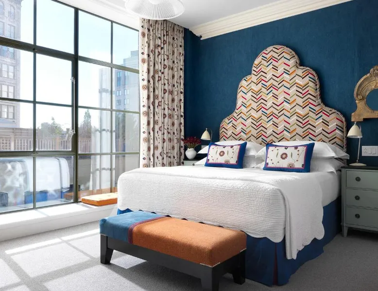 Located on a cobbled street in the SoHo neighborhood, this contemporary design hotel features a beautiful inner courtyard and an on-site terrace restaurant. Free Wi-Fi is available throughout the hotel. The Crosby Street Hotel offers bright, modern rooms with high ceilings and full-length windows. Each is equipped with flat-screen cable TV, DVD player and iPod docking station. Guests of Crosby Street are welcome to work out in the 24-hour gym or relax in front of the fireplace in the plush drawing room. Films are shown in the hotel’s private theater each Sunday. The Crosby Bar and Terrace serves gourmet items including breakfast and brunch. An afternoon tea with pastries and sandwiches is offered daily. The Crosby Street Hotel is adjacent to the Museum of Modern Art Design and 1 block from the Spring Street subway station. Located on the 3rd and 4th floors, this room features high ceilings with full-length windows.