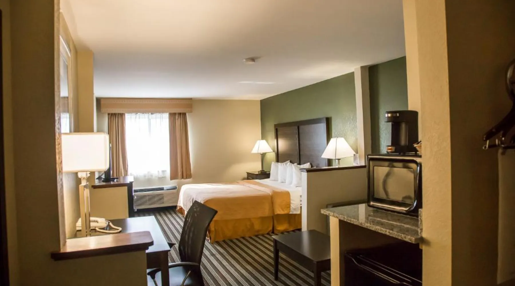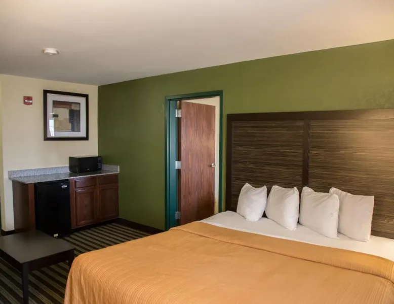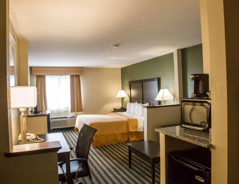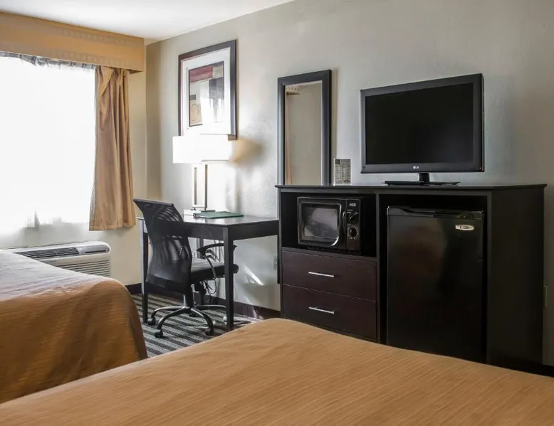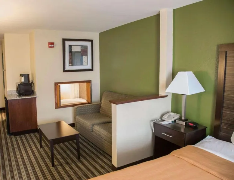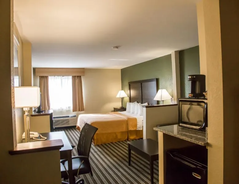 Comfortable Accommodations: Rooms feature air-conditioning, private bathrooms with baths, tea and coffee makers, bidets, hairdryers, coffee machines, refrigerators, work desks, microwaves, showers, carpeted floors, and TVs. Exceptional Facilities: Guests enjoy an indoor swimming pool, free WiFi, lounge, fitness room, elevator, 24-hour front desk, and games room. Free on-site private parking is available. Convenient Location: Located in Loves Park, the hotel is 14 mi from Chicago Rockford International Airport and 6.2 mi from Magic Waters Waterpark. Nearby attractions include the Logan Museum of Anthropology at 16 mi. Guest Favorites: Guests appreciate the American breakfast provided by the property, attentive staff, and the convenient location. The quadruple room offers air conditioning, a tea and coffee maker, as well as a private bathroom boasting a bath and a shower. The unit has 2 beds.