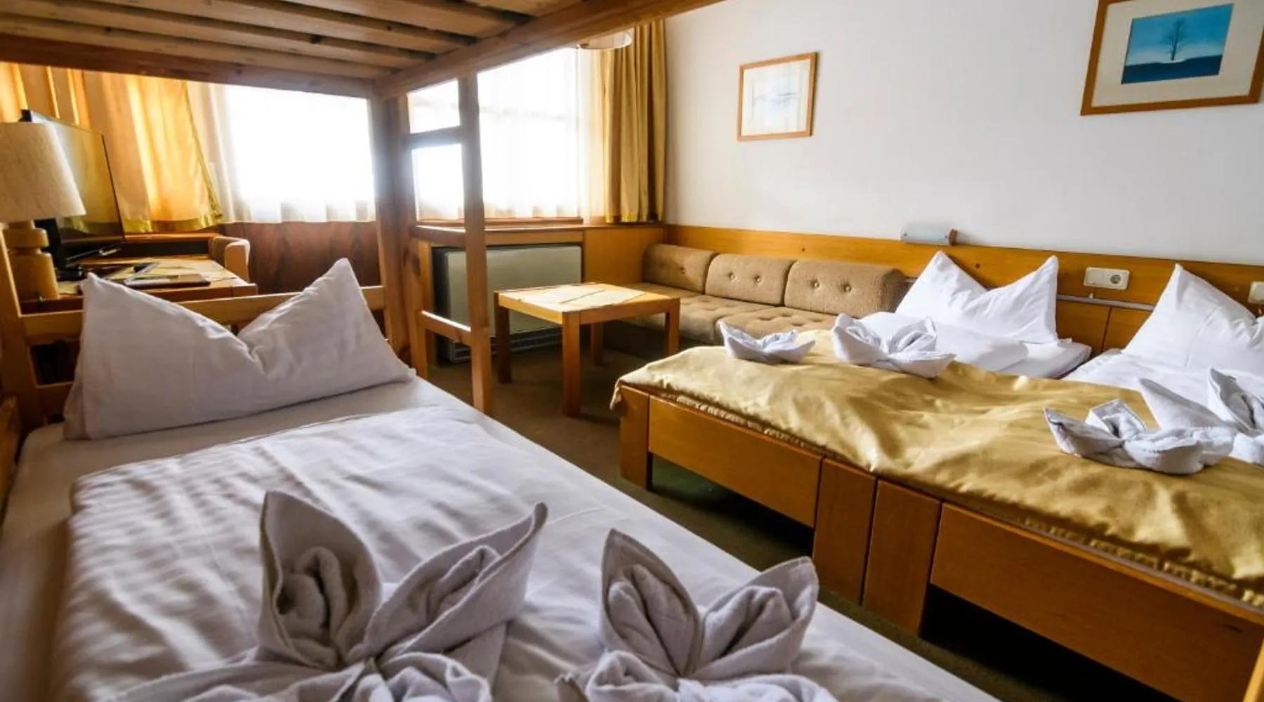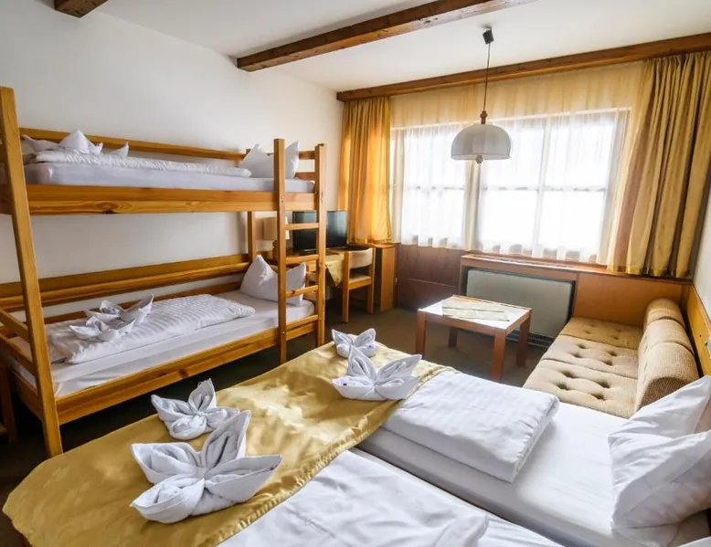 Comfortable Accommodations: BS-Ötscher Hotel in Lackenhof offers family rooms with private bathrooms, balconies, and garden or mountain views. Each room includes a work desk, TV, and free WiFi. Wellness and Leisure: Guests can relax at the spa and wellness center, swim in the pool with a view, or unwind in the sauna. The hotel features a sun terrace, tennis court, and outdoor fireplace. Dining Experience: The family-friendly restaurant serves breakfast with local specialties, warm dishes, fresh pastries, and a variety of cuisines including Greek, Mediterranean, and Austrian. Location and Activities: Located 77 mi from Linz Airport, the hotel is near attractions such as Gaming Charterhouse (11 mi) and Basilika Mariazell (19 mi). Winter sports enthusiasts can enjoy skiing and cycling in the surrounding area. One bedroom with double bed and bunk bed. Second bedroom with 2 single beds (if requested also double bed). Please note that the room rate is based on 5 guests. Maximum occupancy is 6 guests (see Hotel Policies).