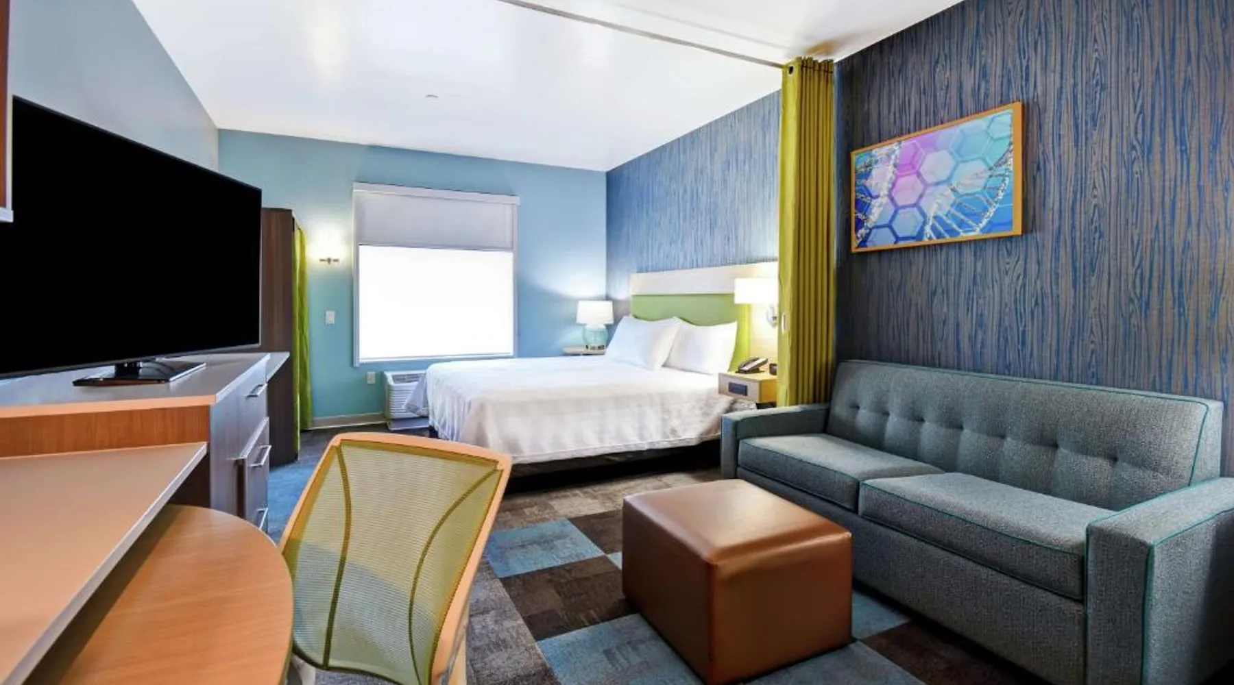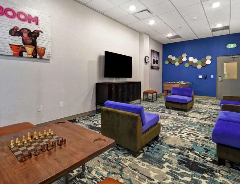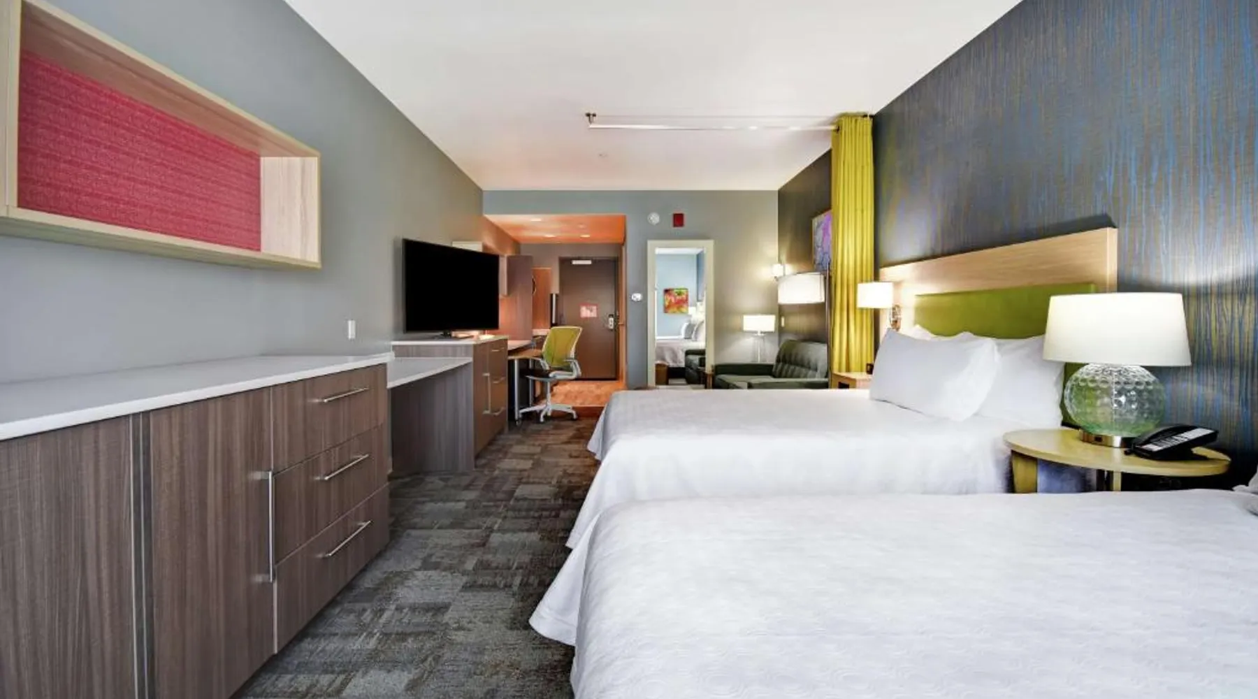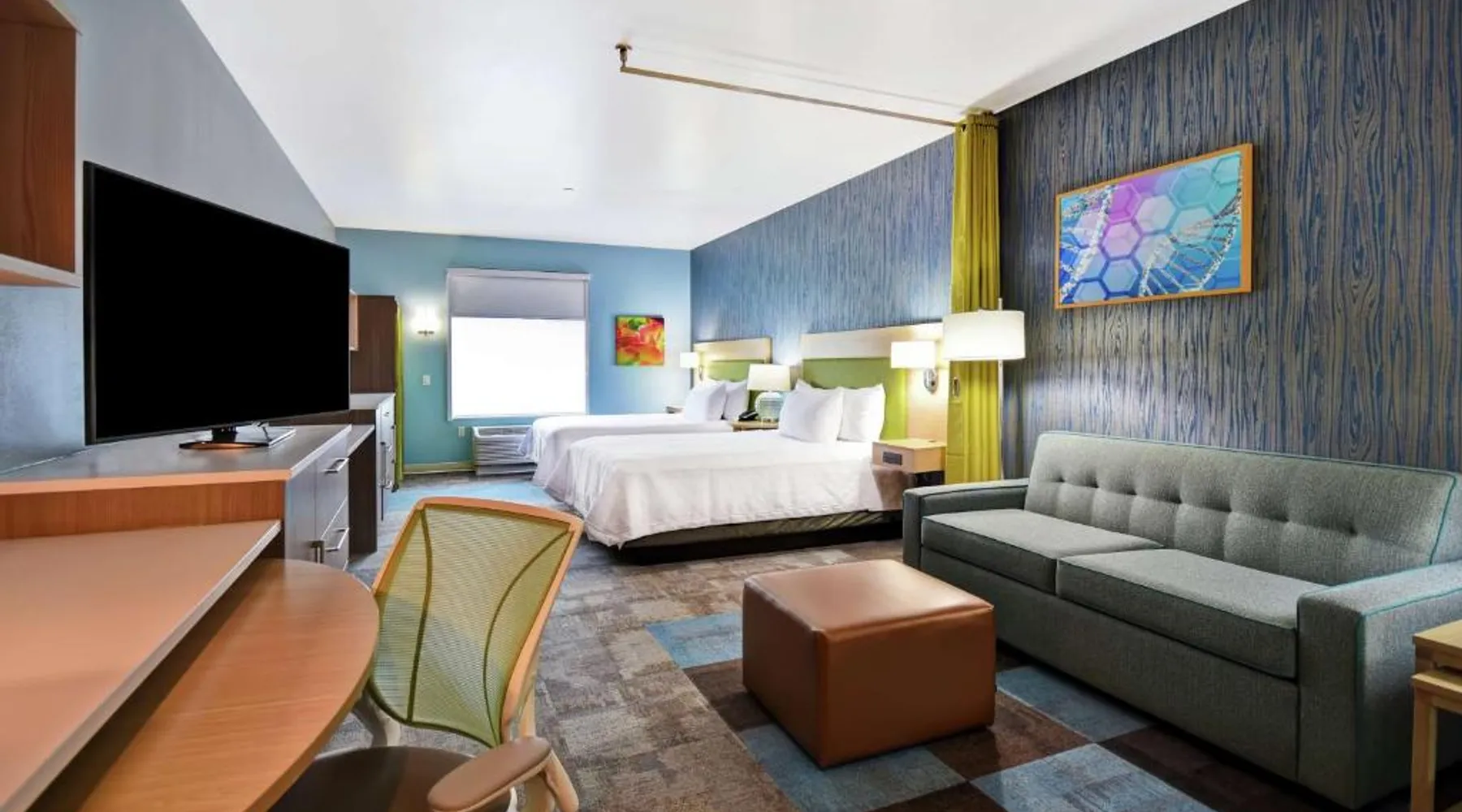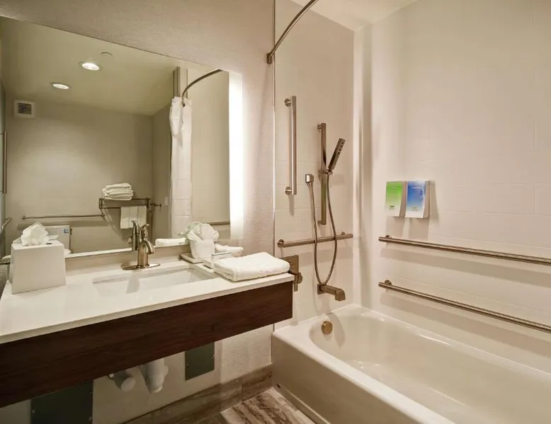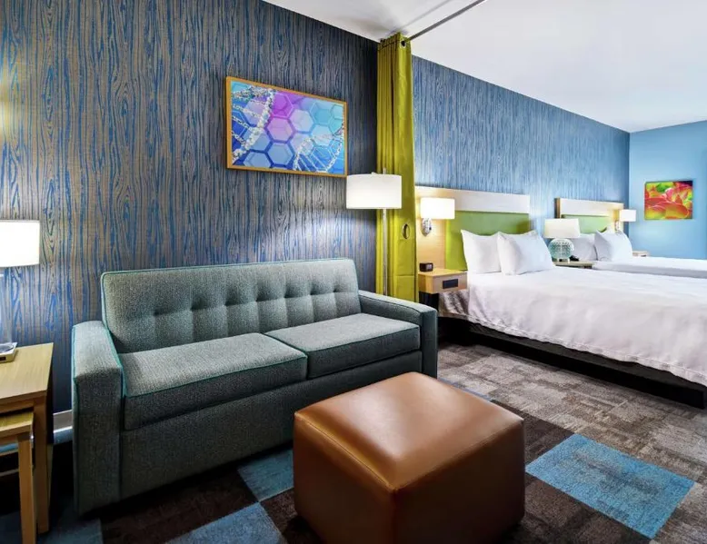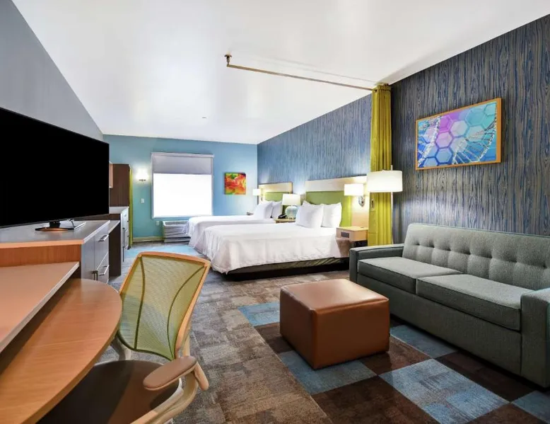 Comfortable Accommodations: Home2 Suites By Hilton San Francisco Airport North in South San Francisco offers air-conditioned rooms with free WiFi, ensuring a pleasant stay. Modern Facilities: Guests can enjoy a fitness center, lounge, outdoor fireplace, and a business area. Additional amenities include a minimarket, electric vehicle charging station, and a games room. Convenient Location: Located 1.9 mi from San Francisco International Airport, the hotel is near attractions such as Oracle Park (9.3 mi) and the Golden Gate Bridge (15 mi). Guest Services: The property provides a 24-hour front desk, paid on-site private parking, and a continental breakfast. Highly rated for its breakfast and convenient location. The suite features air conditioning, a tea and coffee maker, a seating area as well as heating. The unit has 2 beds.
