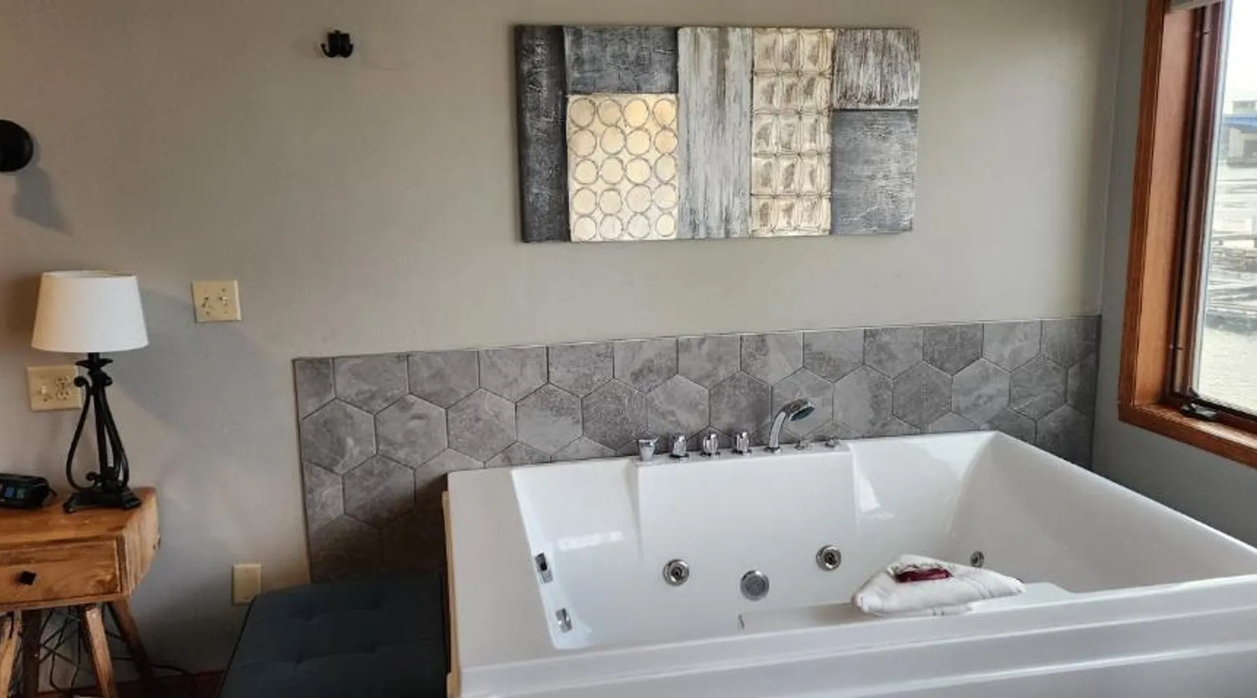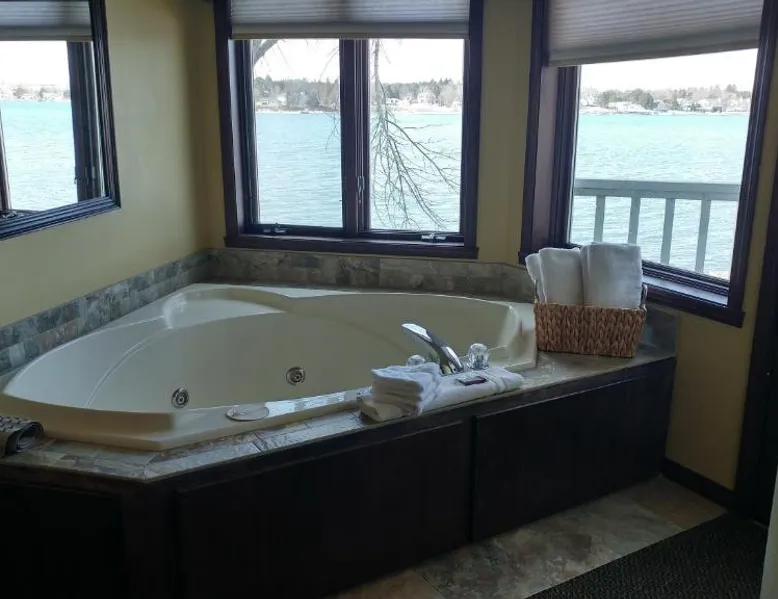 Comfortable Accommodations: Cozy Harbor Inn in Sturgeon Bay offers family rooms with private bathrooms, air-conditioning, and free WiFi. Each room includes a tea and coffee maker, refrigerator, and TV. Outdoor Amenities: Guests can relax in the garden or on the terrace, enjoy the outdoor fireplace, and utilize the outdoor seating and picnic areas. Free on-site private parking is available. Convenient Location: Located 53 mi from Green Bay–Austin Straubel International Airport, the hotel is near attractions such as Door County Maritime Museum (1.9 mi), Cave Point County Park (14 mi), and Cana Island Lighthouse (29 mi). Guest Favorites: Guests appreciate the scenic views, room comfort, and convenient location. Guests will have a special experience as this studio provides a hot tub, a spa bath and a fireplace. Guests will find a stovetop, a refrigerator, kitchenware and an oven in the fully equipped kitchen. The studio also offers a barbecue. This air-conditioned studio includes a flat-screen TV with cable channels, a private bathroom as well as a terrace with lake views. The unit offers 1 bed.