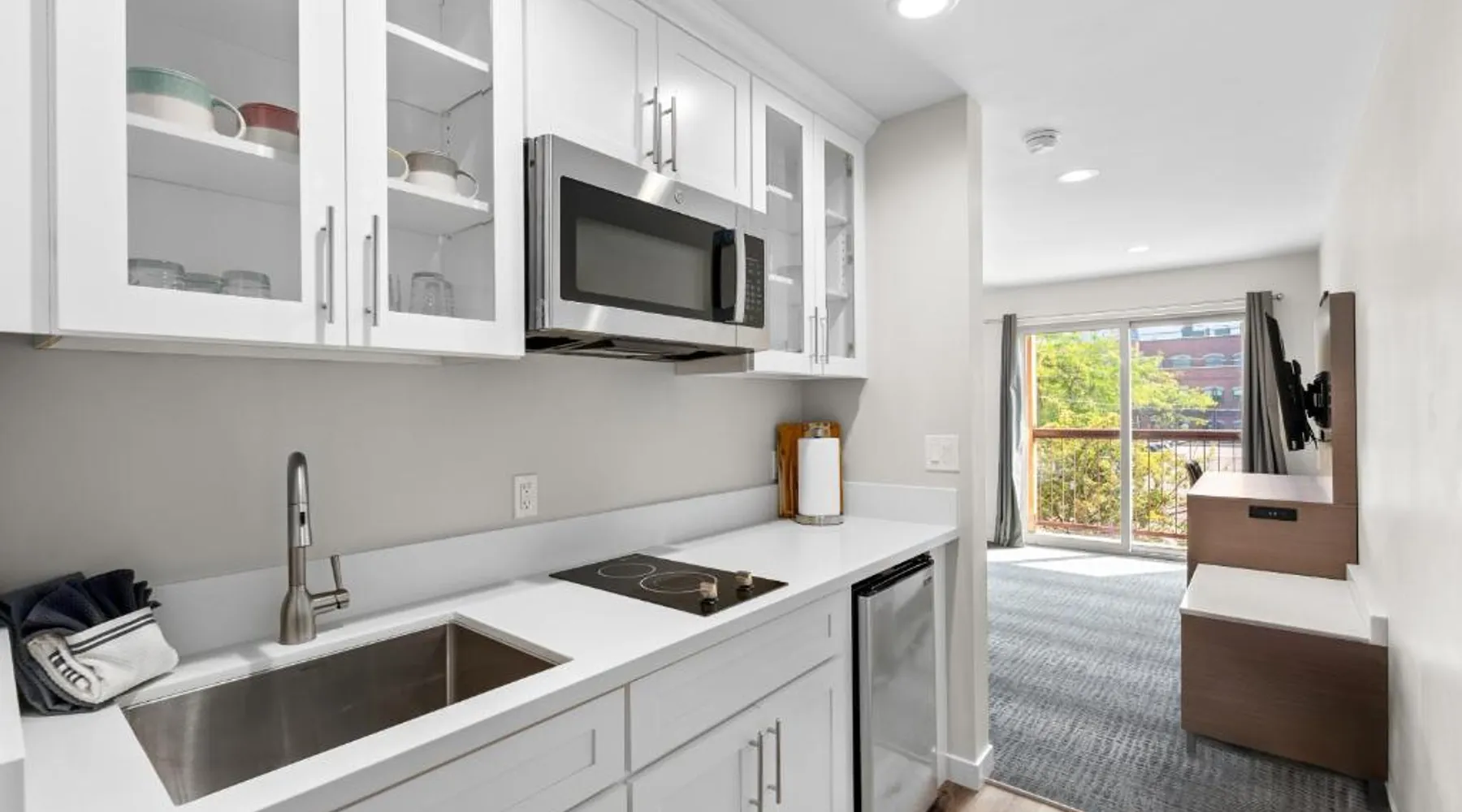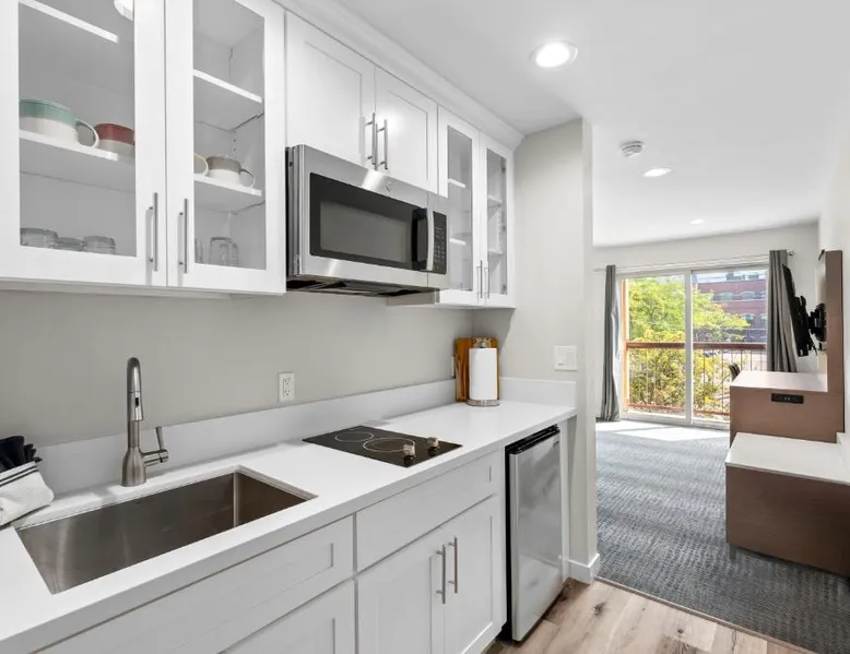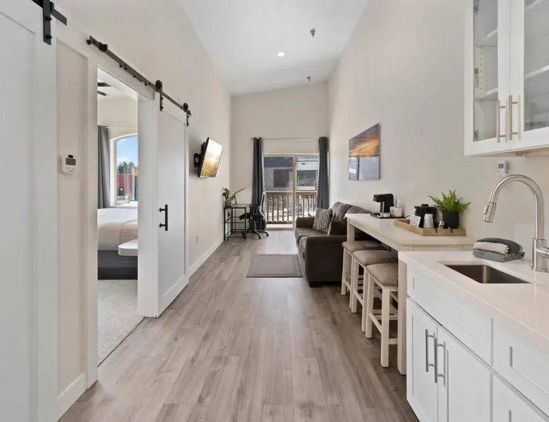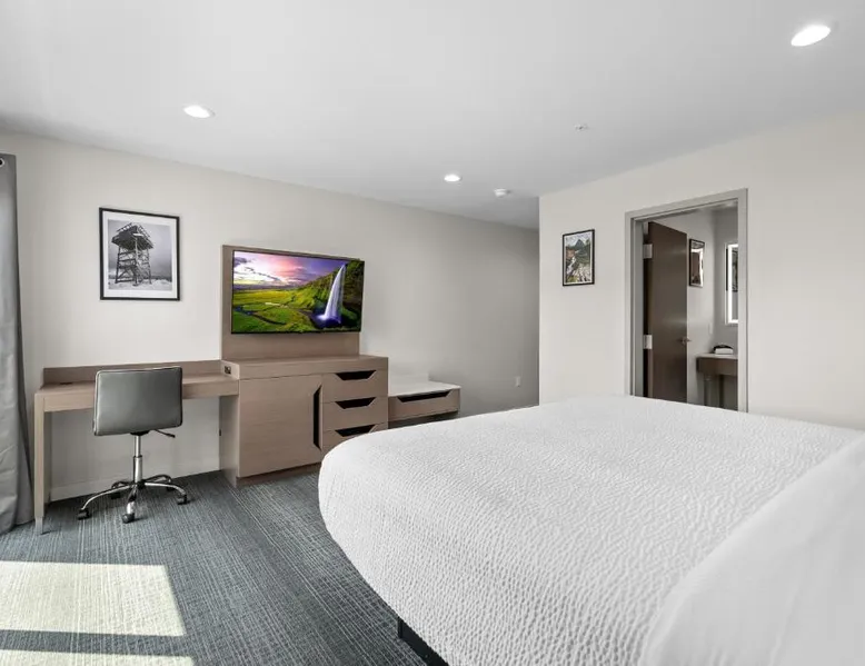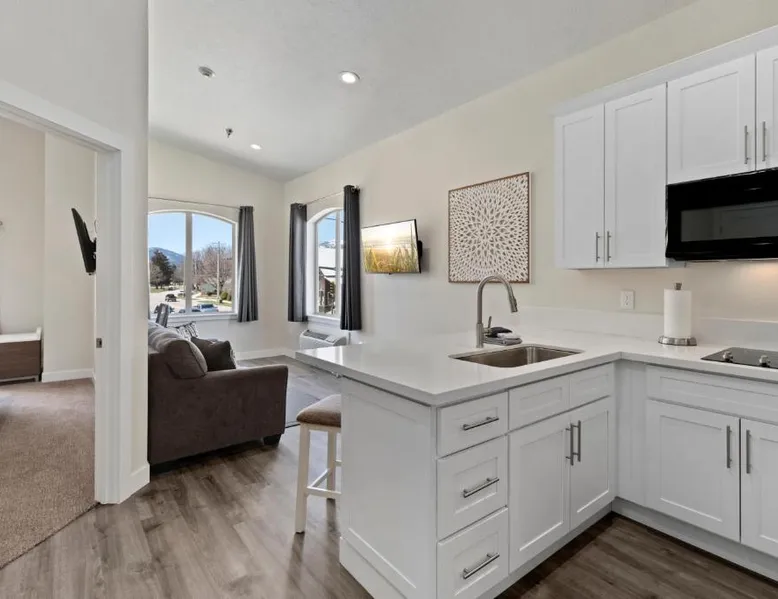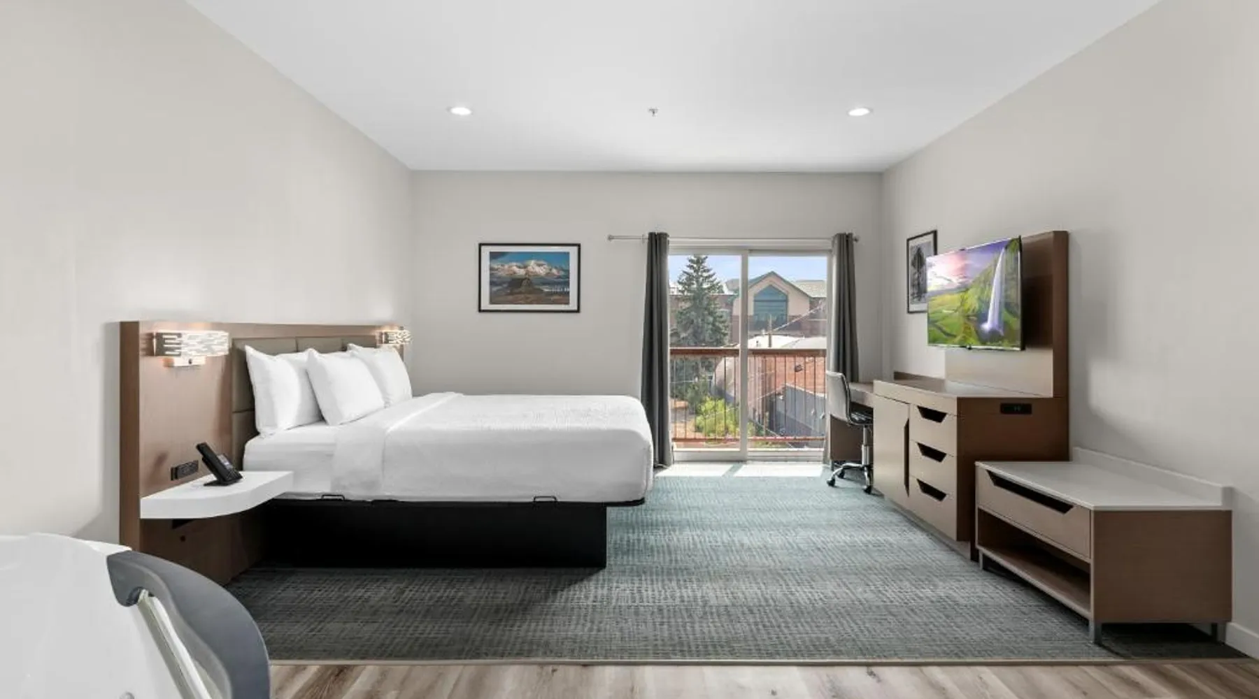 Just two-minute drive from Lake Pend Oreille, our hotel is located in the heart of downtown Sandpoint, offers a seasonal outdoor pool and year-round hot-tub room. Free Wi-Fi is included. A complimentary, fresh, grab-and-go breakfast including breakfast sandwiches, burritos, fruit, granola bars, etc., is included.. A flat-screen cable television with premium channels is offered in each room at the Cedar Street Hotel & Suites. A work desk is included, as well as a coffee maker, microwave, miniature fridge, and storage dressers. Pet-friendly rooms are available upon request. A fitness center and business center are available for convenience. Free parking is provided. A guest launderette is offered. Connie’s Café serves hearty American cuisine for breakfast, lunch and dinner and provides room service to guests. Connie’s Lounge is a nonsmoking cocktail bar with outdoor terrace. Schweitzer Mountain Ski Resort is 11 miles away. Silverwood Theme Park is 30 minutes’ drive from Cedar Street Hotel & Suites. The fireplace is the standout feature of this suite. The air-conditioned suite has 1 bedroom and 1 bathroom with a walk-in shower and a bath. In the fully equipped kitchen, guests will find a stovetop, a refrigerator, kitchenware and a microwave. The suite features carpeted floors, a seating area with a flat-screen TV with cable channels, a tea and coffee maker, a wardrobe, as well as heating. The unit has 1 bed.