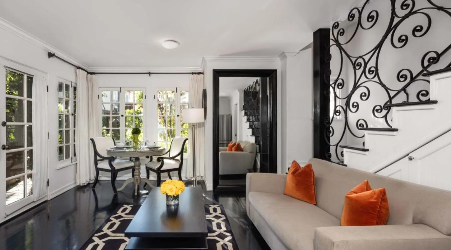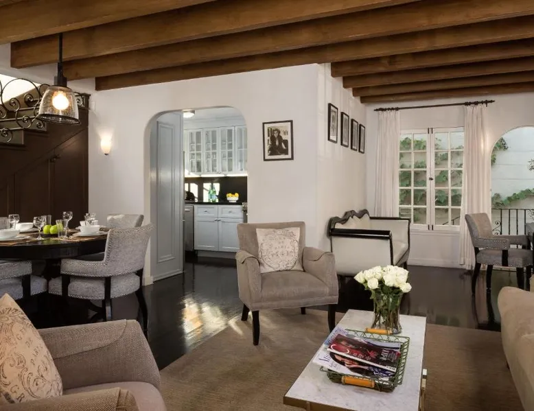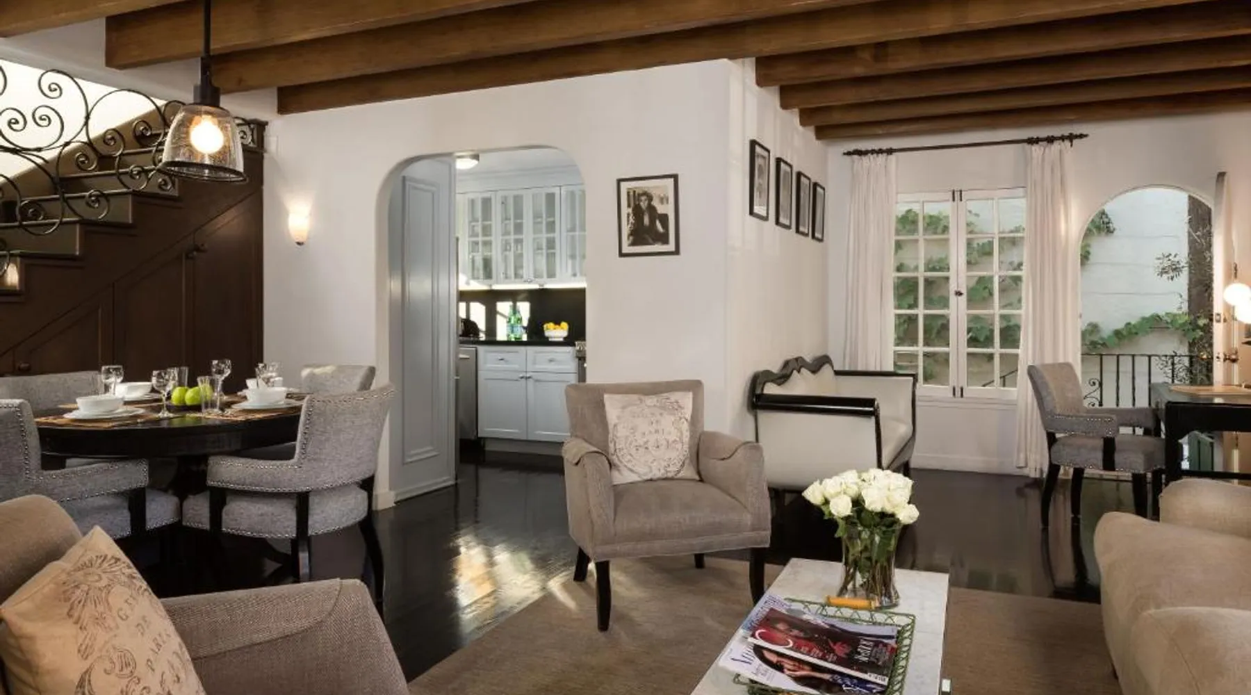 Once home to Charlie Chaplin, this historical hotel is centrally located in West Hollywood. A home away from home, the luxurious suites come with free WiFi, fully equipped modern kitchens and a private patio. Each spacious suite at The Charlie West Hollywood is named after a Hollywood star and is individually styled. Spacious, open living areas, large windows, and weekly fresh flowers provide a relaxing atmosphere. A flat-screen TV and in-unit washer/dryers are included. The Charlie West Hollywood offers laundry facilities on site for added convenience. Guests can relax outdoors on the English garden terrace. This 4-star boutique hotel is less than a mile from Sunset Boulevard. Many local shops and restaurants are just steps away from the hotel. This detached two-story bungalow offers a stovetop, dishwasher and seating area.