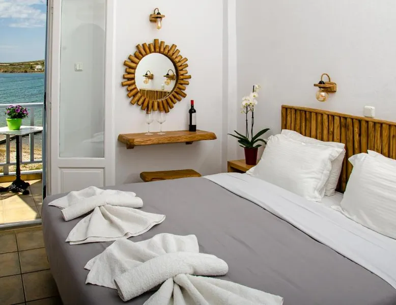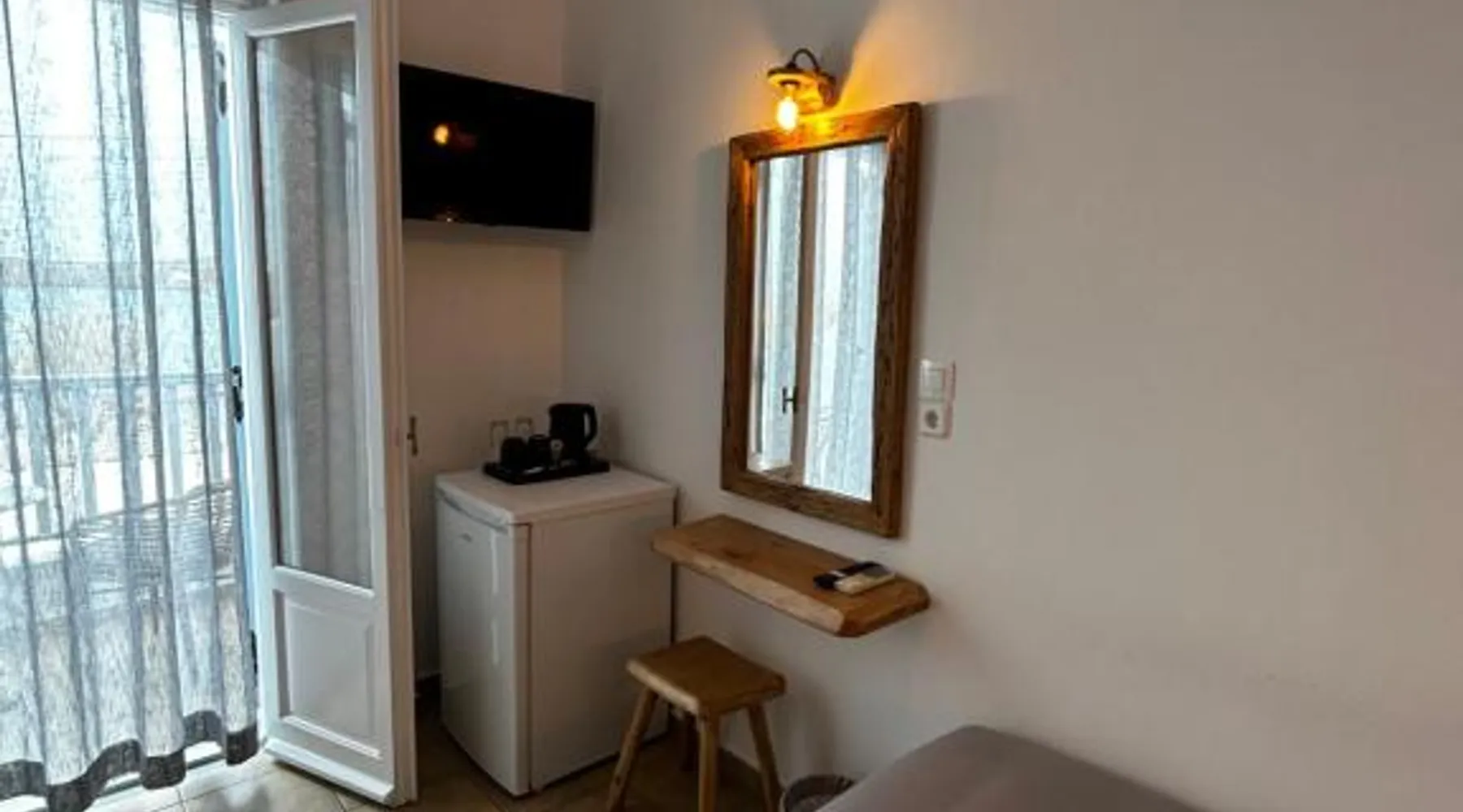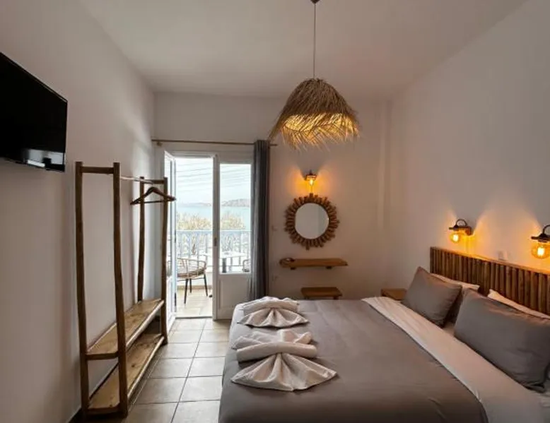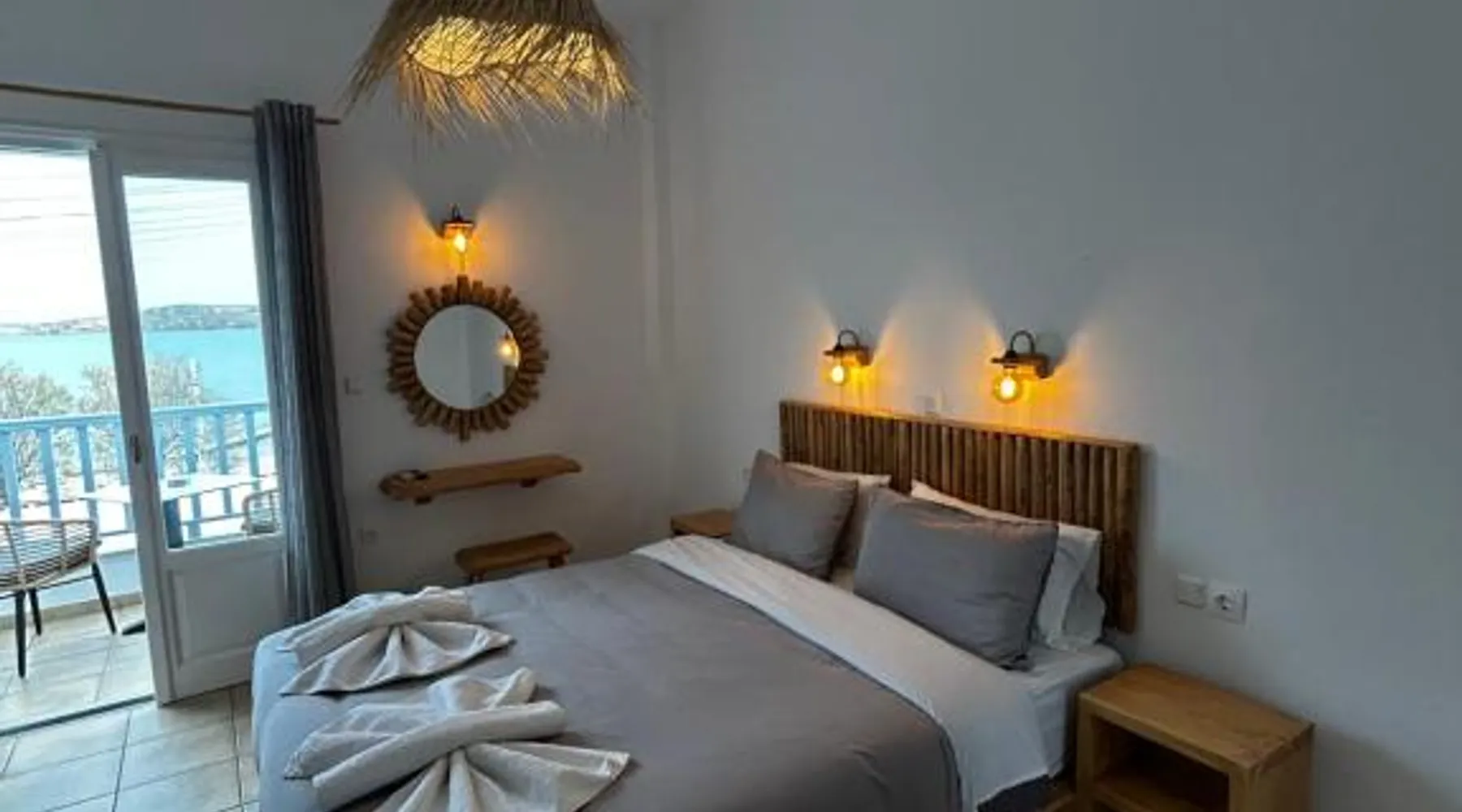 Hotel Livadia features a beachfront location on the main street by the sea in Parikia, less than half a mile from the port. The fully renovated Livadia Hotel consists of 10 rooms, 3 apartments and 3 studios. Each comes with all modern amenities including satellite TV and air conditioning. The hotel’s prime location by the beach, allows guests to relax and enjoy the beautiful views of the sea and the sunset from their private balcony. Parikia, the capital of Paros, is an original example of Cycladic architecture: a picturesque village with narrow streets and blue and white traditional houses surrounded by bougainvilleas. A lot of shops, restaurants, taverns and bars give Parikia a lively tourist character from sunset until dawn. Opening to a balcony, this one-bedroom apartment includes a kitchenette with a fridge, air conditioning and a satellite TV.