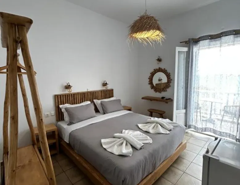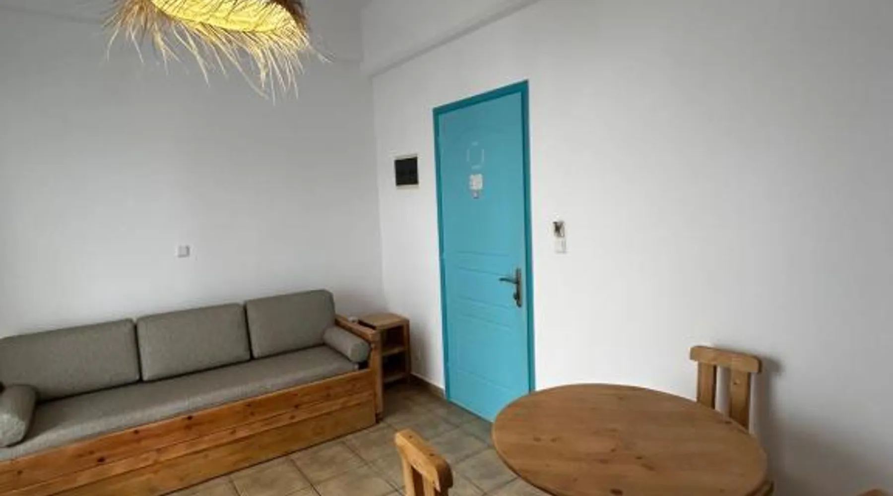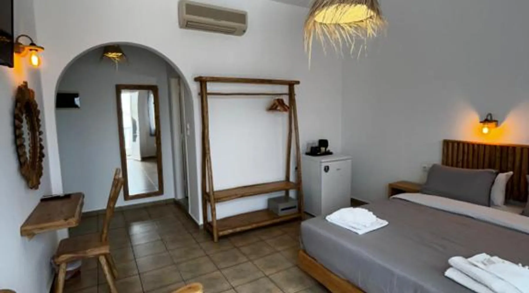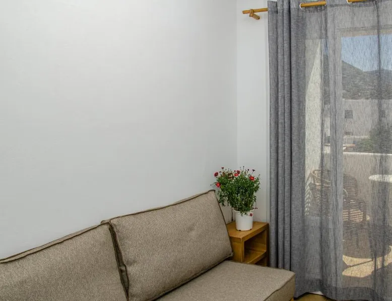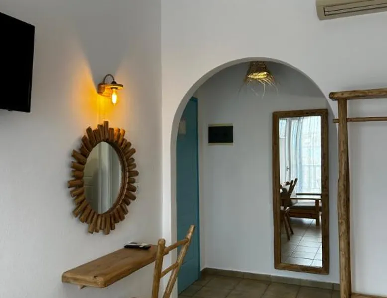 Hotel Livadia features a beachfront location on the main street by the sea in Parikia, less than half a mile from the port. The fully renovated Livadia Hotel consists of 10 rooms, 3 apartments and 3 studios. Each comes with all modern amenities including satellite TV and air conditioning. The hotel’s prime location by the beach, allows guests to relax and enjoy the beautiful views of the sea and the sunset from their private balcony. Parikia, the capital of Paros, is an original example of Cycladic architecture: a picturesque village with narrow streets and blue and white traditional houses surrounded by bougainvilleas. A lot of shops, restaurants, taverns and bars give Parikia a lively tourist character from sunset until dawn. Opening to a balcony, this one-bedroom apartment includes a kitchenette with a fridge, air conditioning and a satellite TV.