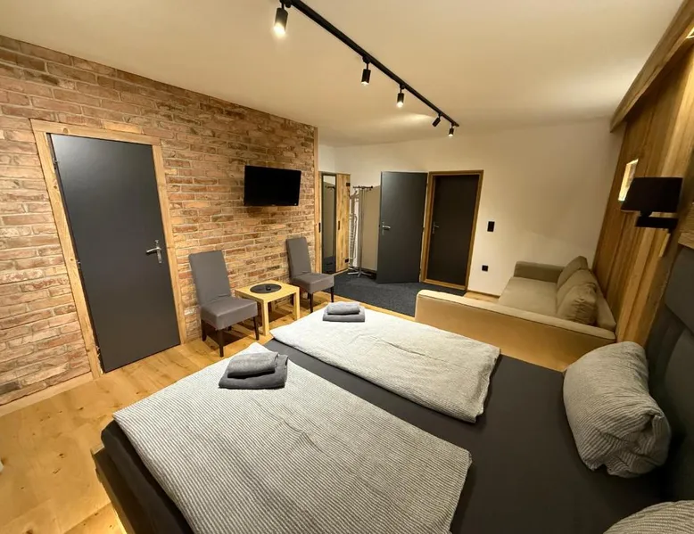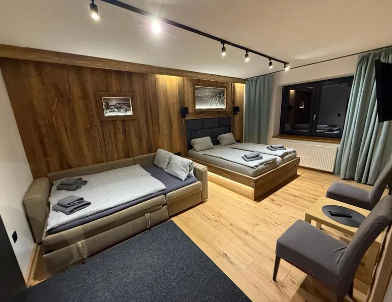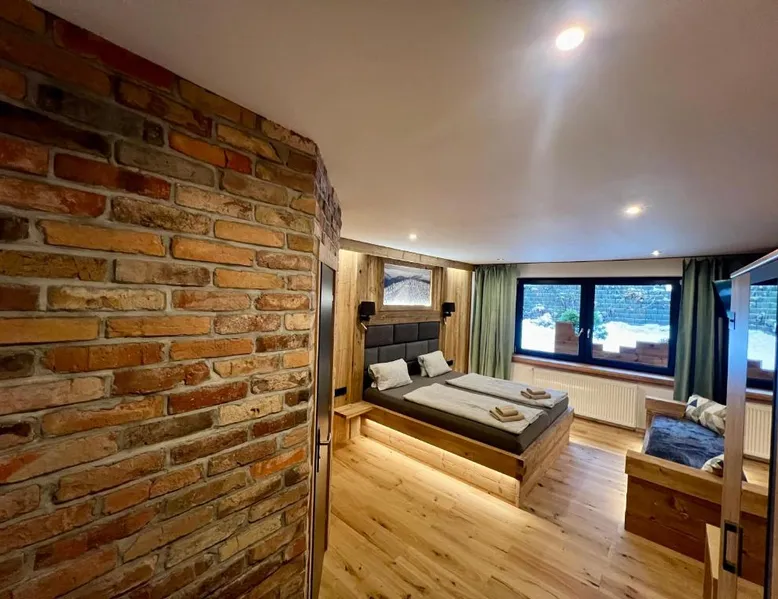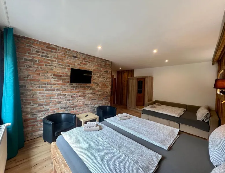 Located in the Krkonoše National Park, Pension U Studny is located in Harrachov, and offers a restaurant with a covered terrace and free WiFi access. The Harrachov Ski Area is only 656 feet away. All rooms feature a flat-screen TV with satellite channels. A seating area and a private bathroom with free toiletries are further amenities of the rooms. Breakfast is available every morning at the Pension U Studny's restaurant. A grocery shop is also in the same building. Ski equipment hire and a ski storage room are available on spot. Free private parking is offered to all guests. The guest house is 1969 feet from the Ski Jumps Harrachov and 0.6 mi from the Novosad and Son Glass Factory. A covered swimming pool is located 1.6 mi away. A bus stops 230 feet away and the Harrachov Train Station is 2.5 mi from the property. Room with a flat-screen TV with satellite channels and a private bathroom with free toiletries.
