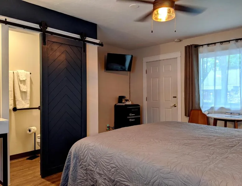 Comfortable Accommodations: Cedar Court Inn in Fish Creek offers air-conditioned rooms with private bathrooms, tea and coffee makers, and free WiFi. Each room includes a refrigerator, TV, and free toiletries. Outdoor Amenities: Guests can relax on the sun terrace, in the garden, or by the seasonal outdoor swimming pool. The property features outdoor seating, picnic areas, bicycle parking, and barbecue facilities. Convenient Location: Located 74 mi from Green Bay–Austin Straubel International Airport, the hotel is a 5-minute walk from Fish Creek Beach. Nearby attractions include Cana Island Lighthouse (14 mi) and Cave Point County Park (17 mi). Guests appreciate the convenient location and nearby shops. This double room's special features are the spa bath and the fireplace. This air-conditioned double room includes a flat-screen TV with cable channels, a private bathroom as well as outdoor furniture. The unit offers 1 bed.