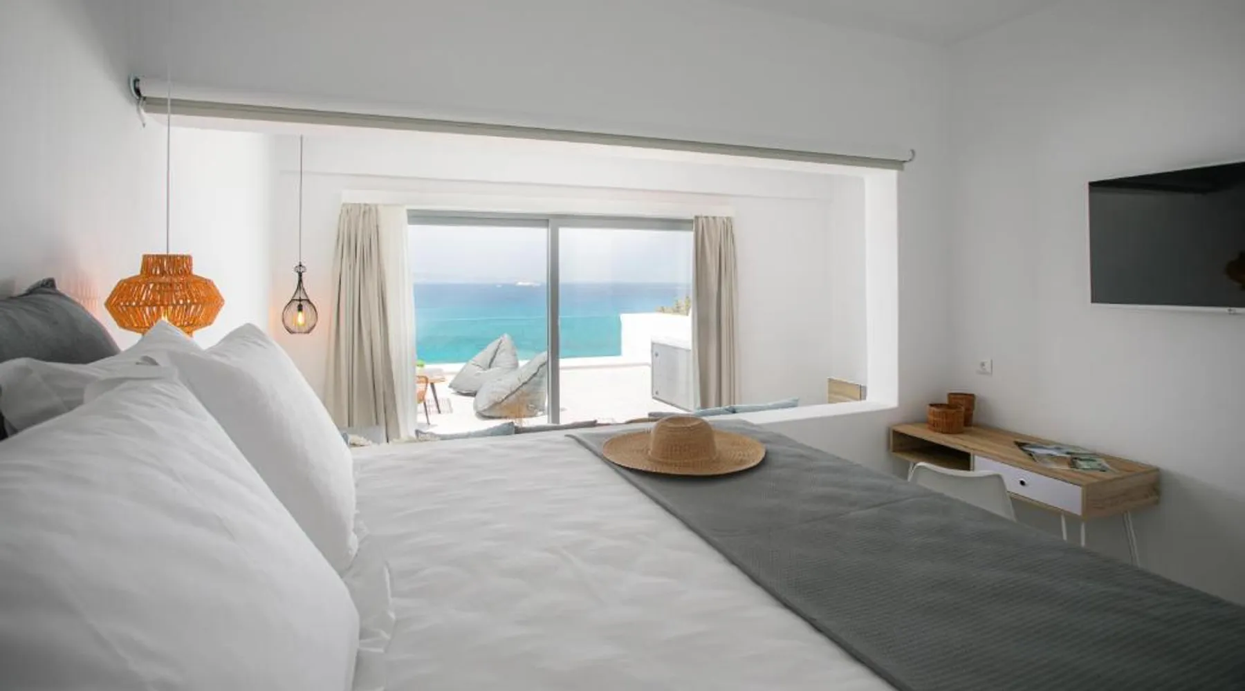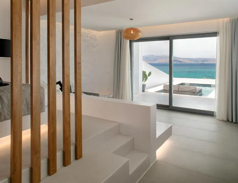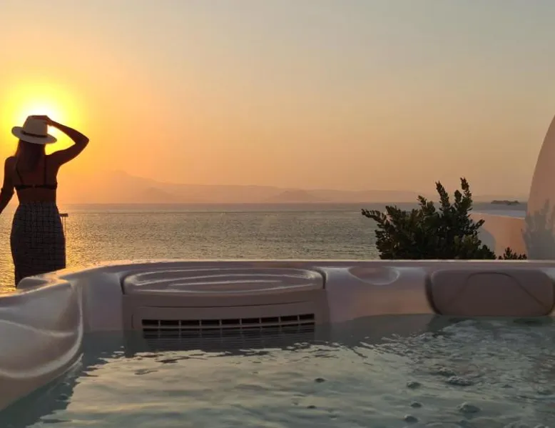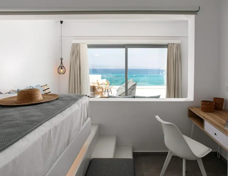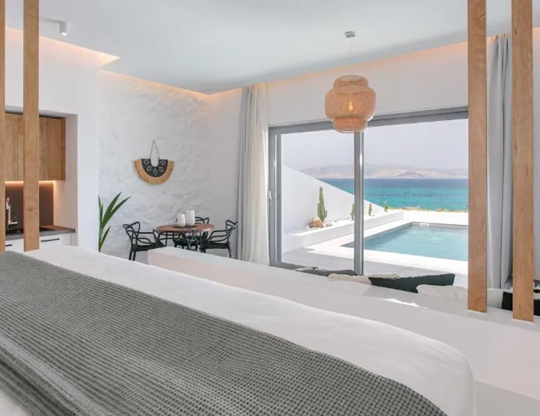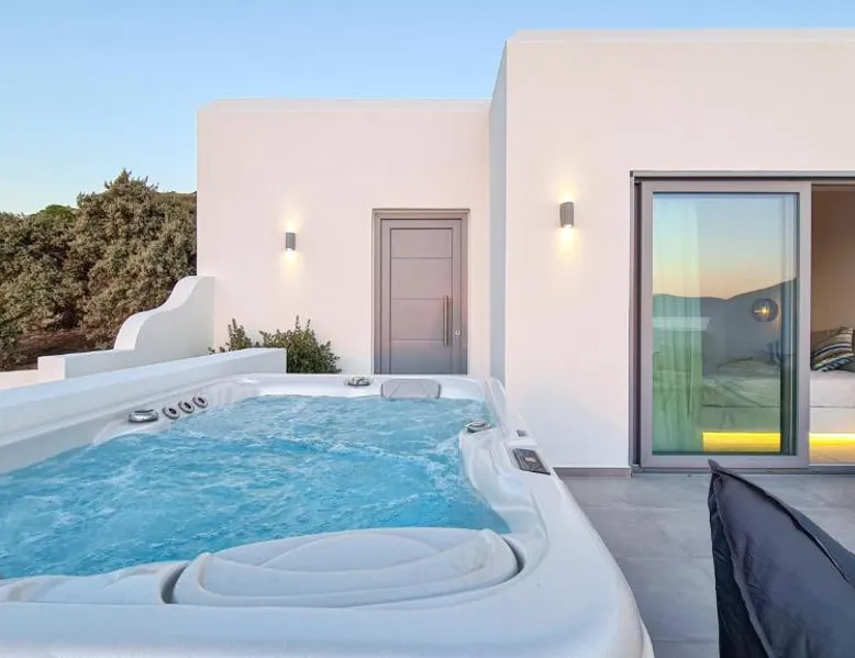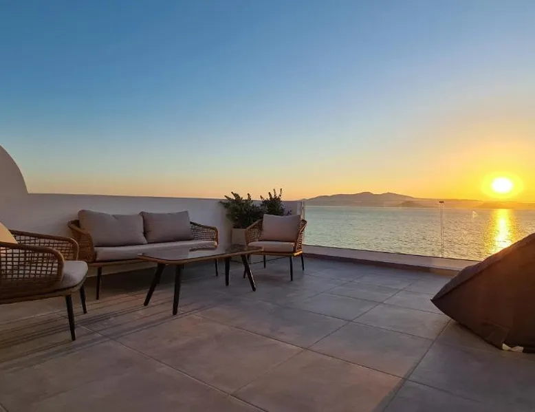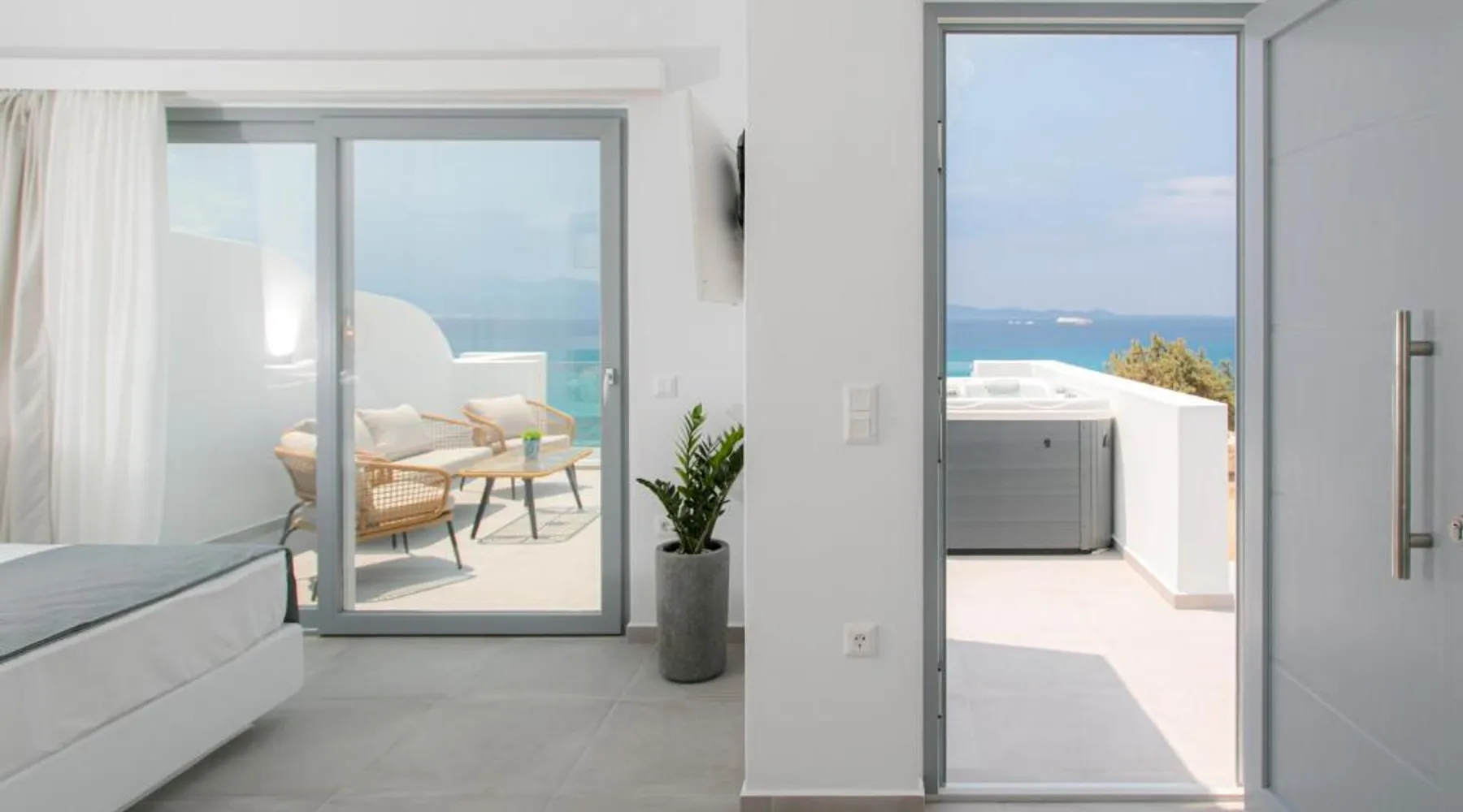 Beachfront Location: Seanfinity Beachfront Suites in Orkos offers direct beachfront access, a sun terrace, and a lush garden. Guests enjoy sea views and a serene setting with free WiFi. Comfortable Amenities: The apartment features air-conditioning, a terrace, balcony, and a fully equipped kitchen. Additional amenities include a hot tub, pool with a view, and free on-site parking. Nearby Attractions: Orkos Beach is just a few steps away, while Naxos Castle lies 6.8 mi from the property. Other attractions include Portara and the Archaeological Museum of Naxos, each 6.8 mi distant. Guest Satisfaction: Highly rated for its beachfront location, scenic views, and attentive host, Seanfinity Beachfront Suites ensures a memorable stay. This suite's special features are the hot tub and the spa bath. Featuring a private entrance, this air-conditioned suite consists of 1 living room, 1 separate bedroom and 1 bathroom with a walk-in shower and a bidet. The well-equipped kitchen features a stovetop, a refrigerator, kitchenware and a tea and coffee maker. Boasting a terrace with sea views, this suite also provides soundproof walls and a flat-screen TV with streaming services. The unit offers 2 beds.