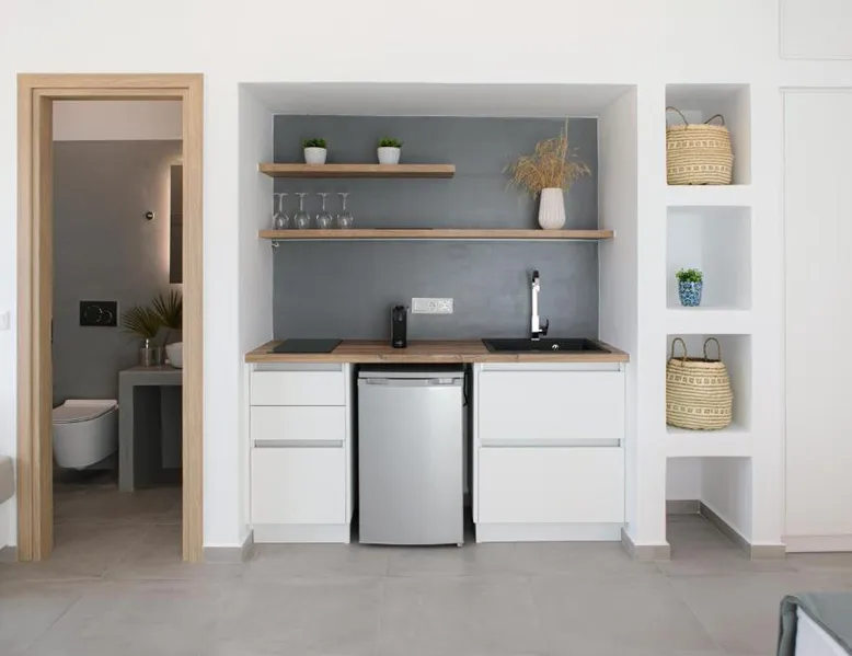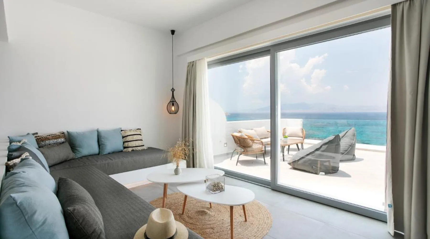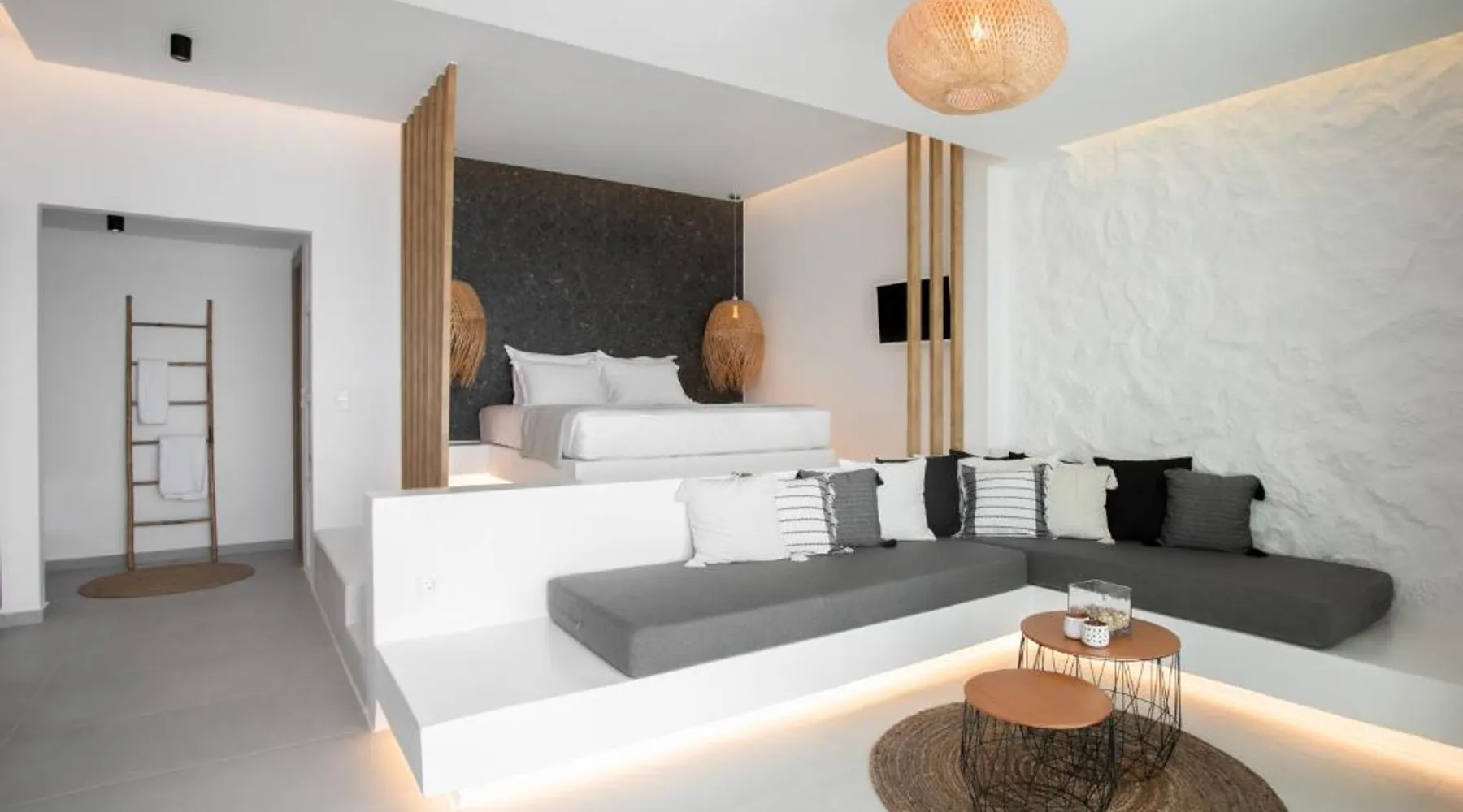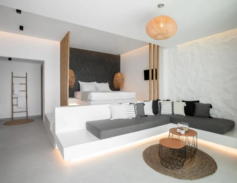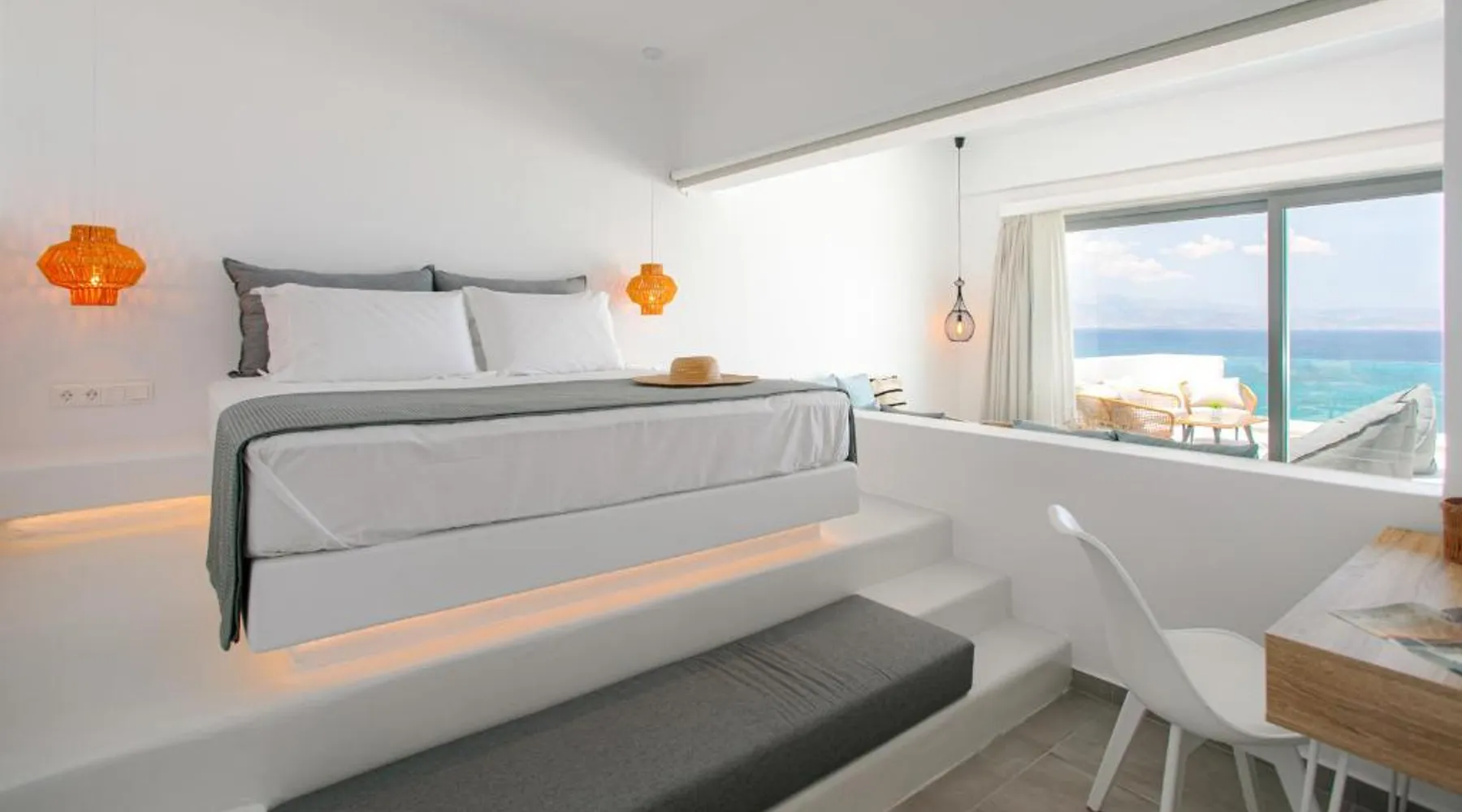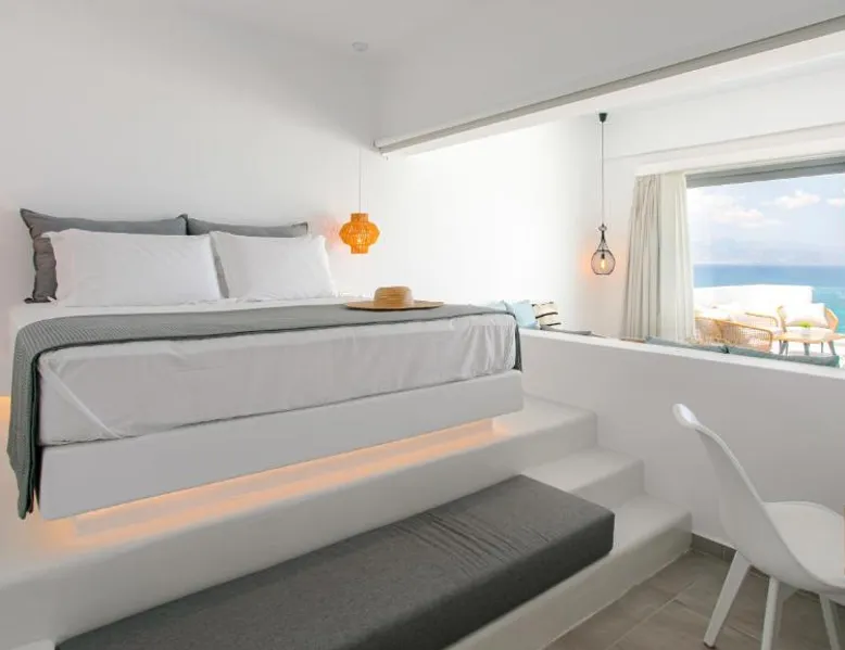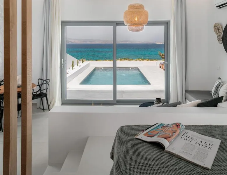 Beachfront Location: Seanfinity Beachfront Suites in Orkos offers direct beachfront access, a sun terrace, and a lush garden. Guests enjoy sea views and a serene setting with free WiFi. Comfortable Amenities: The apartment features air-conditioning, a terrace, balcony, and a fully equipped kitchen. Additional amenities include a hot tub, pool with a view, and free on-site parking. Nearby Attractions: Orkos Beach is just a few steps away, while Naxos Castle lies 6.8 mi from the property. Other attractions include Portara and the Archaeological Museum of Naxos, each 6.8 mi distant. Guest Satisfaction: Highly rated for its beachfront location, scenic views, and attentive host, Seanfinity Beachfront Suites ensures a memorable stay. This suite's special features are the hot tub and the spa bath. Featuring a private entrance, this air-conditioned suite consists of 1 living room, 1 separate bedroom and 1 bathroom with a walk-in shower and a bidet. The well-equipped kitchen features a stovetop, a refrigerator, kitchenware and a tea and coffee maker. Boasting a terrace with sea views, this suite also provides soundproof walls and a flat-screen TV with streaming services. The unit offers 2 beds.