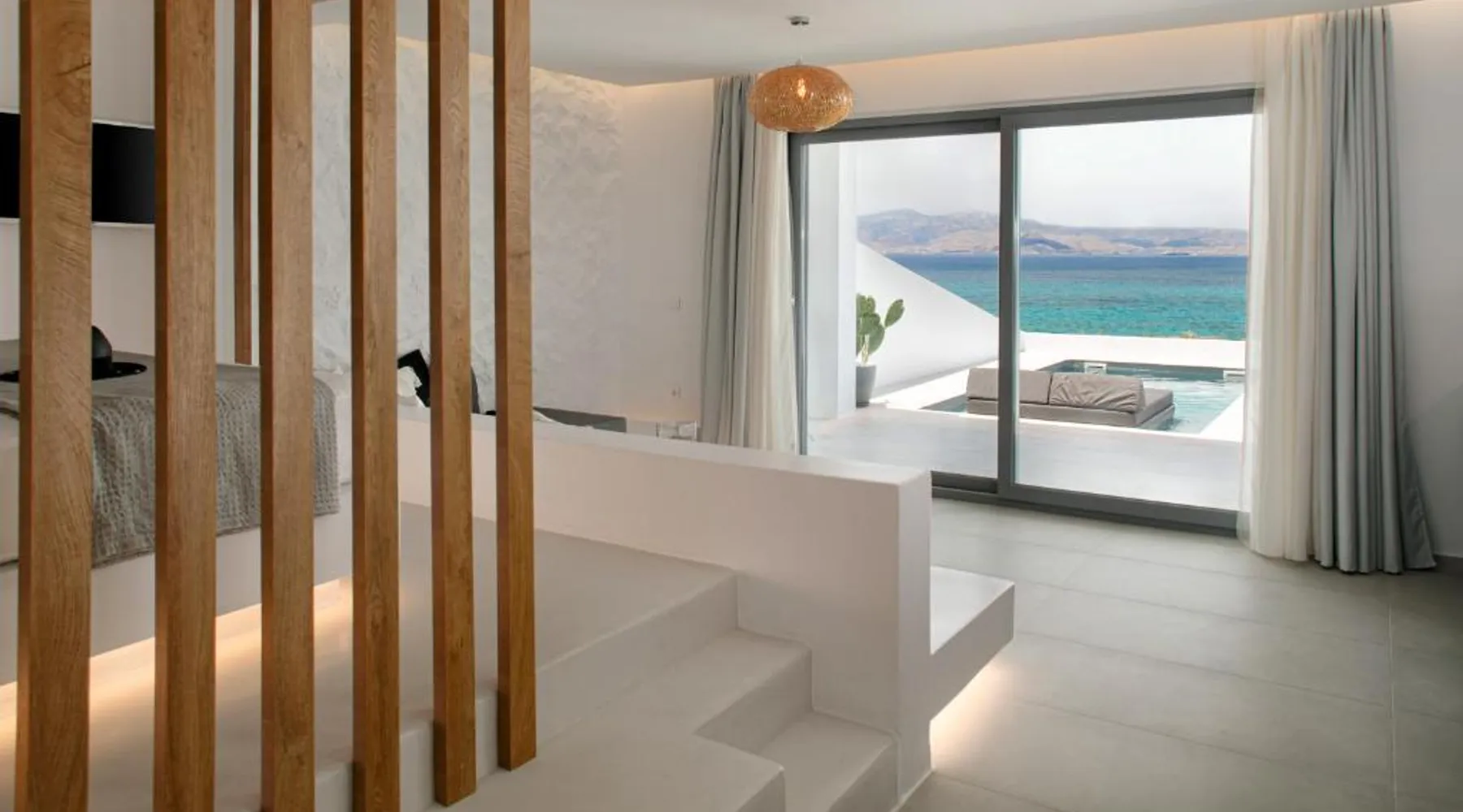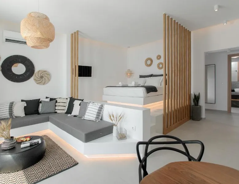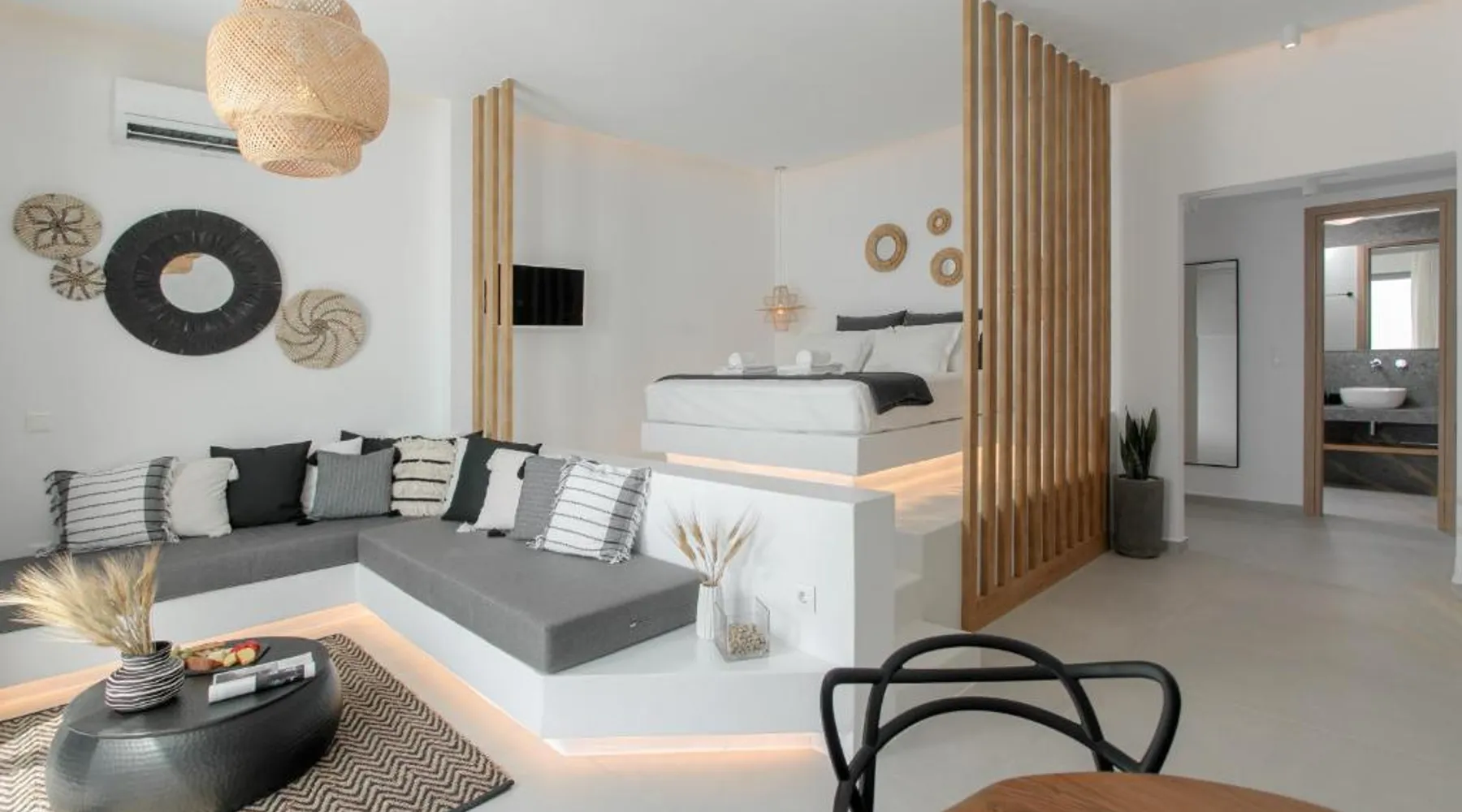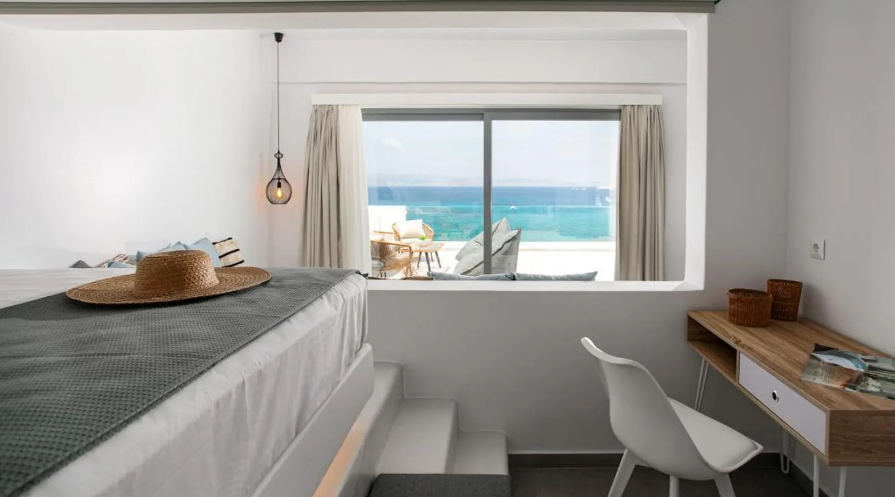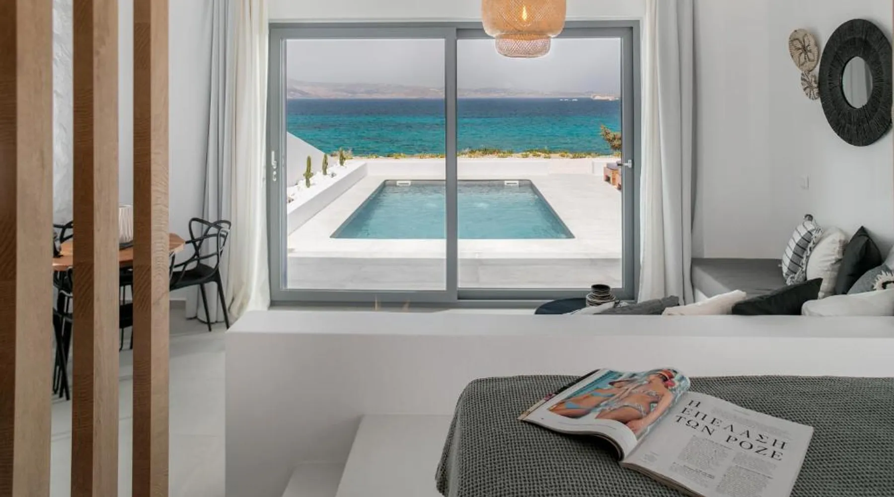 Beachfront Location: Seanfinity Beachfront Suites in Orkos offers direct beachfront access, a sun terrace, and a lush garden. Guests enjoy sea views and a serene setting with free WiFi. Comfortable Amenities: The apartment features air-conditioning, a terrace, balcony, and a fully equipped kitchen. Additional amenities include a hot tub, pool with a view, and free on-site parking. Nearby Attractions: Orkos Beach is just a few steps away, while Naxos Castle lies 6.8 mi from the property. Other attractions include Portara and the Archaeological Museum of Naxos, each 6.8 mi distant. Guest Satisfaction: Highly rated for its beachfront location, scenic views, and attentive host, Seanfinity Beachfront Suites ensures a memorable stay. This suite's special features are the hot tub and the spa bath. Featuring a private entrance, this air-conditioned suite consists of 1 living room, 1 separate bedroom and 1 bathroom with a walk-in shower and a bidet. The well-equipped kitchen features a stovetop, a refrigerator, kitchenware and a tea and coffee maker. Boasting a terrace with sea views, this suite also provides soundproof walls and a flat-screen TV with streaming services. The unit offers 2 beds.