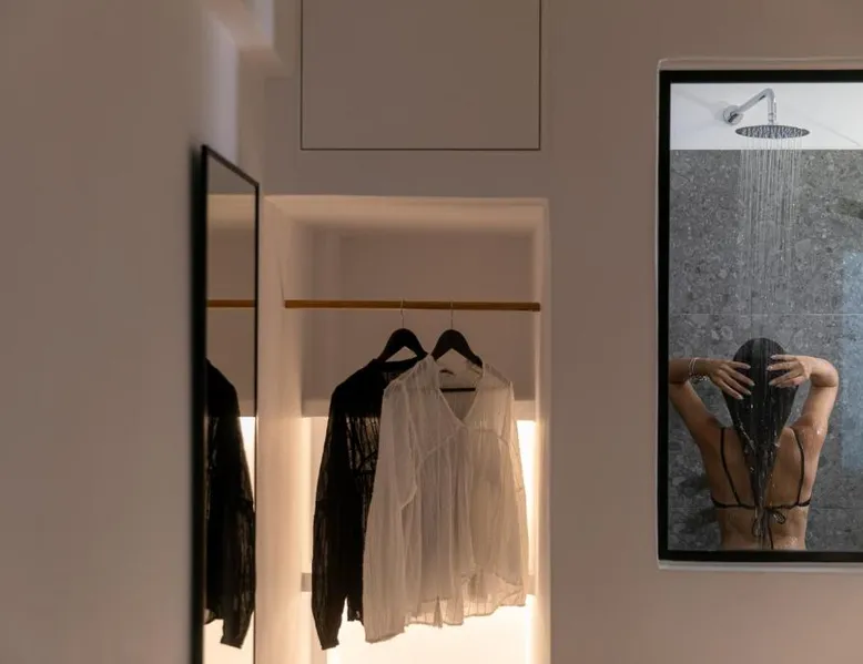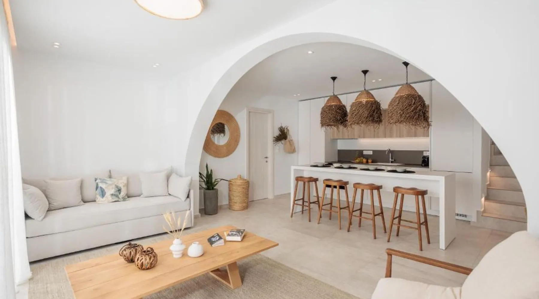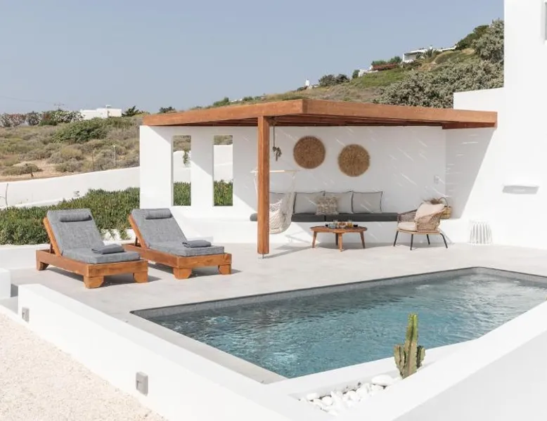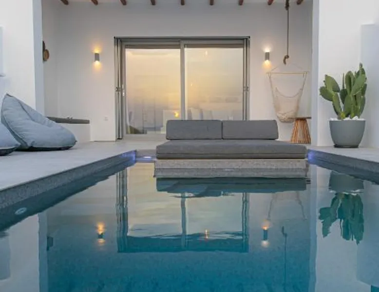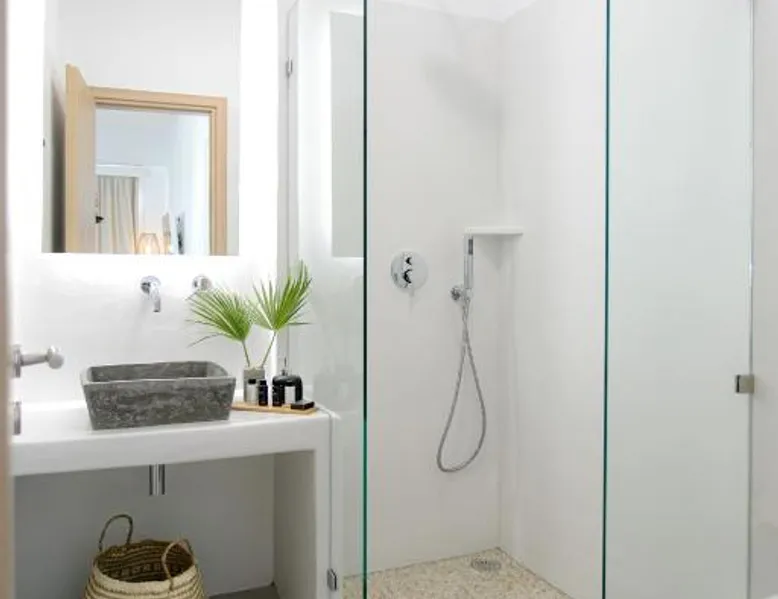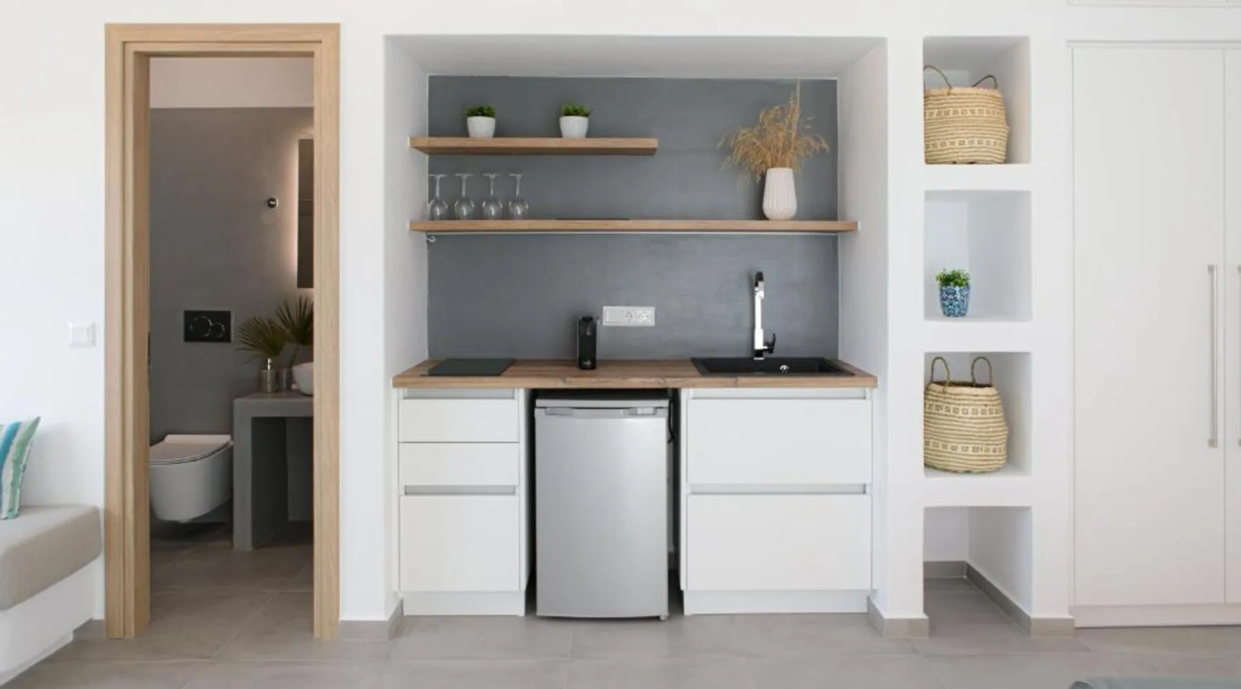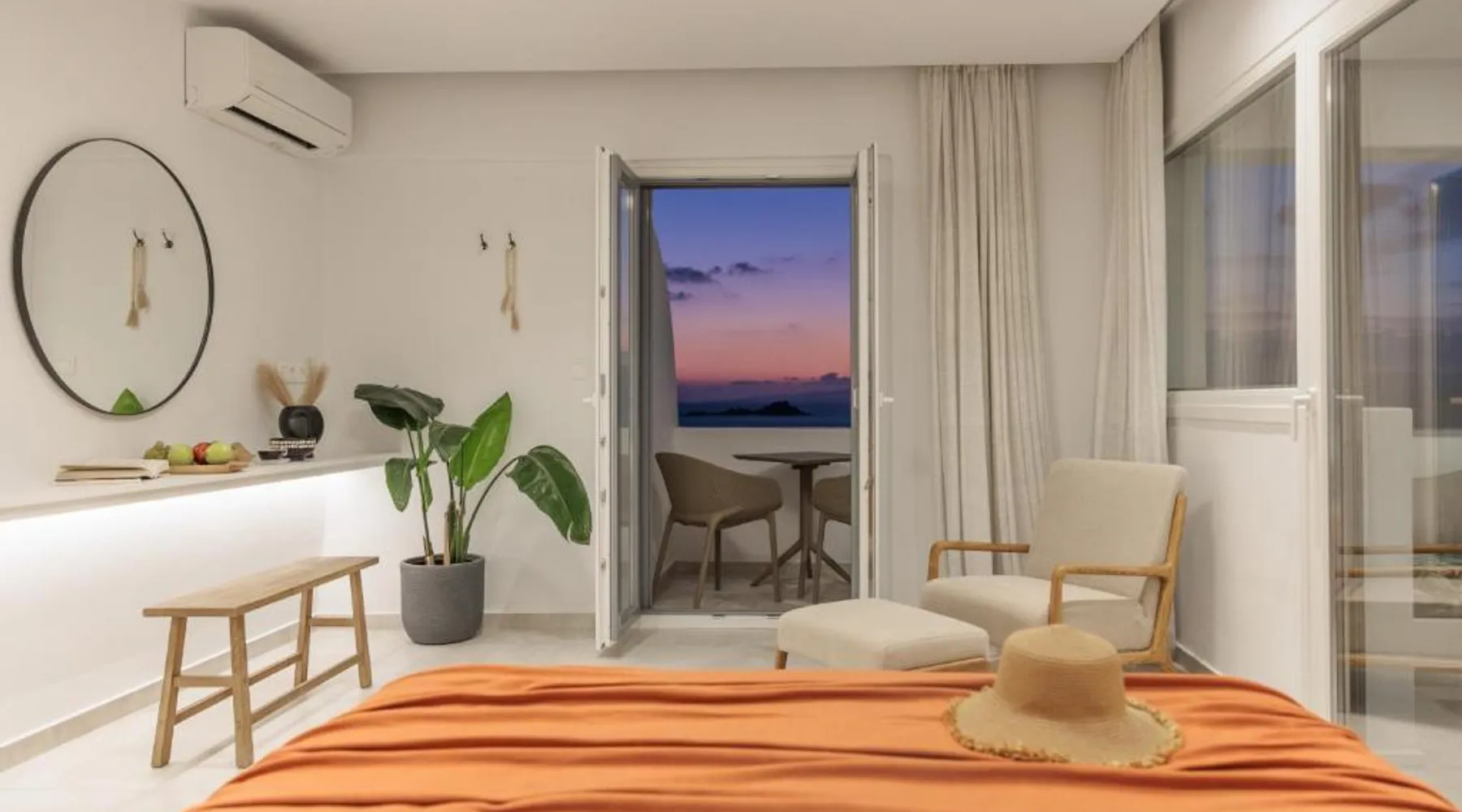 Beachfront Location: Seanfinity Beachfront Suites in Orkos offers direct beachfront access, a sun terrace, and a lush garden. Guests enjoy sea views and a serene setting with free WiFi. Comfortable Amenities: The apartment features air-conditioning, a terrace, balcony, and a fully equipped kitchen. Additional amenities include a hot tub, pool with a view, and free on-site parking. Nearby Attractions: Orkos Beach is just a few steps away, while Naxos Castle lies 6.8 mi from the property. Other attractions include Portara and the Archaeological Museum of Naxos, each 6.8 mi distant. Guest Satisfaction: Highly rated for its beachfront location, scenic views, and attentive host, Seanfinity Beachfront Suites ensures a memorable stay. This suite's special features are the hot tub and the spa bath. Featuring a private entrance, this air-conditioned suite consists of 1 living room, 1 separate bedroom and 1 bathroom with a walk-in shower and a bidet. The well-equipped kitchen features a stovetop, a refrigerator, kitchenware and a tea and coffee maker. Boasting a terrace with sea views, this suite also provides soundproof walls and a flat-screen TV with streaming services. The unit offers 2 beds.