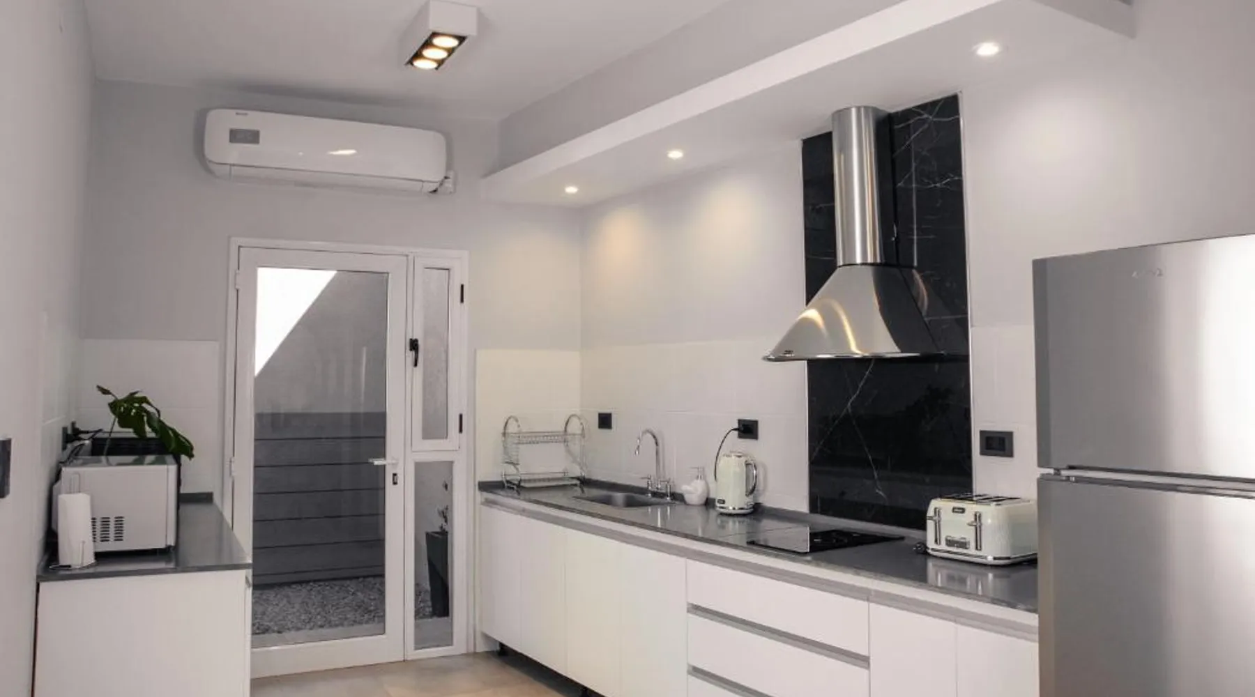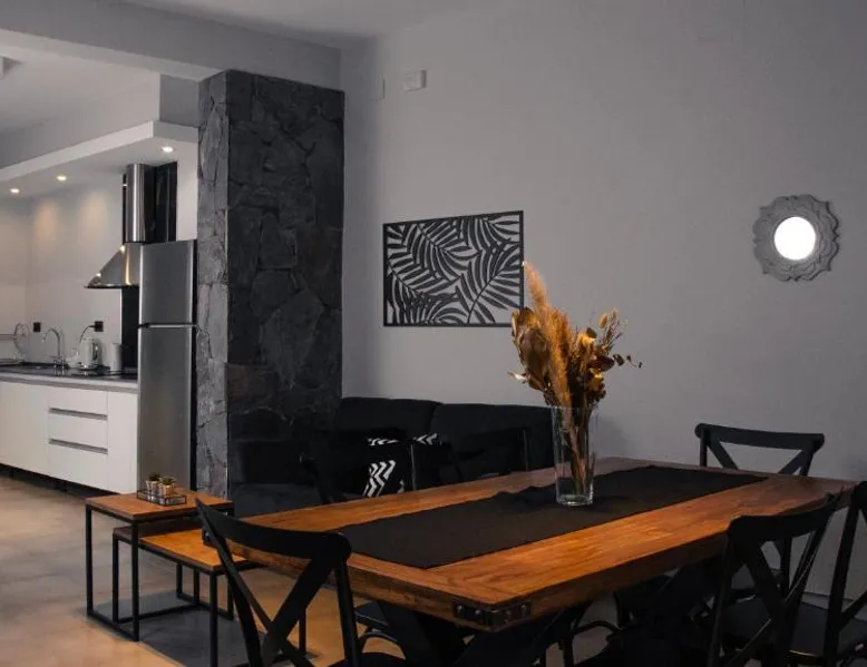 COMPLEJO JUANA HOUSE provides accommodations in San Juan. 8.6 miles from San Juan del Bicentenario Stadium, the apartment offers a garden and a bar. Outdoor seating is also available at the apartment. The apartment complex will provide guests with air-conditioned units offering a desk, a kettle, a fridge, a minibar, a safety deposit box, a flat-screen TV, and a private bathroom with a bidet. Free Wifi is accessible to all guests, while selected rooms also offer a balcony. At the apartment complex, the units include bed linen and towels. Domingo Faustino Sarmiento Airport is 10 miles from the property. The spacious apartment has 2 bedrooms and 2 bathrooms with a shower and free toiletries. Guests can make meals in the kitchen that features a stovetop, a refrigerator, kitchenware and an oven. This air-conditioned apartment comes with a dining area, a flat-screen TV with streaming services a mini-bar and a patio. The unit has 5 beds.