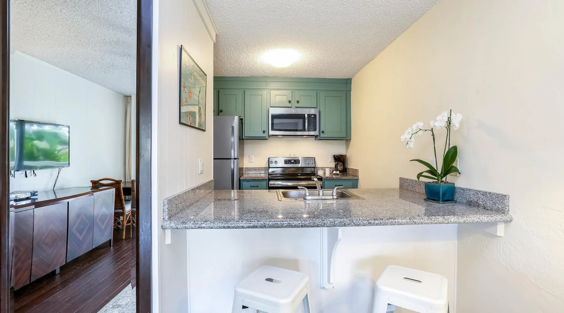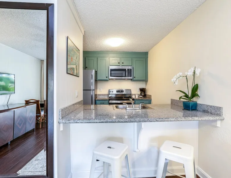 Hawaii Life Rentals Presents Plantation Hale - On the Royal Coconut Coast, with it's central location on the East Side of Kauai. Steps to grocery shopping or walk to several restaurants and beaches nearby. Easy parking, AC, washer/dryer at each building. The space New Listing! Located right on the Royal Coconut Coast, you’re in a perfect central location at Plantation Hale, Kapaa. Walk across the street to the Coconut Plantation Marketplace to shop at any of the boutiques or pick up groceries. Walk 50 steps in a slightly different direction to award winning Hukilau Lanai for dinner, cocktails and live music or Spa Makaiwa for a massage or facial. Enter the front door and you’ll immediately be drawn to the beautiful upgrades the owner has graciously offered. The kitchen is compact, but offers everything you need to create a simple snack or a lavish meal. Enjoy the stainless steel appliances and granite counters to create your masterpiece with bar seating or a small dining area. A lanai space off each room offers an extension of the master bedroom or living room for that morning cup of coffee or afternoon cocktail. AC cools the entire condo if you want and a washer/dryer is at the end of each building for your use. * Free wifi * Free parking * Pull out sofa for those who snore * Less than 7 miles from the airport * Close to our coastal 8-mile pedestrian path for a stroll along the ocean * 2 TV's * Walking Distance to the Beach * 2 miles to Nonou Trail Head (Sleeping Giant Mountain) Plantation Hale amenities: * 3 Pools * 2 Hot Tubs * Shuffle Board * Onsite concierge * Grills and Picnic Areas * Front Desk and Onsite Security **NO ELEVATOR Best of all, is our central location as a jumping off point for all other sights around the island. Enterprise Rent A Car is now at Plantation Marketplace! A 45 minute drive to the North Shore will take you to all the sights Hanalei area has to offer. A 30 minute drive to the South Shore will take you to Poipu Beach, Kukuiula Shopping Center for more fine dining and evening sunsets over the water. Perhaps the best amenity of all is the chance to unwind, relax and reconnect with the people most important to you on the breathtaking Garden Isle of Kauai. *stays longer than 21 days will require a mid stay cleaning(s). Hawaii Life Rentals is a locally owned, licensed real estate company with rentals on Kauai, Maui, Oahu, and Hawaii. We offer on-island personal assistance and Concierge services. Rates do not include taxes, cleaning and applicable fees. Hawaii Life/VRBO bookings: Guests must sign a rental contract within 48 hours of booking to confirm the reservation. TA-210-621-3376-01 TMK-430020170011 Registration Details 430020170011, TA-210-621-3376-01