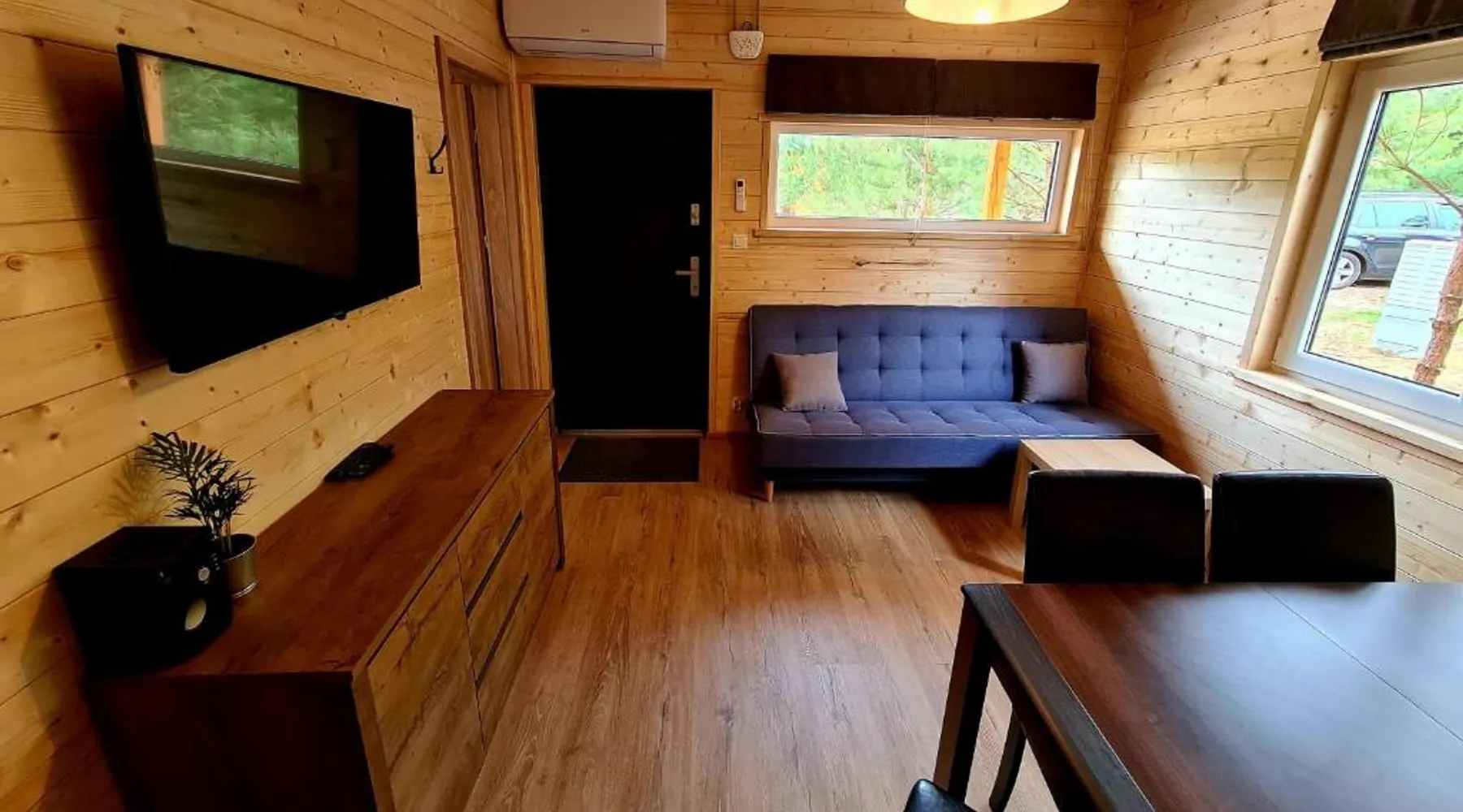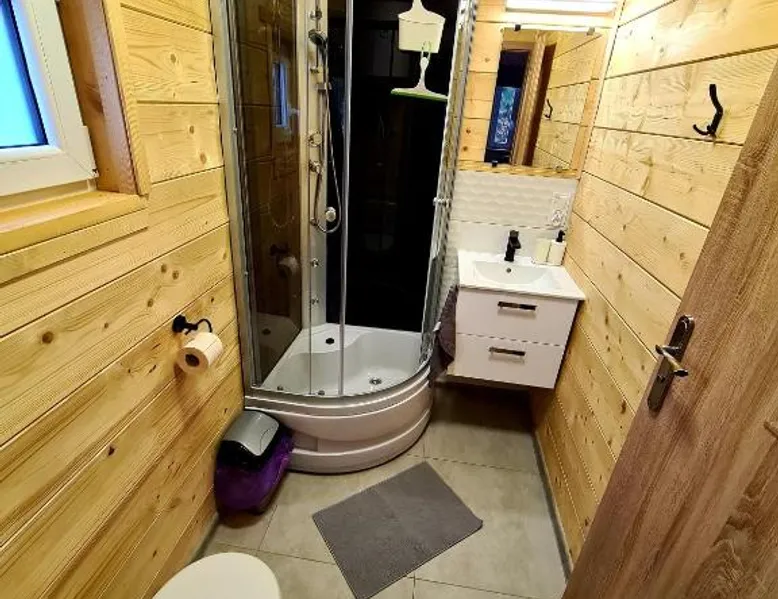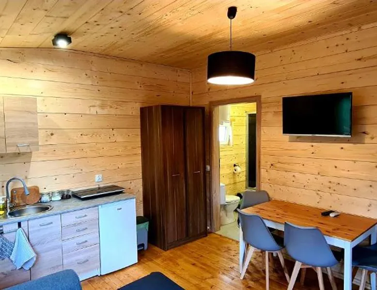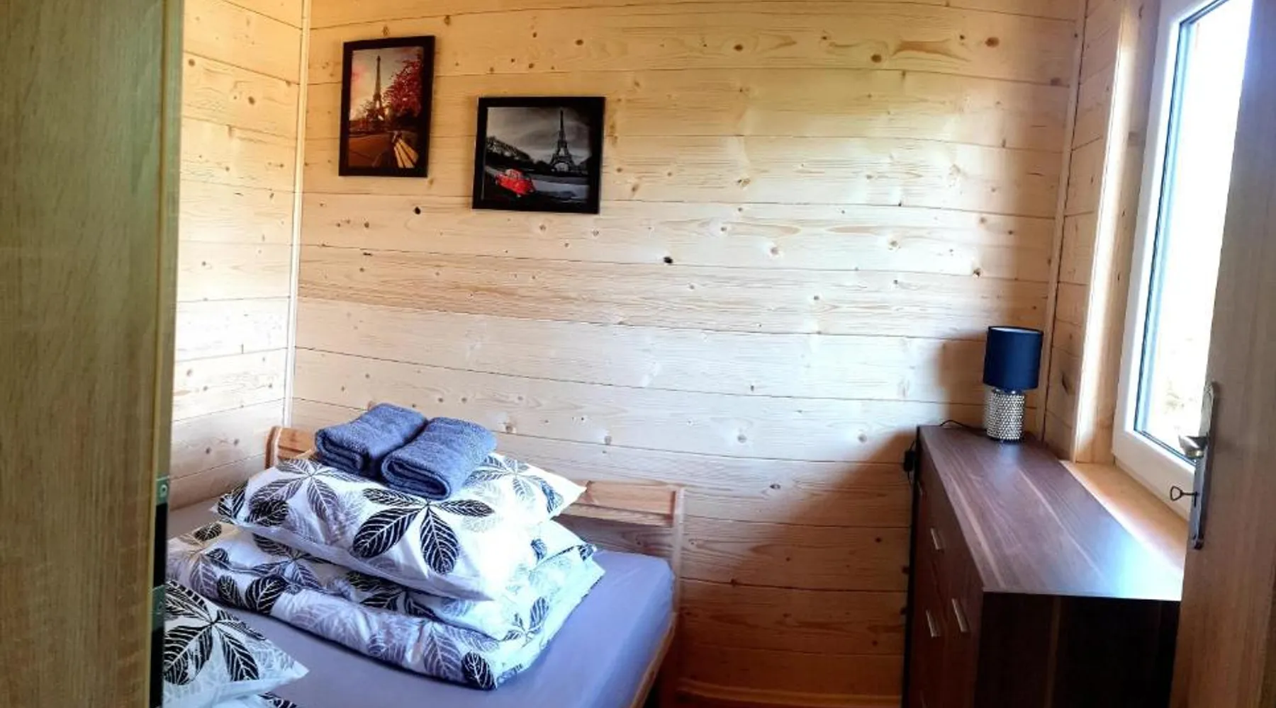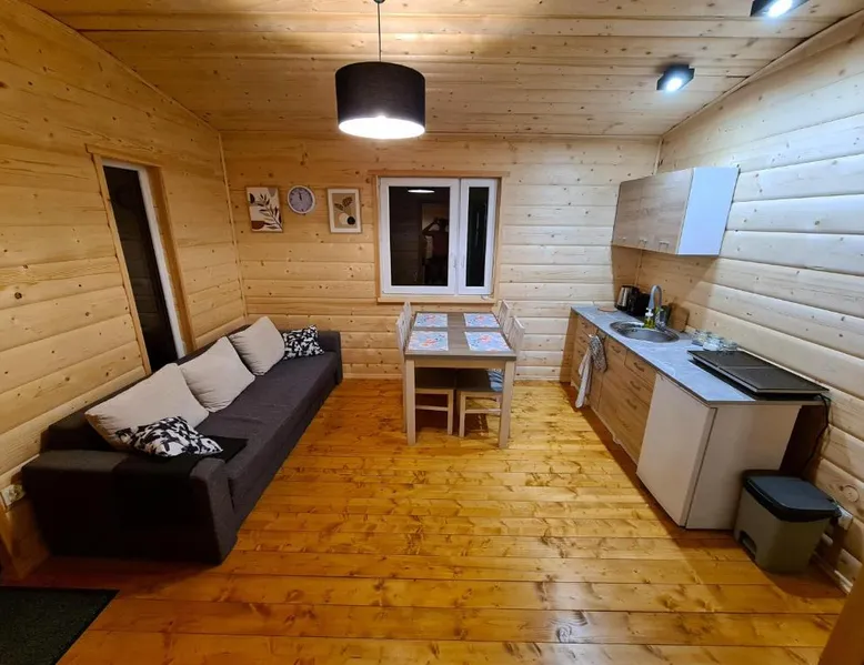 Accommodations Features: DOMKI We MGLE - Borsk in Borsk offers a holiday home with a private beach area, garden, terrace, and free WiFi. The property includes family rooms, a children's playground, and barbecue facilities. Amenities and Services: Guests enjoy private check-in and check-out, an outdoor fireplace, menus for special diets, and free on-site private parking. Additional amenities include air-conditioning, a kitchenette, and a private bathroom. Local Attractions: Located 47 mi from Gdańsk Lech Wałęsa Airport, the property is near Kaszuby Ethnographic Park (14 mi), Bory Tucholskie National Park (20 mi), Upside-down house (28 mi), and Teutonic Fortress (30 mi). Activities include skiing, bike tours, hiking, and cycling. Guest Highlights: Guests appreciate the lakes, quietness of the area, and the location of the property. Featuring a private entrance, this air-conditioned holiday home is consisted of of 1 living room, 1 separate bedroom and 1 bathroom with a shower. Guests will find a stovetop, a refrigerator and kitchenware in the kitchen. The holiday home also has a barbecue. Boasting a terrace with lake views, this holiday home also offers an electric kettle and a flat-screen TV. The unit offers 2 beds.