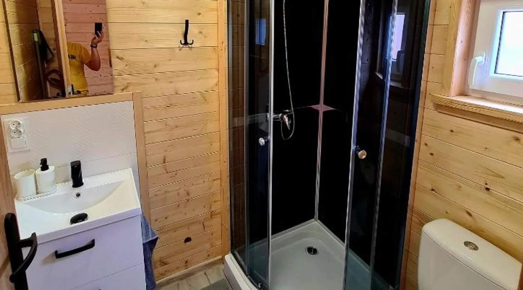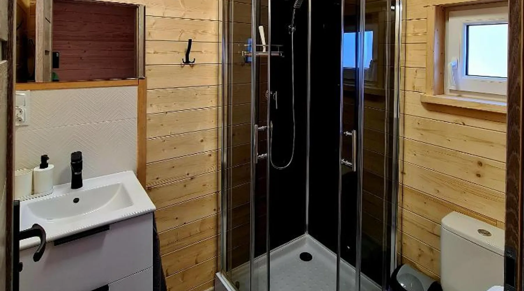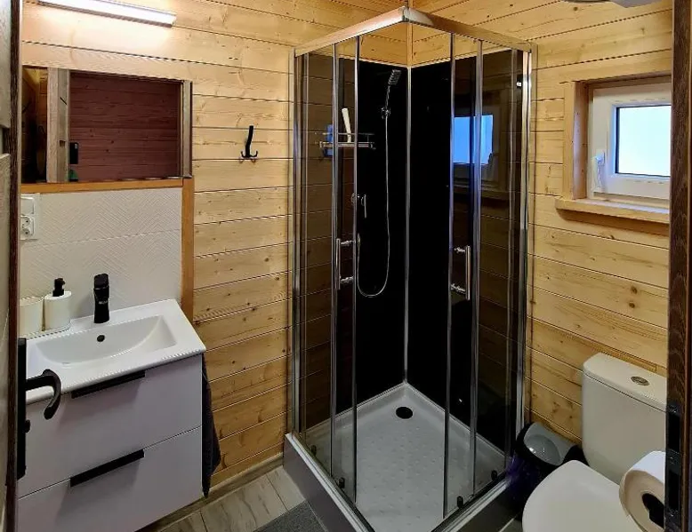 Accommodations Features: DOMKI We MGLE - Borsk in Borsk offers a holiday home with a private beach area, garden, terrace, and free WiFi. The property includes family rooms, a children's playground, and barbecue facilities. Amenities and Services: Guests enjoy private check-in and check-out, an outdoor fireplace, menus for special diets, and free on-site private parking. Additional amenities include air-conditioning, a kitchenette, and a private bathroom. Local Attractions: Located 47 mi from Gdańsk Lech Wałęsa Airport, the property is near Kaszuby Ethnographic Park (14 mi), Bory Tucholskie National Park (20 mi), Upside-down house (28 mi), and Teutonic Fortress (30 mi). Activities include skiing, bike tours, hiking, and cycling. Guest Highlights: Guests appreciate the lakes, quietness of the area, and the location of the property. Featuring a private entrance, this air-conditioned holiday home is consisted of of 1 living room, 1 separate bedroom and 1 bathroom with a shower. Guests will find a stovetop, a refrigerator and kitchenware in the kitchen. The holiday home also has a barbecue. Boasting a terrace with lake views, this holiday home also offers an electric kettle and a flat-screen TV. The unit offers 2 beds.