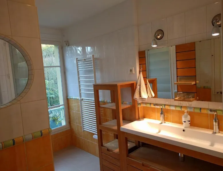 Comfortable Accommodations: L'Orée de Versailles in Versailles offers a spacious apartment with a terrace and free WiFi. Family rooms and a private bathroom ensure a pleasant stay. Modern Amenities: The apartment features a kitchenette, private bathroom, and a dining area. Additional amenities include a barbecue, tea and coffee maker, and garden views. Convenient Location: Located 14 mi from Paris Orly Airport, the property is near attractions such as Domaine of Madame Elisabeth (1.2 mi) and Versailles Chantiers (0.9 mi). Free off-site parking is available. Guest Satisfaction: Highly rated by guests, the host is praised for their excellent service. Featuring a private entrance, this apartment is consisted of of 1 living room, 1 separate bedroom and 1 bathroom with a bath and a hairdryer. Guests will find a stovetop, a refrigerator, kitchenware and an oven in the kitchen. The apartment also has a barbecue. Boasting a terrace with garden views, this apartment also offers soundproof walls and a flat-screen TV. The unit offers 2 beds.