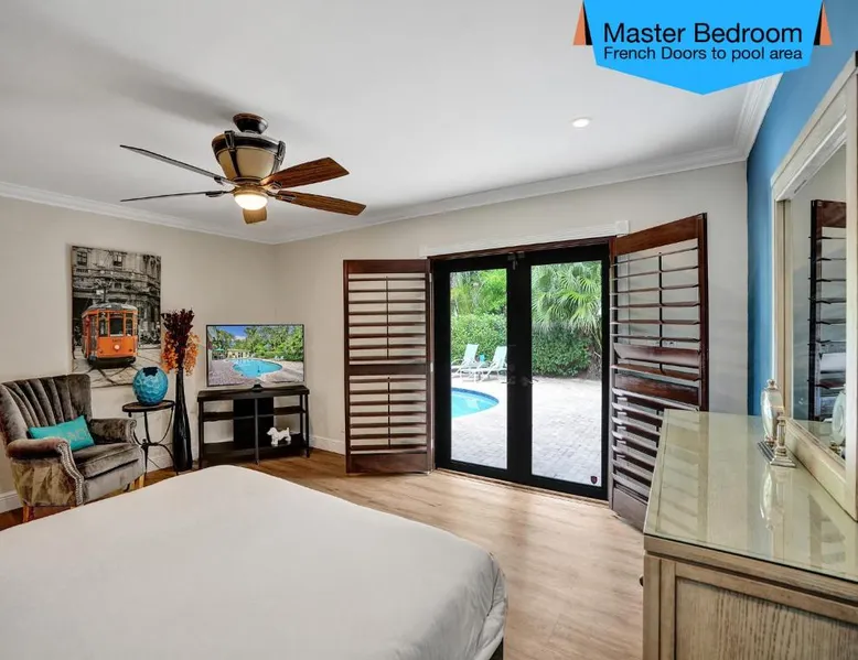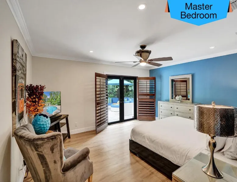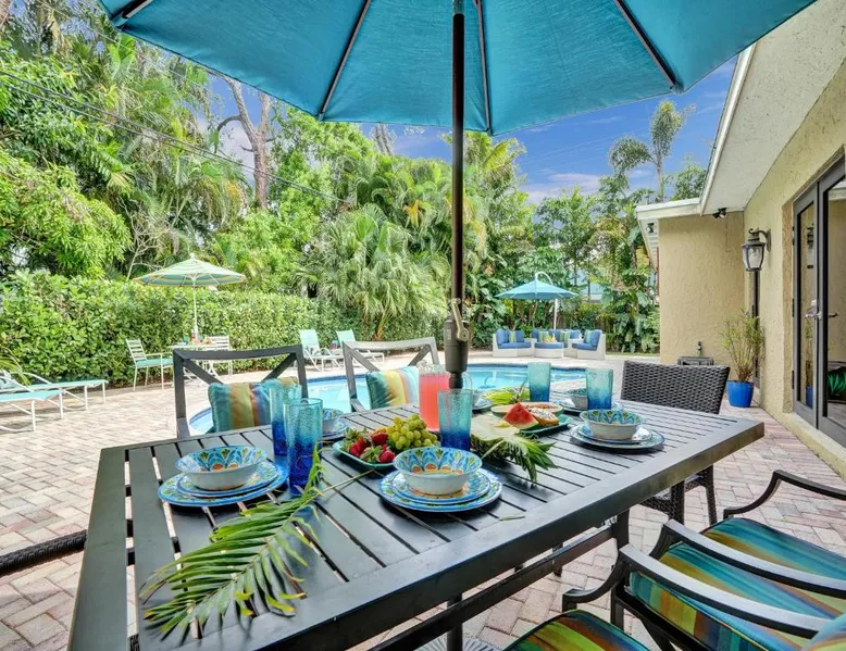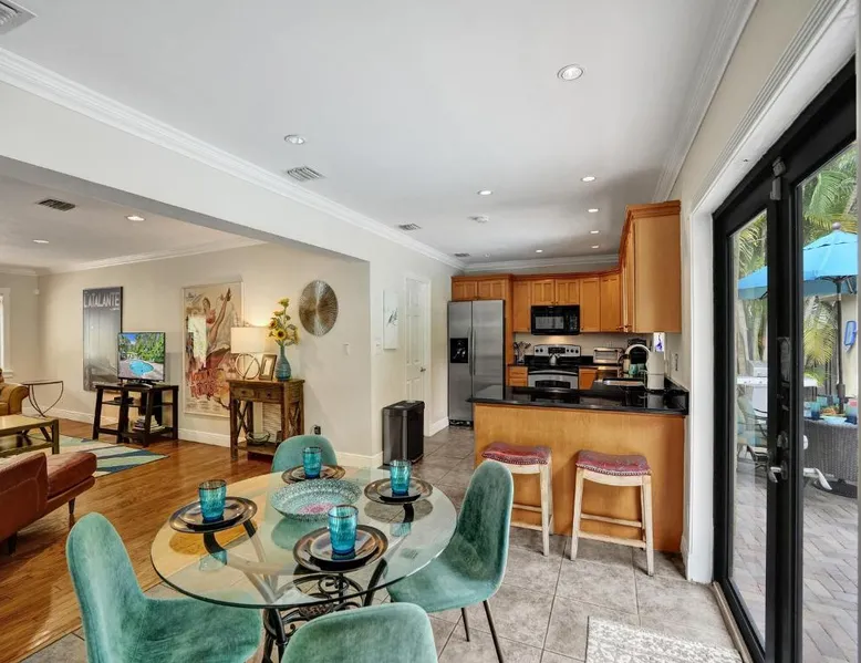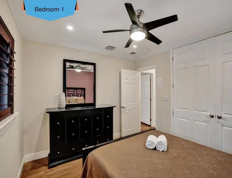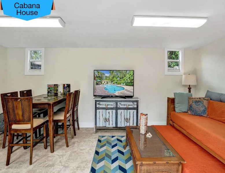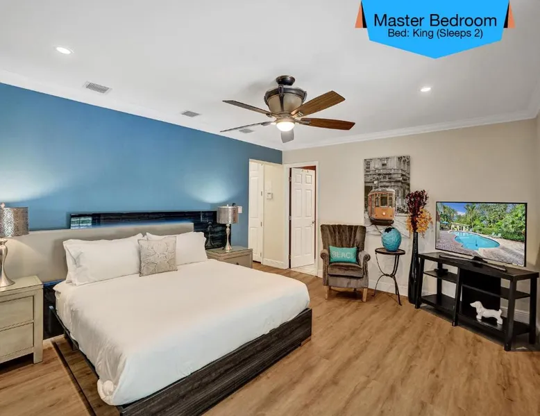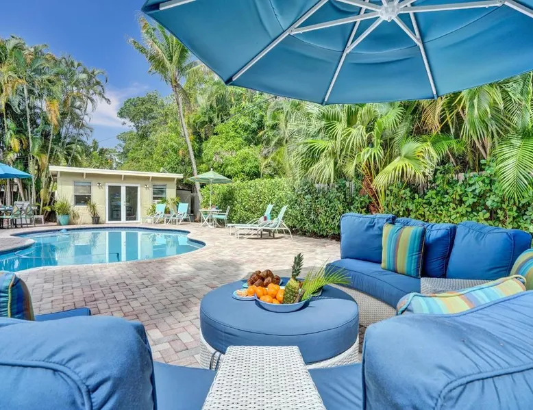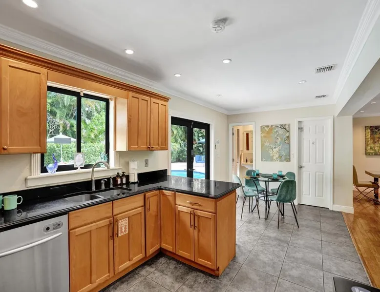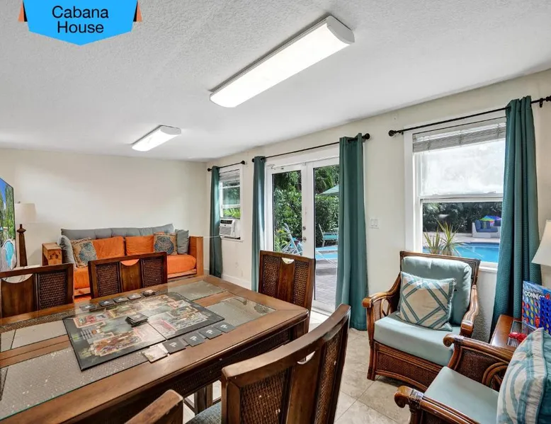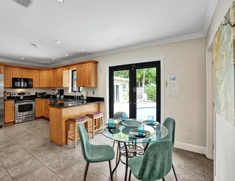 Comfortable Accommodations: Vidal Manor in Fort Lauderdale offers a holiday home with five bedrooms and three bathrooms. The property features a spacious living room and family rooms, ensuring a pleasant stay for all guests. Outdoor Amenities: Guests can enjoy a year-round outdoor swimming pool and a private pool. The outdoor areas include a patio, dining area, and furniture, providing ample space for relaxation and entertainment. Modern Facilities: The holiday home provides free WiFi, air-conditioning, and a washing machine. Additional amenities include a fully equipped kitchen, barbecue, and free on-site private parking. Nearby Attractions: Located 9.3 mi from Fort Lauderdale-Hollywood International Airport, Vidal Manor is close to The Galleria At Fort Lauderdale Shopping Center (2.7 mi) and Las Olas Boulevard (3.7 mi). Other attractions include Broward Center for the Performing Arts and Fort Lauderdale Beach Park. The private pool is the special feature of this holiday home. This air-conditioned holiday home consists of 1 living room, 5 separate bedrooms and 3 bathrooms with a bath or a shower. Guests will find a stovetop, a refrigerator, a dishwasher and kitchenware in the well-fitted kitchen. The holiday home also provides guests with a barbecue. The holiday home provides a washing machine, a coffee machine, a seating area, a TV with cable channels, as well as pool views. The unit offers 7 beds.