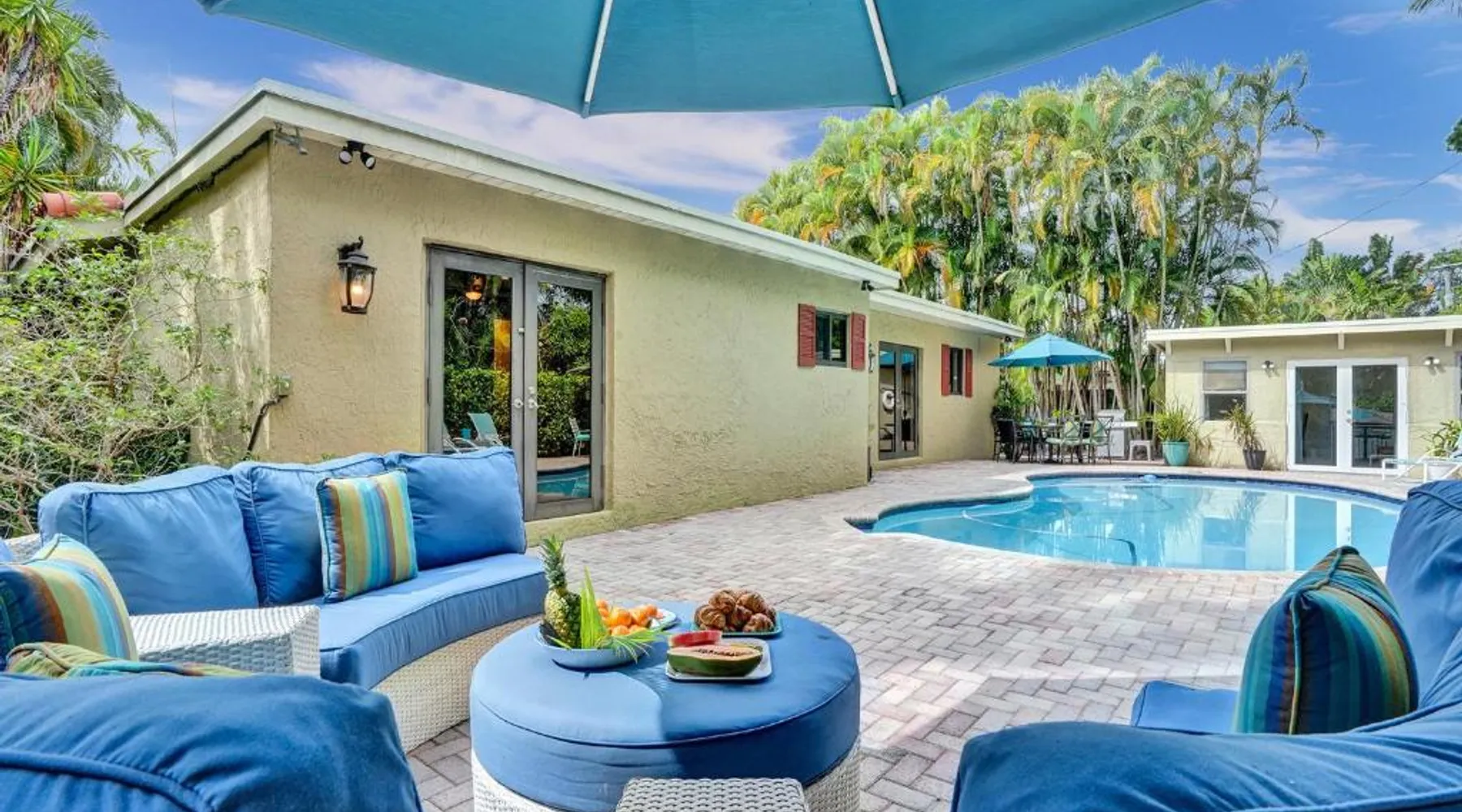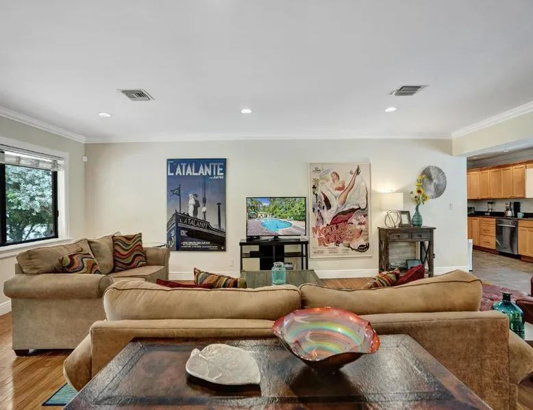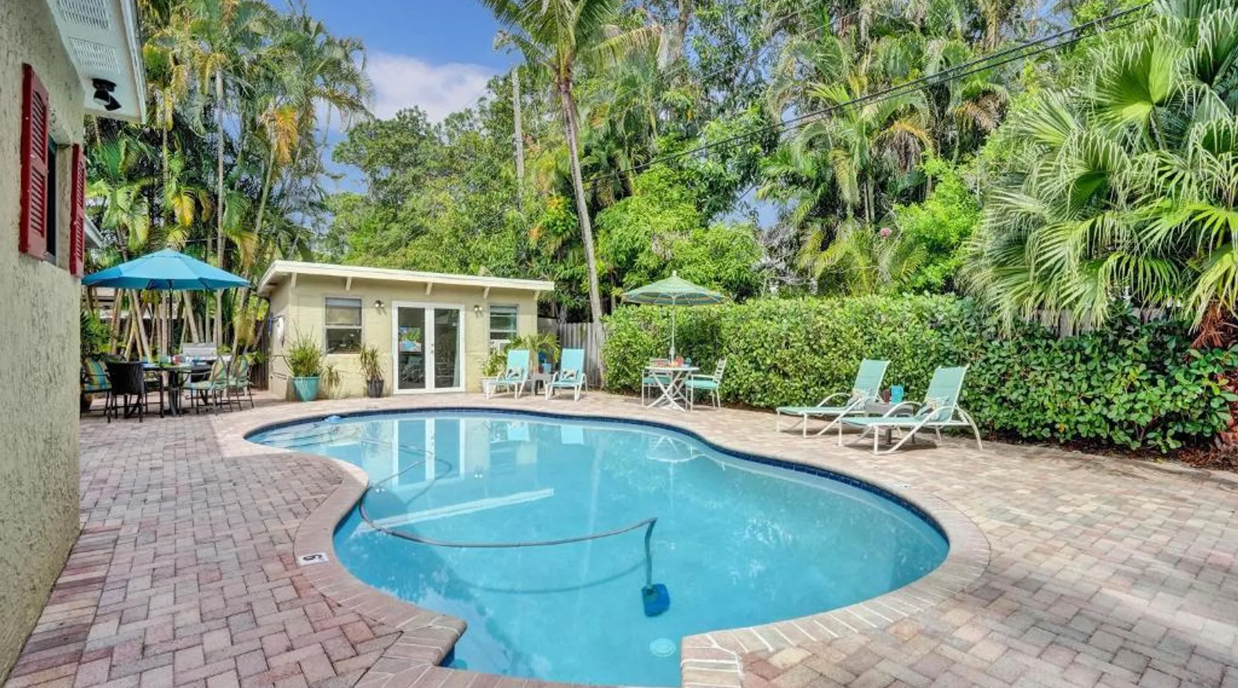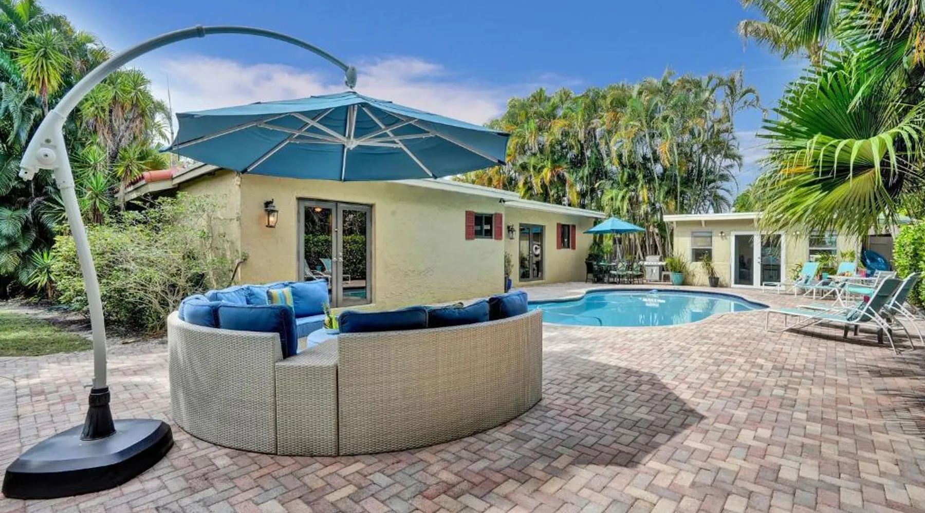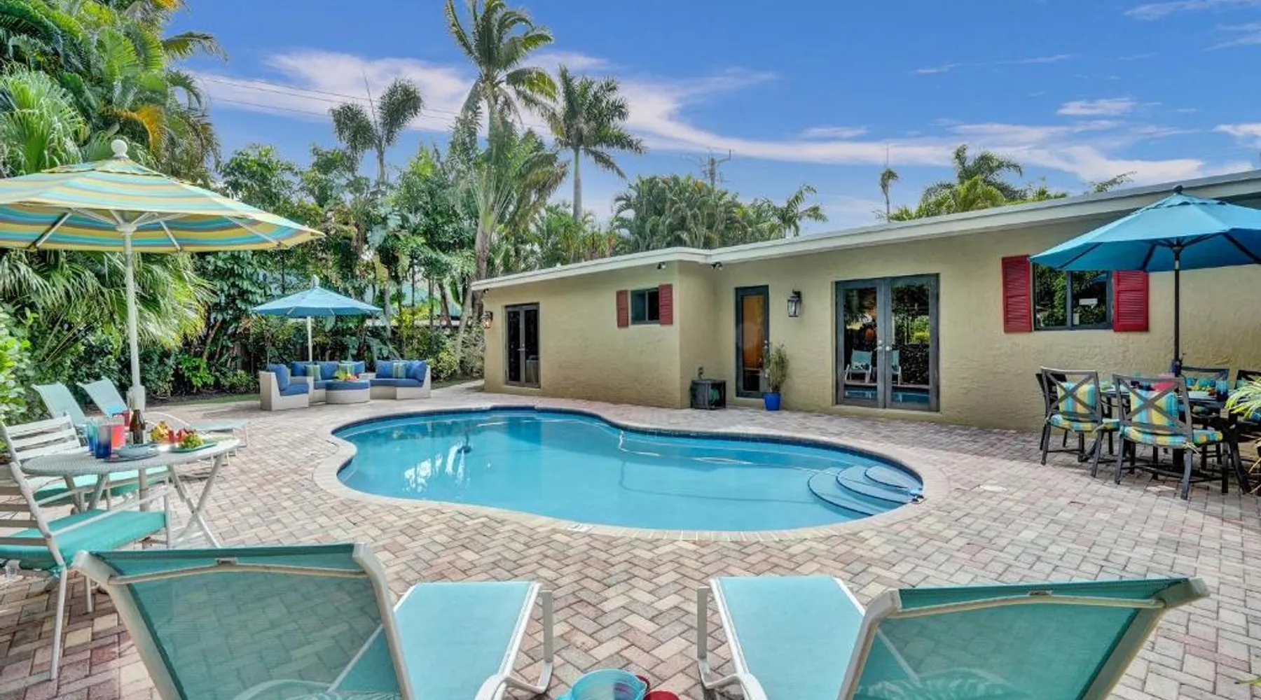 Comfortable Accommodations: Vidal Manor in Fort Lauderdale offers a holiday home with five bedrooms and three bathrooms. The property features a spacious living room and family rooms, ensuring a pleasant stay for all guests. Outdoor Amenities: Guests can enjoy a year-round outdoor swimming pool and a private pool. The outdoor areas include a patio, dining area, and furniture, providing ample space for relaxation and entertainment. Modern Facilities: The holiday home provides free WiFi, air-conditioning, and a washing machine. Additional amenities include a fully equipped kitchen, barbecue, and free on-site private parking. Nearby Attractions: Located 9.3 mi from Fort Lauderdale-Hollywood International Airport, Vidal Manor is close to The Galleria At Fort Lauderdale Shopping Center (2.7 mi) and Las Olas Boulevard (3.7 mi). Other attractions include Broward Center for the Performing Arts and Fort Lauderdale Beach Park. The private pool is the special feature of this holiday home. This air-conditioned holiday home consists of 1 living room, 5 separate bedrooms and 3 bathrooms with a bath or a shower. Guests will find a stovetop, a refrigerator, a dishwasher and kitchenware in the well-fitted kitchen. The holiday home also provides guests with a barbecue. The holiday home provides a washing machine, a coffee machine, a seating area, a TV with cable channels, as well as pool views. The unit offers 7 beds.