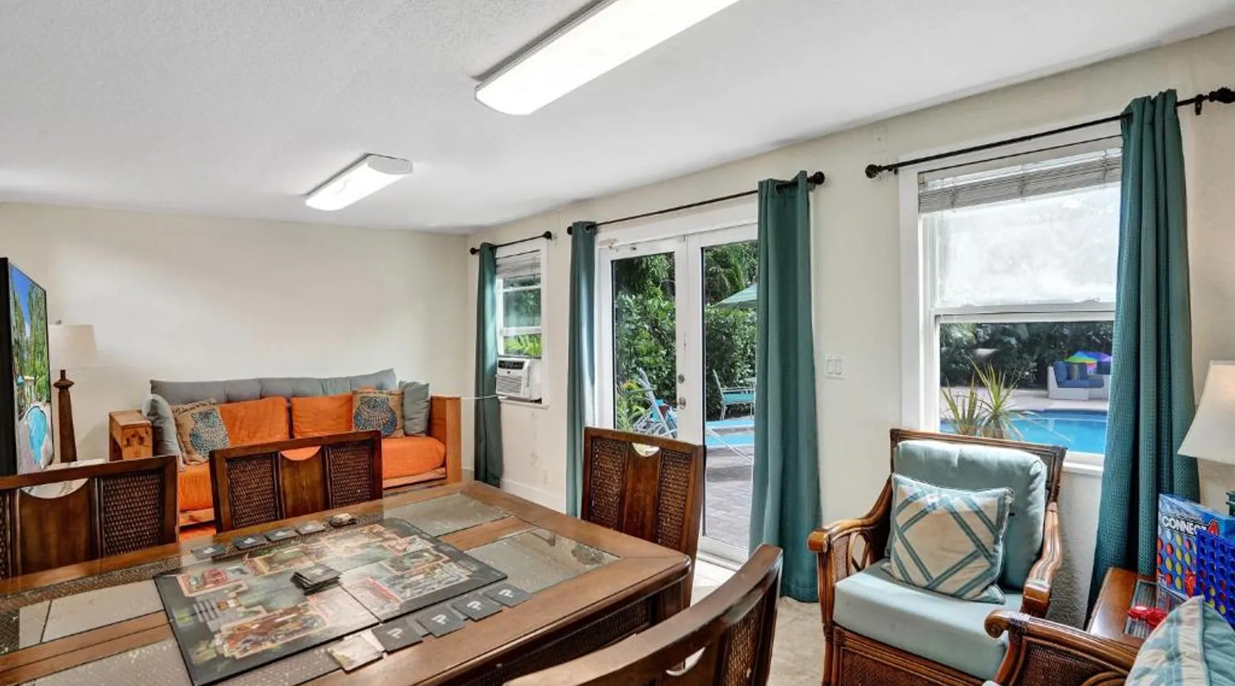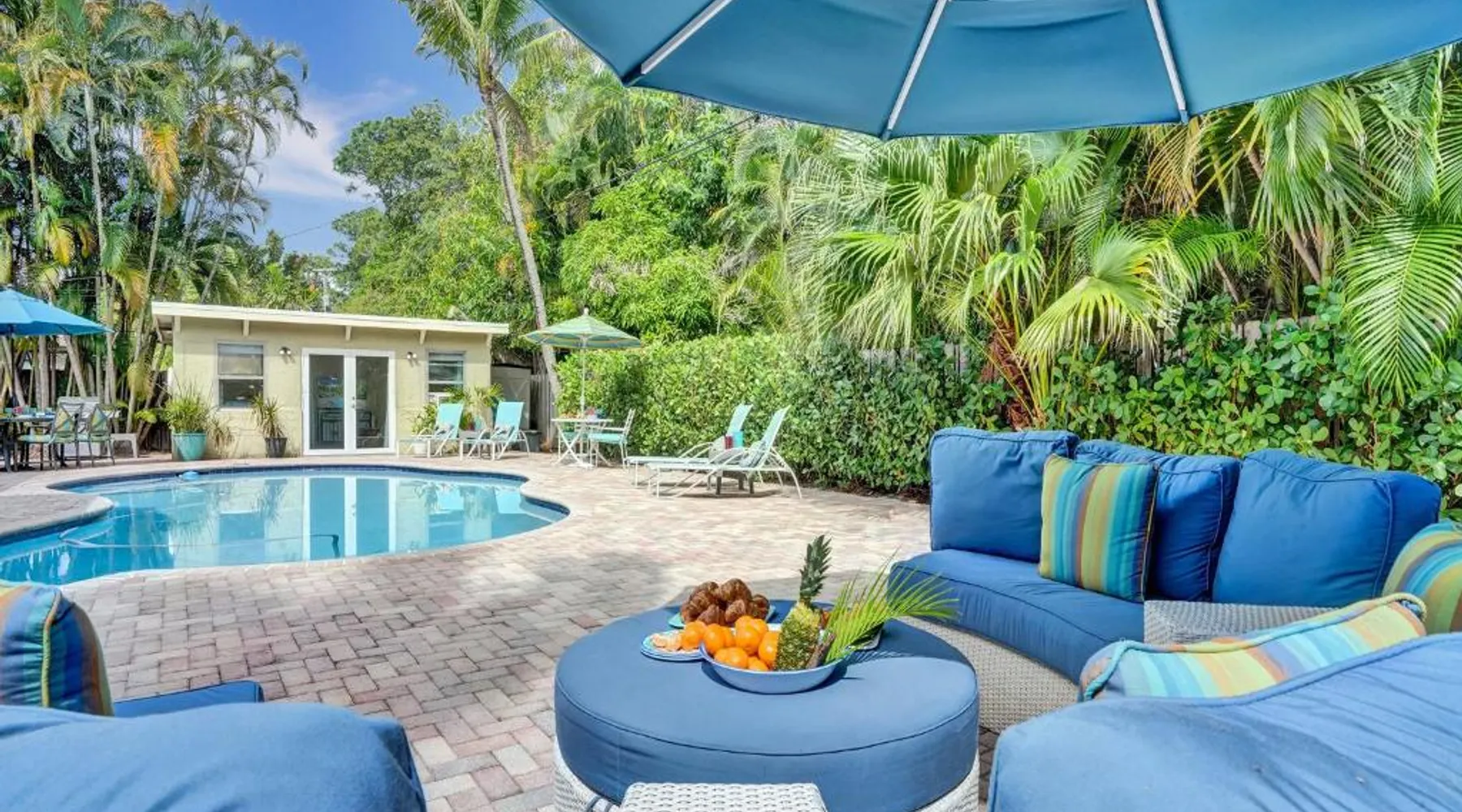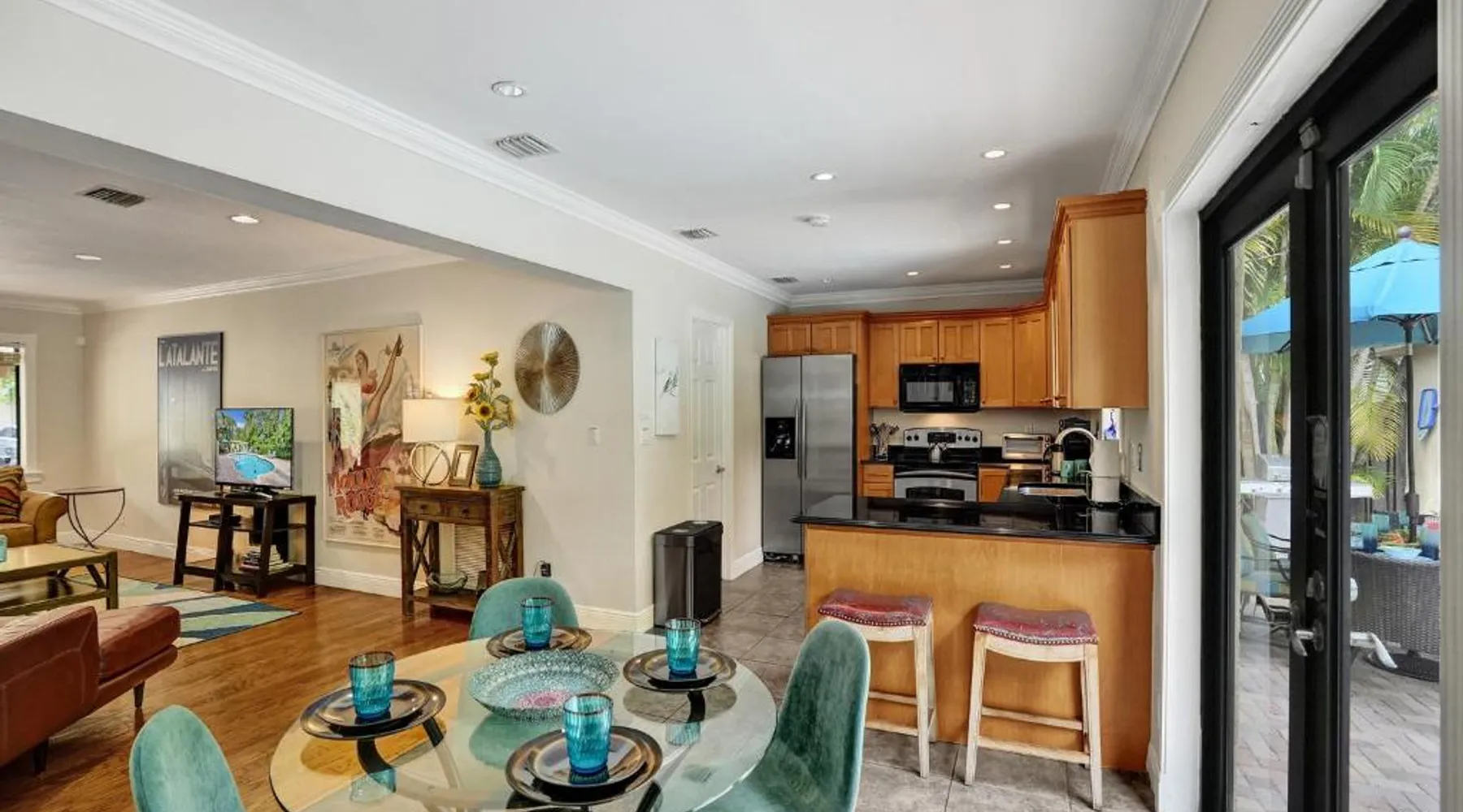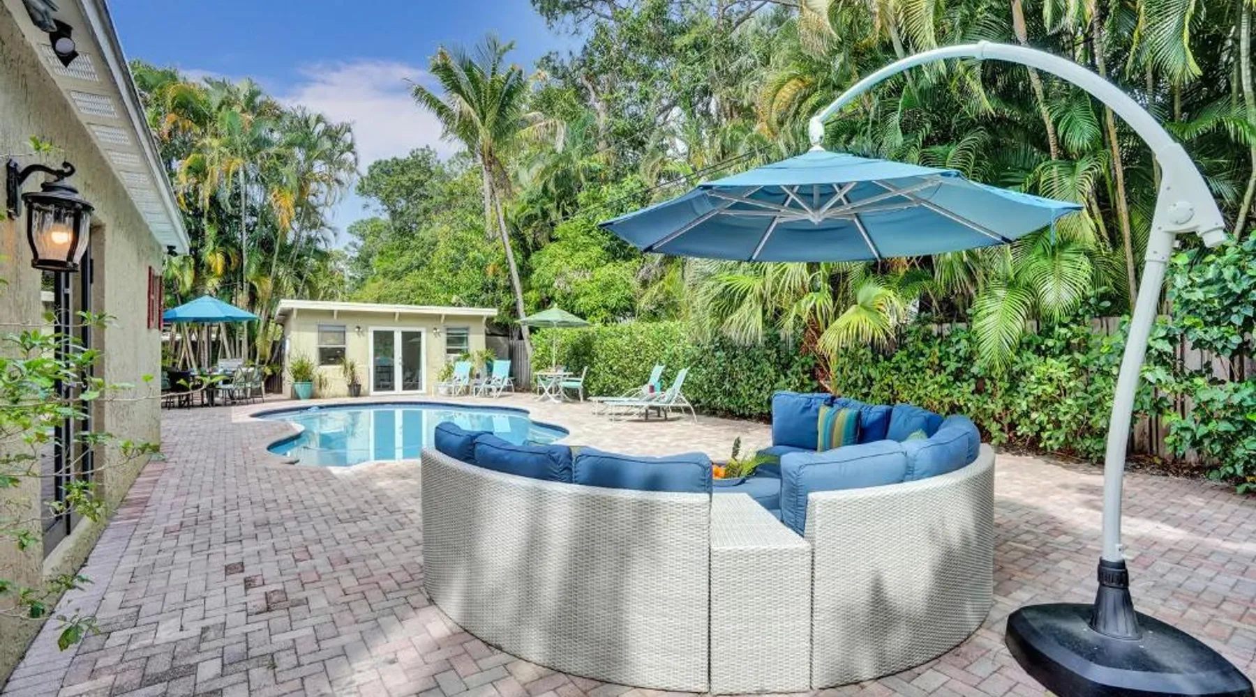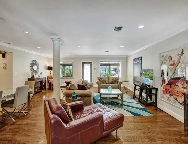 Comfortable Accommodations: Vidal Manor in Fort Lauderdale offers a holiday home with five bedrooms and three bathrooms. The property features a spacious living room and family rooms, ensuring a pleasant stay for all guests. Outdoor Amenities: Guests can enjoy a year-round outdoor swimming pool and a private pool. The outdoor areas include a patio, dining area, and furniture, providing ample space for relaxation and entertainment. Modern Facilities: The holiday home provides free WiFi, air-conditioning, and a washing machine. Additional amenities include a fully equipped kitchen, barbecue, and free on-site private parking. Nearby Attractions: Located 9.3 mi from Fort Lauderdale-Hollywood International Airport, Vidal Manor is close to The Galleria At Fort Lauderdale Shopping Center (2.7 mi) and Las Olas Boulevard (3.7 mi). Other attractions include Broward Center for the Performing Arts and Fort Lauderdale Beach Park. The private pool is the special feature of this holiday home. This air-conditioned holiday home consists of 1 living room, 5 separate bedrooms and 3 bathrooms with a bath or a shower. Guests will find a stovetop, a refrigerator, a dishwasher and kitchenware in the well-fitted kitchen. The holiday home also provides guests with a barbecue. The holiday home provides a washing machine, a coffee machine, a seating area, a TV with cable channels, as well as pool views. The unit offers 7 beds.