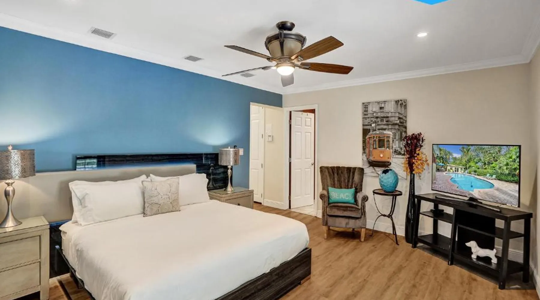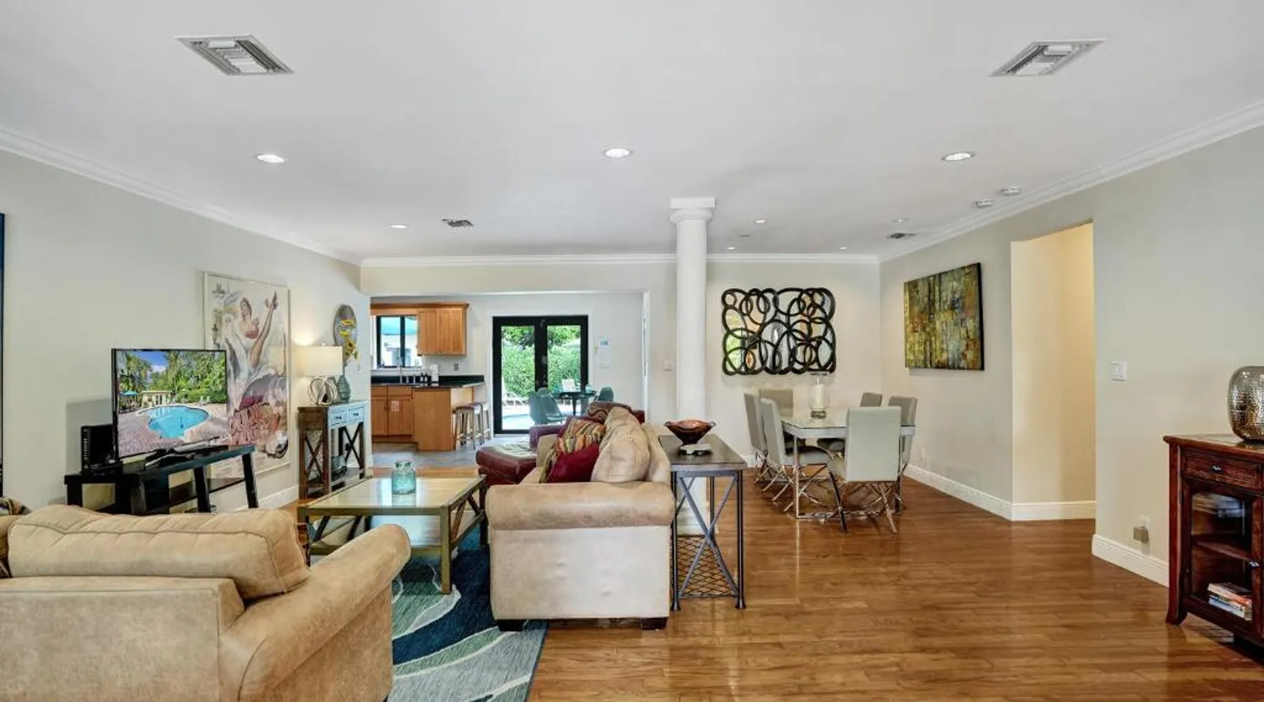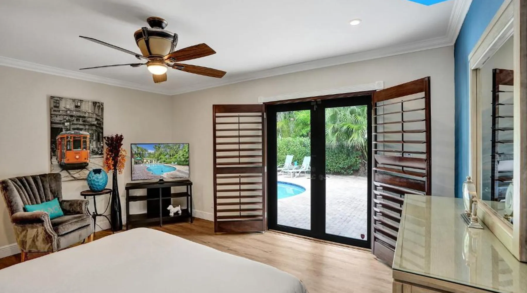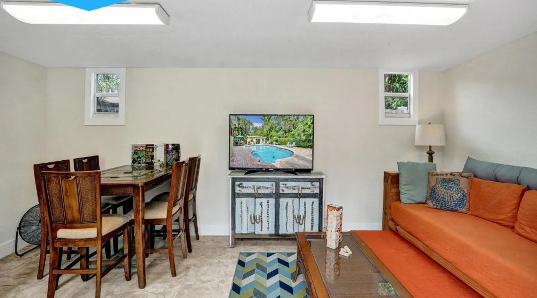 Comfortable Accommodations: Vidal Manor in Fort Lauderdale offers a holiday home with five bedrooms and three bathrooms. The property features a spacious living room and family rooms, ensuring a pleasant stay for all guests. Outdoor Amenities: Guests can enjoy a year-round outdoor swimming pool and a private pool. The outdoor areas include a patio, dining area, and furniture, providing ample space for relaxation and entertainment. Modern Facilities: The holiday home provides free WiFi, air-conditioning, and a washing machine. Additional amenities include a fully equipped kitchen, barbecue, and free on-site private parking. Nearby Attractions: Located 9.3 mi from Fort Lauderdale-Hollywood International Airport, Vidal Manor is close to The Galleria At Fort Lauderdale Shopping Center (2.7 mi) and Las Olas Boulevard (3.7 mi). Other attractions include Broward Center for the Performing Arts and Fort Lauderdale Beach Park. The private pool is the special feature of this holiday home. This air-conditioned holiday home consists of 1 living room, 5 separate bedrooms and 3 bathrooms with a bath or a shower. Guests will find a stovetop, a refrigerator, a dishwasher and kitchenware in the well-fitted kitchen. The holiday home also provides guests with a barbecue. The holiday home provides a washing machine, a coffee machine, a seating area, a TV with cable channels, as well as pool views. The unit offers 7 beds.