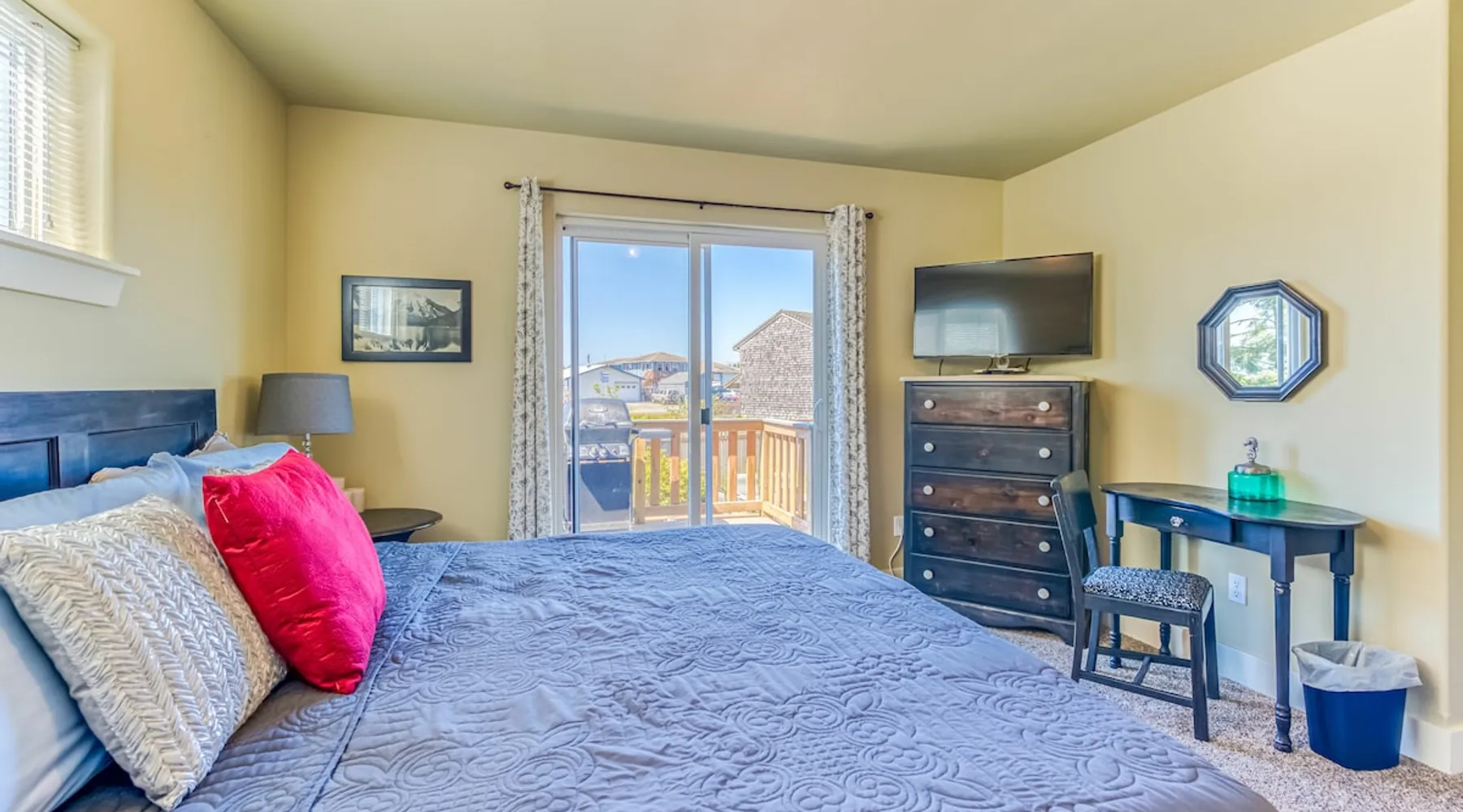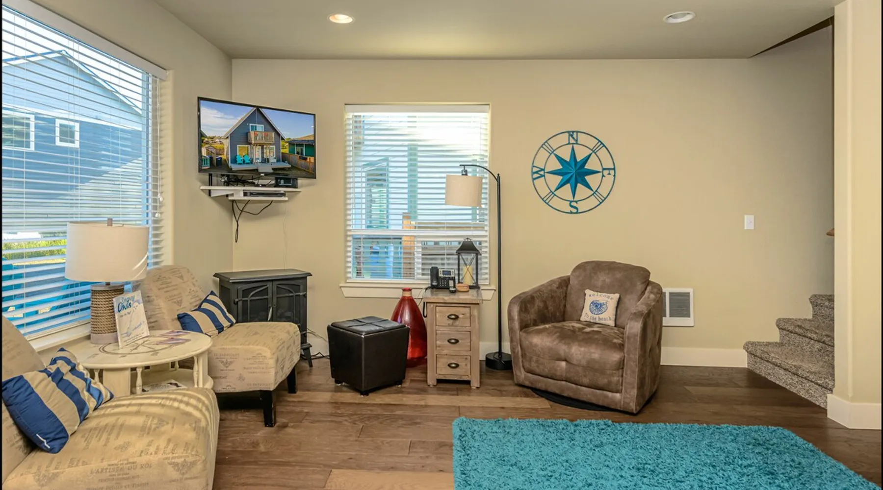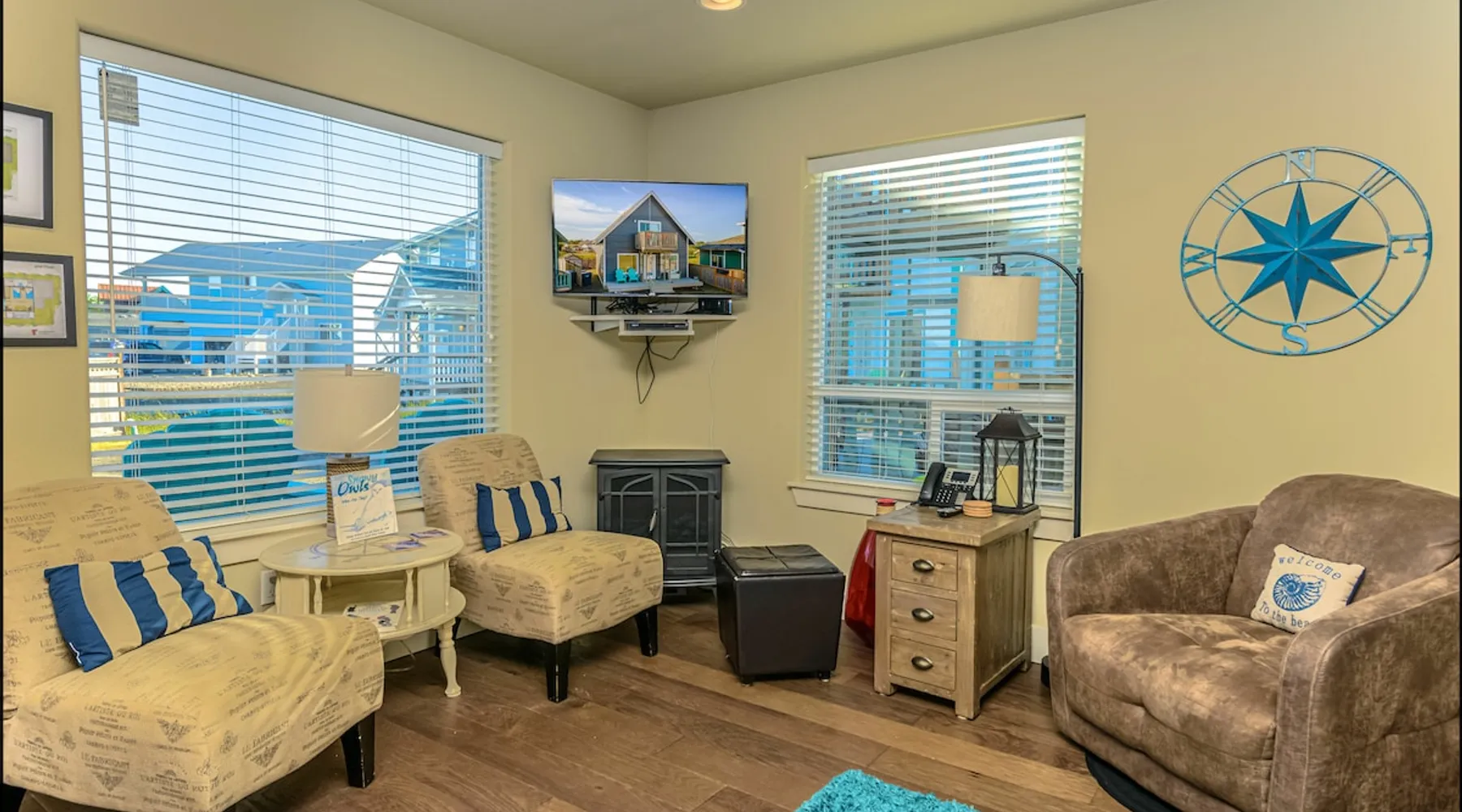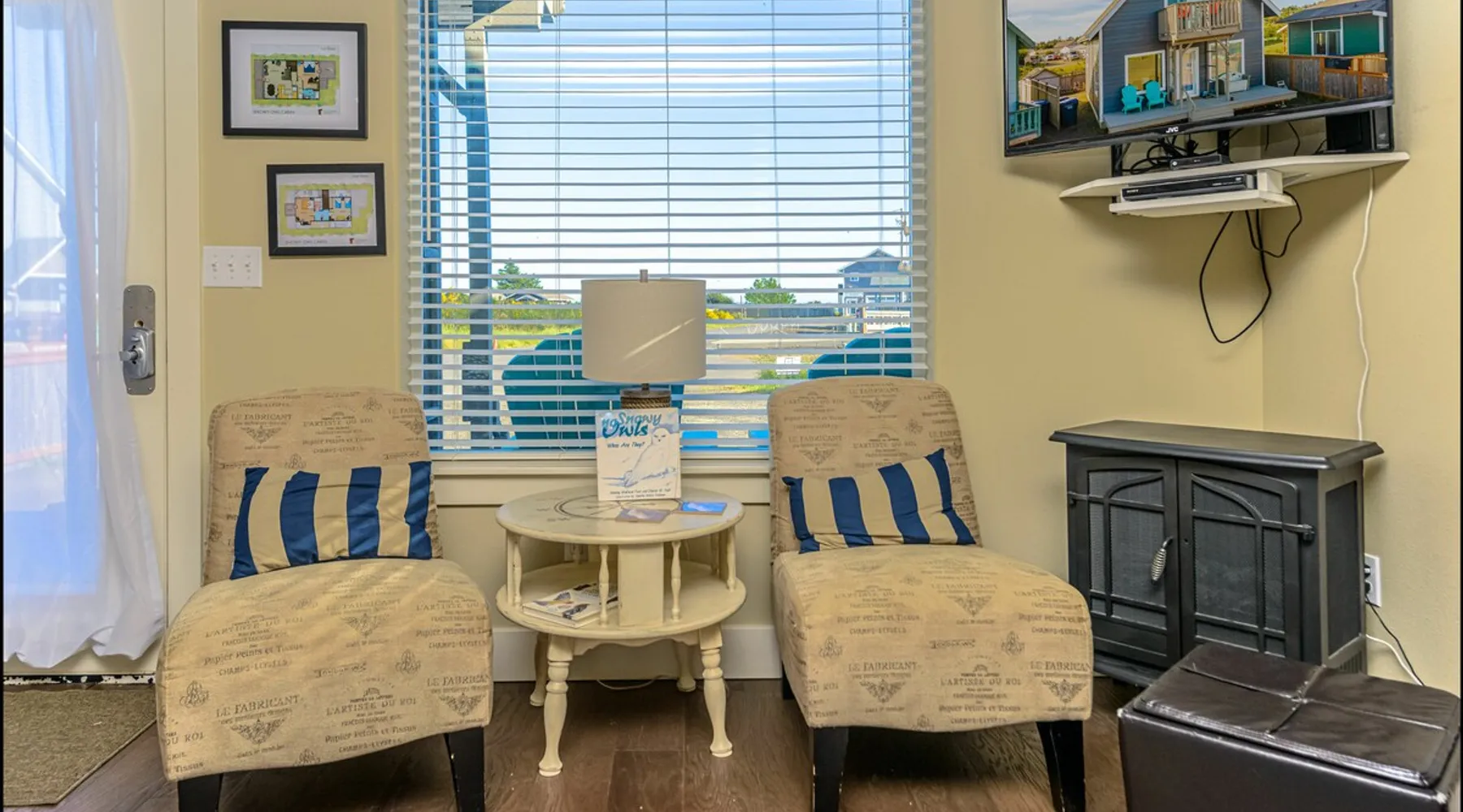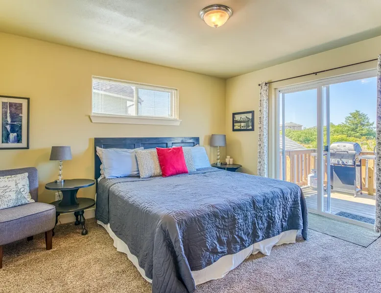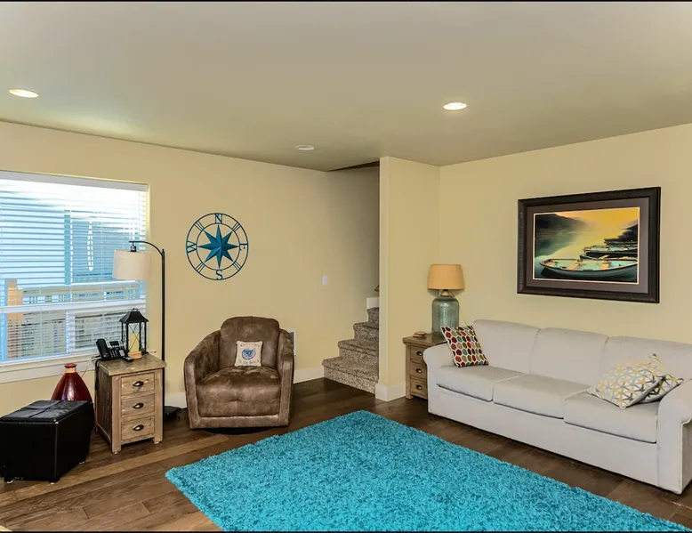HAVE A HOOT AT SNOWY OWL CABIN These owls are native to the Arctic but in recent years have been visiting our area, a welcome visitor. Just a block from the Beach, Snowy Owl Cabin is the perfect getaway to enjoy the ocean up close and personal. Enjoy your morning coffee from the upstairs deck, as you watch the surf roll in. This cozy cabin offers plenty of room for you and your family or friends. The inviting living room features a comfy couch, chairs, plenty of pillows and a flat-screen television for enjoying movies, as well as an electric fireplace to warm you up on cooler evenings. Wi-Fi and cable are provided along with lots of games and books for your enjoyment. The kitchen has all you need to whip up a great meal, with pots, pans and plenty of dinner and silverware. Gather round the dining table and enjoy a real family dinner with seating for up to six people. Downstairs, the master bedroom has a king-sized bed, its own patio and access to the terraced yard. Upstairs, there are two bedrooms, one with a queen bed with an upper deck, and one with a bunk bed with a twin on top and full-sized bed on the bottom. Two full bathrooms ensure plenty of time for everyone to wash off the day's sand. And surf. Plenty of towels and comfortable bed linens are provided. In the backyard, you'll find a fire pit for enjoying cool evenings, along with a barbeque grill and plenty of seating. THE OCEAN SHORES AREA When booking with any of our properties in Ocean Shores, you will have endless options for seaside activities. Visiting during the warm weather? Get ready for clamming season! Rent a moped or bike and take a ride into town where you'll find the main drag. Here you'll find locally hand crafted meals served in the town's restaurants as well as boutiques filled with souvenirs to take home! The warmer days also mean horseback riding along the beach or whale watching tours, all within a short distance of all of our units. Want to head to the beach during Winter too? The views are just as beautiful and it's still a great getaway from your everyday life. The main drag is still just as active with bowling alleys, shops and galleries to keep you busy. THE BY THE SEA PROMISE Here at By the Sea, we vow to make booking with us simple and exciting. We know that booking a rental property home for your vacation can be unfamiliar territory for some, while others know their way around it. Because we know this, we ensure that each of our properties are up to high quality standards. We do our absolute best to provide support to our guests when booking. We are available to assist you every day of the year if you have any questions or concerns before, during or after your visit to our home. We have onsite property management that is available 24/7 for anything concerning that may arise. MANAGED: This well managed property needs good behavior and adherence to instructions, rules, terms, conditions, and requires online registration and electronic signature before final booking, or you may cancel before proceeding at that time. Phones open 7am to 9pm everyday. For security, there may be outwardly facing security cameras, capable of constant recording but may not be activated depending on security company.