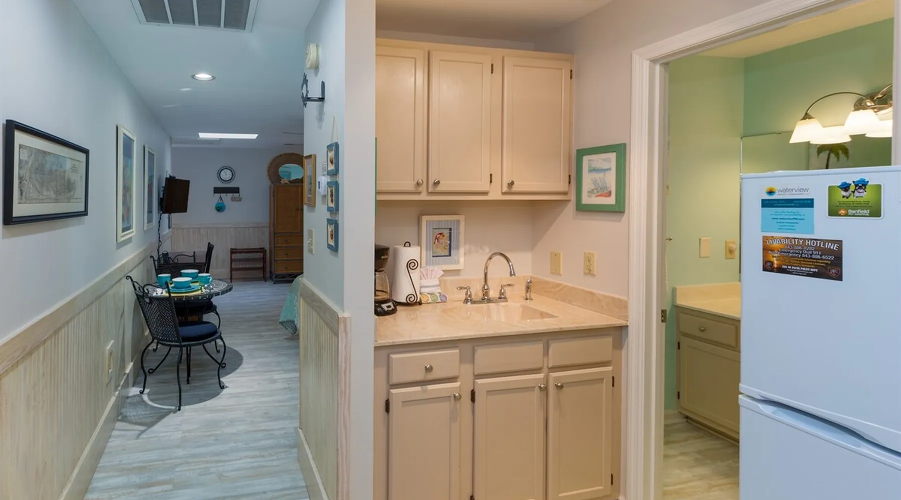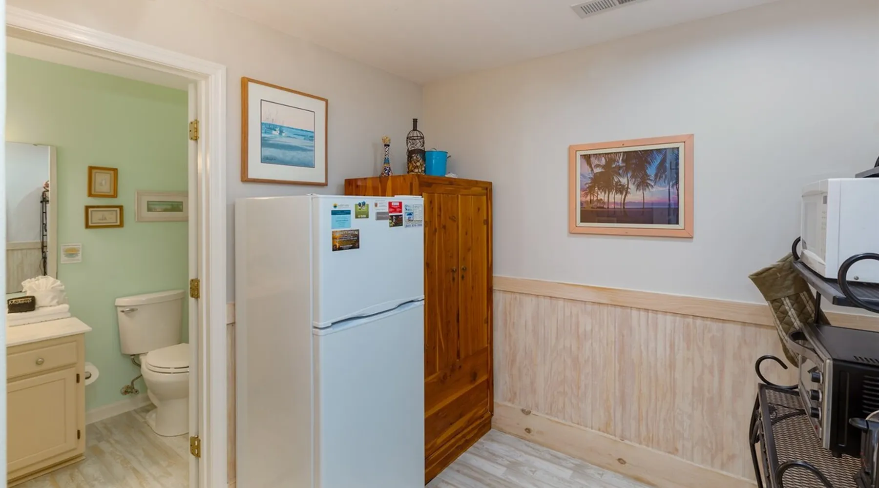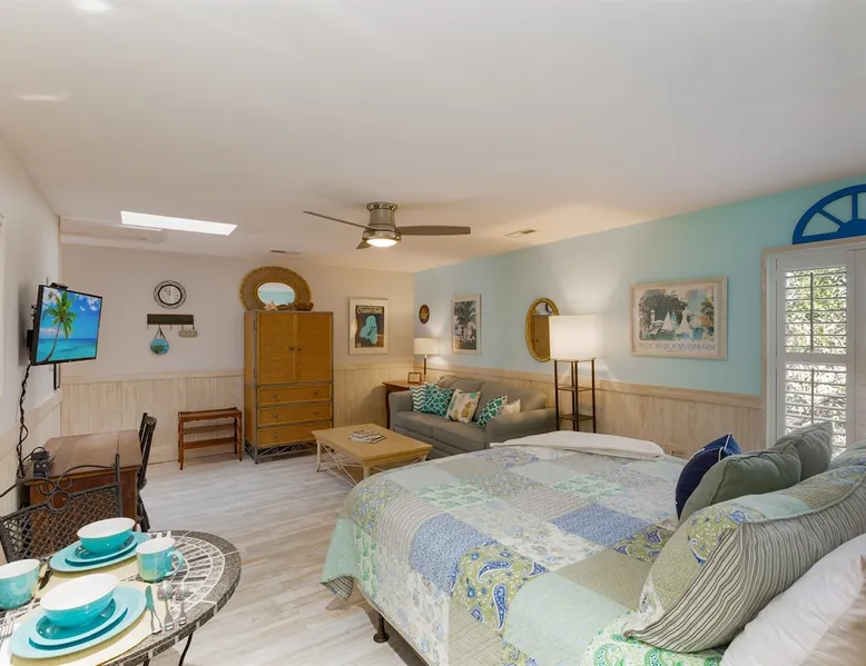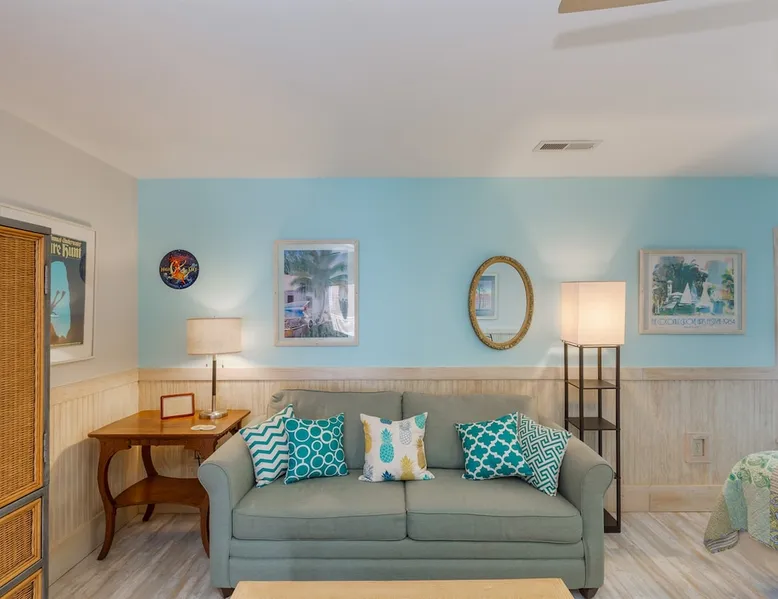 Privately owned STUDIO at The Ocean Inn, located a block from the beach, wonderfully maintained and nicely decorated. Open room with K bed,Q sofa-bed, kitchenette w/ essentials. Full bath with shower. This retreat is well loved by guests from all over! You can tell by the different destination decals on the creative entryway wall. (Please bring a decal from your home town to add to it!) Pet-friendly, fees adjusted according to weight. Min number of nights required. IOP Permit P-00375 3/18/25 The space High Life at the IOP! This privately owned STUDIO condo is wonderfully decorated and immaculately maintained. There is a king bed, sitting area with sofa, and eating space in the main room with an adjoining kitchen area and full bath. Provided in this small but serviceable kitchen is a large toaster oven, regular toaster, microwave, refrigerator, drip coffee maker, and single-eye counter-top induction cook-top. The cook-top requires steel-bottomed pans for it to operate and one 2-qt soup pot is provided. Plates, bowls, silverware, coffee cups...also provided. There is no oven/stove combination but there are small appliances to meet the needs of preparing simple meals in your condo. The bathroom has been updated to include tile and glass and has plenty of counter space. You can tell this retreat is well loved by many from all over the country as you read the different destination decals on the creative entryway wall. (Please bring a decal from your home town to add to it!) Even though this condo is located on the back side of the Ocean Inn condominium complex, you can still hear the waves off the beach at night. Free parking onsite. Coin laundry facilities, two grill areas and small private pool for use by guests of our complex. It's a 5-min walk to the beach and some of the best restaurants on the Island. Close to the Isle of Palms Connector so it's a quick trip to Mt Pleasant or 25 minutes to downtown Charleston. Guest access Guests will receive email from Dreams N Druthers 7 days before arrival with specific instructions for entry. Parking passes are required and are also sent by email. Check in is 4pm, check out is 10am. Because there are always maintenance needs in our properties, check in times are not always flexible regardless of availability on the previous nights of arrival. If by chance the property is ready early, you will receive a text either the day before or the day of arrival. We do try to allow early access when we can. Other things to note ** COMMUNICATION: as an integrated partner on this booking site, please be aware that all future communications will come from Dreams N Druthers. Please be on the lookout. ** E-SIGNATURE CONTRACT: In addition to any contract you may have signed through an integrated partner (such as AIRBNB/VRBO). We require our own E-Signed contract to complete your booking. This allows us to include additional details we are unable to elsewhere. PLEASE NOTE THESE ANSWERS TO FREQUENTLY-ASKED QUESTIONS: **MINIMUM BOOKING AGE is 25. The person holding the reservation must be staying at the property. No 3rd party booking is allowed. **PRE-APPROVAL OF PETS REQUIRED Pets (DOGS ONLY) are allowed ONLY IN SELECT PROPERTIES. Breed/weight restrictions are applicable. PET FEES are $25/pet per night. DISCOUNT ON PET FEES AVAILABLE FOR SEASONAL RENTALS. PET POLICY Guests are responsible for adhering to pet policies provided in the contract as well as all Isle of Palms pet ordinances **MINIMUM NIGHTS Some of our properties have "minimum nights required" to make a reservation on weekends, holidays, and during the summer season. To check availability for a shorter stay, please send a message / inquiry. If it's possible, we'd be happy to accommodate you. ** CONFIRMATION & PAYMENT: Your reservation is confirmed when the initial payment is paid. Payment options are dependent on the cancellation policy and how far away you are booking your stay. For reservations made in advance of 30 days, the remaining balance is due 30 days before arrival. Balances are deducted automatically from the card on file. In the event of payment failure, a grace period of 24 hours is given to remedy the payment. ** ITEMS PROVIDED: Soaps, linens, towels and starter paper products will be in your condo upon arrival. Routine linen and towel exchanges are not provided during your stay. Guests are responsible for replacing their own paper and soap products if starter amounts are used during their stay. It is not necessary to replace these for future guests. **SMOKING All of our properties are NO SMOKING properties. Smoking is allowed outdoors only. Please discard appropriately. Deposit will be forfeited and additional cleaning charges incurred if evidence of smoking indoors is found upon departure. THIS INCLUDES smoking by an open door or window so that smoke enters the condo. Please smoke away from these areas. **NOISE ORDINANCE Guests are responsible for following the Isle of Palms 10PM noise ordinance.