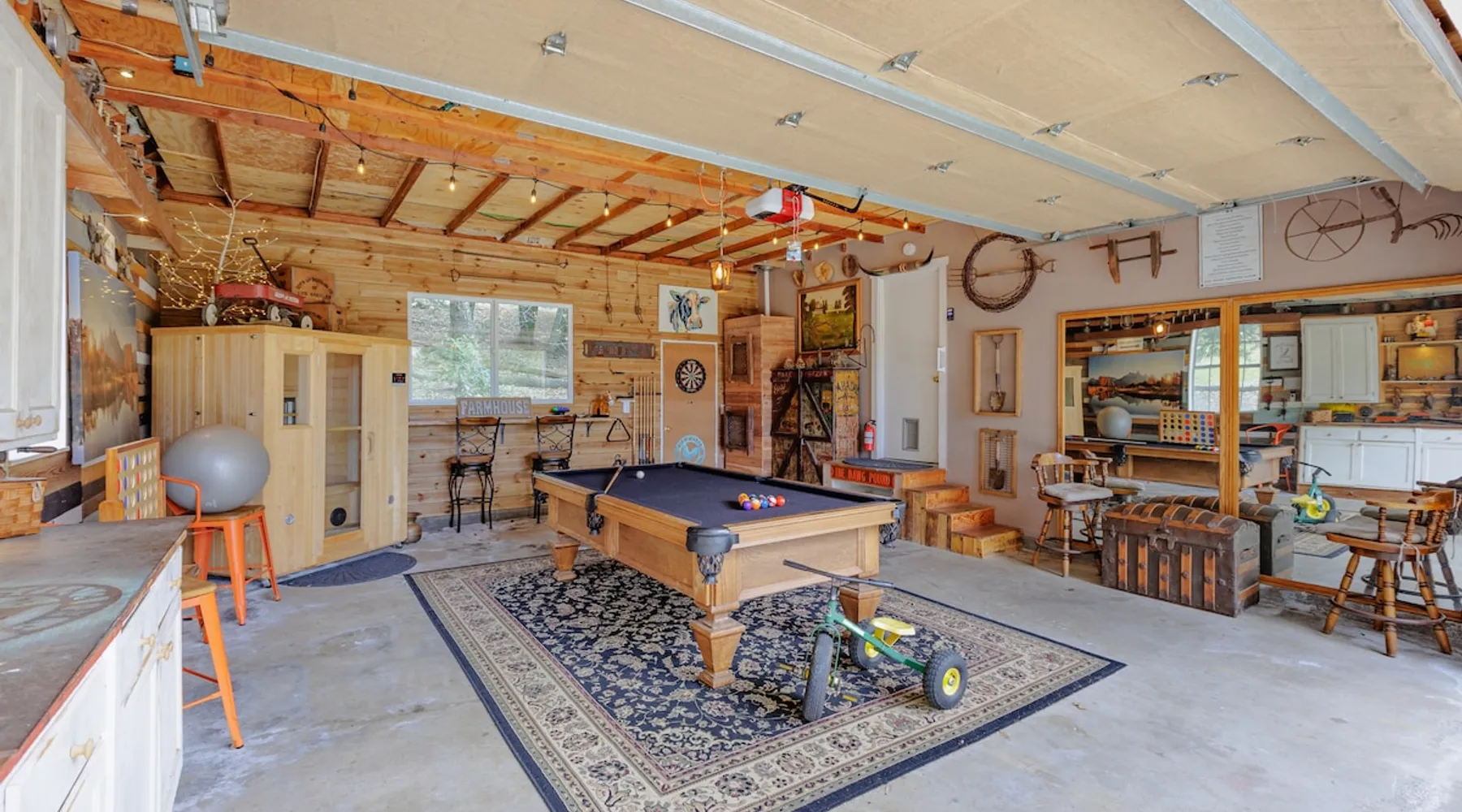 Our home is welcome respite for couples, solo adventurers, business travelers, families (with kids), big groups, retreats, friend and family reunions and furry friends (dogs). The space Welcome to the Julian Farmhouse—a peaceful retreat nestled in two fully fenced acres in the San Diego mountains. This two-story, three-bedroom farmhouse is the perfect blend of rustic charm and modern comfort. Inside, you’ll find a spacious family room anchored by a cozy wood burning fireplace, a welcoming dining room for shared meals, and a farmhouse-style kitchen that makes cooking a joy. Step outside and you’ll discover that the property is just as inviting as the home itself. You can enjoy a glass of wine or hot cup of coffee knowing your dogs will love the freedom to safely run, play, and explore the wide-open grounds, and your family and children can enjoy classic outdoor fun with a tire swing and a game of horseshoes under the open sky. Step into the attached garage and you’ll quickly realize this is so much more than just a place to park the car—it’s a cozy retreat designed for fun, relaxation, and togetherness. Tucked inside, you’ll find a luxurious infrared dry sauna, perfect for unwinding after a day of adventure. Just a few steps away, a pool table invites a friendly game, while a dartboard and a giant Connect Four set promise plenty of laughs and competition for all ages. What makes this space truly special is its seamless connection to the outdoors. The wide garage door rolls open to let in the fresh mountain air, so you can enjoy the scenery while staying sheltered and comfortable—even on a rainy day or during a gentle snowfall. Whether it’s gathering for a spirited game night, savoring the warmth of the sauna, or simply soaking in the peaceful surroundings, this garage transforms into a charming hub of relaxation and entertainment no matter the season. If you are looking for even more room to relax, welcome to The Roost! The Roost is a charming converted barn designed for comfort and fun. Inside, you’ll find ample cozy seating gathered around a warm, wood-burning potbelly stove. Enjoy a game of shuffleboard or poker, browse the library, or pick from a large collection of movies for a relaxing night in. The space is filled with antiques and quirky treasures, offering fun things to discover around every corner, making every visit a delight. We’re just five minutes from downtown Julian, but you’ll feel a world away. Surrounded by open skies, rolling hills, and the quiet of nature, it’s the perfect basecamp for stargazing, sipping wine, or warming up by the firepit after a day of adventure. The Julian Farmhouse is a timeless retreat where family, friends, and furry ones can relax, recharge, and make lasting memories together. Guest access Once you book a stay, you will receive a welcome packet with all the information on the house you will need as well as driving directions and information on local attractions.