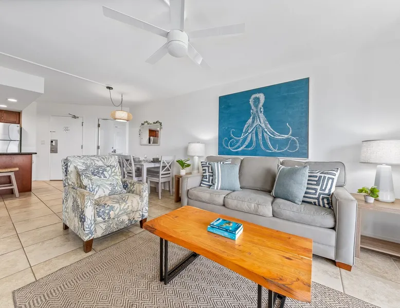 Maui Banyan P301 Spacious Remodeled 2Bedroom Kihei Condo Across the Street from the Beach! Perfect Maui Getaway for Fun and Relaxation. Air Conditioning, Pool, Tennis, and Beach The space FREE daily activities included with your stay value up to $554! Complimentary admission, every day of your stay*: Whale Watching (seasonal), Sunset Dinner Cruise, Molokini Snorkel Trip, Alpaca Farm Tour, Pineapple Farm Tour, and Tea Farm Tour. (S1) *One ticket per activity per day. Additional details provided after confirmed booking. Spend your perfect beach vacation at this completely remodeled third floor corner unit. At Maui Banyan P301, we provide all the comforts of home. It's the perfect place for a last minute weekend getaway or a family retreat to spend some quality time together to reconnect. We welcome you to share our home and make it your family tradition. Condo Highlights: -2 Bedroom, 2 Bathroom, Sleeps 6 guests -Window AC units in living room and bedroom2 -No AC in bedroom1 -King size bed in bedroom1 -2 Full size beds in bedroom2 -Sleeper-sofa in living room -Ceiling fans throughout -Spacious covered lanai with outdoor dining table for 4 -Flat-screen TVs in living room and both bedrooms -Fully equipped remodeled kitchen with stainless steel appliances -Indoor dining table for 6 and kitchen island seating for 2 -2 Full bathrooms with tiled walk-in showers -In-unit washer/dryer RESORT FEE: There is a $10/day resort fee collected by the Maui Banyan Resort front desk upon check in ($30 minimum and $180 maximum) Maui Banyan is conveniently located in South Kihei, right across the street from the beach. Take advantage of the amenities offered at this resort. Enjoy being near dining, shops, beaches, and golf. Resort Highlights: -2 Swimming pools -2 Hot tubs -BBQ area -Tennis courts -Elevators -24 Hour security -Across the street from Kamaole Beach II No Mail Allowed: We are unable to receive USPS mail, including letters and packages at this rental. For medical-related items, please contact our Reservations Team for assistance. Minimum age of primary renter: 25 We provide the following in every unit: -First Aid Kit -High Speed Internet -Linens and towels -Iron and ironing board -Hair dryer -Beach towels, Beach chairs, and Hard sided cooler -Starter Kit: Starter supply of shampoo, conditioner, body wash, lotion, hand soap, dish soap, laundry detergent, dishwasher tabs, toilet paper, paper towels, trash bags *We don’t provide beach umbrellas, toys, or gears, such as snorkeling, due to safety, health, and hygiene risks. BEACHES & CRITTERS: The beach size in Hawaii varies month to month due to weather, heavy surf, strong currents, and tides. Due to Maui’s rural setting, you may experience the occasional rooster, as well as harmless geckos. Geckos are friendly, eat insects, and are considered good luck in Hawaii. Please don’t kill them. Although the HOA schedules regular professional pest control services, pests such as ants, roaches and rodents simply cannot be completely controlled in the tropics. Maui is in a tropical climate. If our guest spot more than the normal expected pests, we always make our best efforts to contact and work with the HOA to minimize your interactions with these pests. Any contact with such pests within or outside the unit does not constitute a breach of this Agreement or give Guest any right to any refund or rental adjustment. **We make no guarantee that properties adjacent to the Unit will be free from disturbances, including but not limited to noise or inconvenience from construction, traffic or other guests or neighbors. Any such disturbance shall not constitute a breach of this Agreement or give Guest any right to any refund or rental adjustment. By booking your stay with us, you accept that Host is not liable for any inconveniences arising from any temporary defect or stoppage in supply of water, electricity, air conditioning or plumbing that is beyond their control. Host is not liable for any loss or damage to Tenants’ personal property caused by weather conditions, natural disasters, or other events beyond their control. Tenants accept that the cable and internet service at the Rental can be sporadic and unreliable at times, and Tenant shall not be entitled to any refund of the rental fee in the event either of these services are unavailable or not operating properly during Tenants’ stay. Registration Details 390040050169, TA-190-309-4272-01
