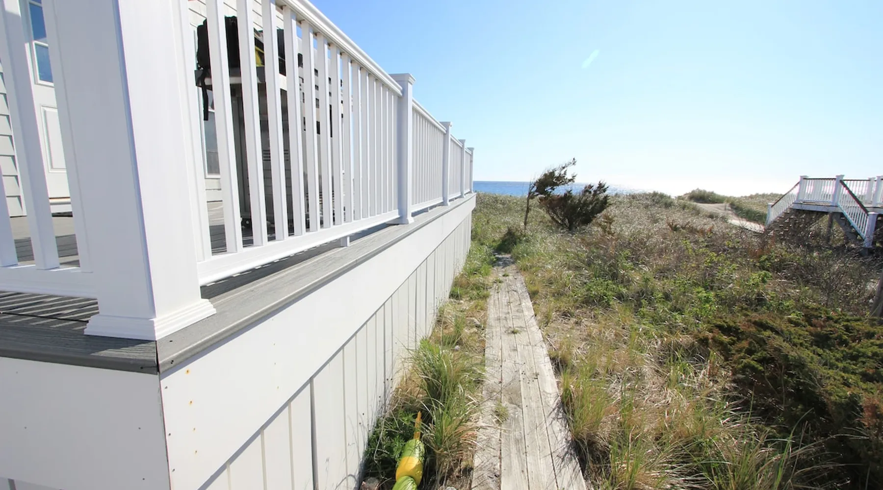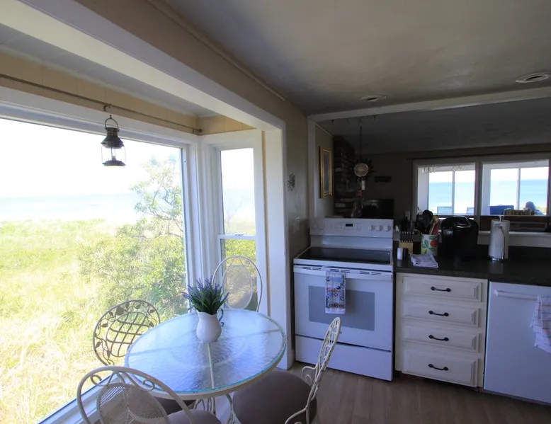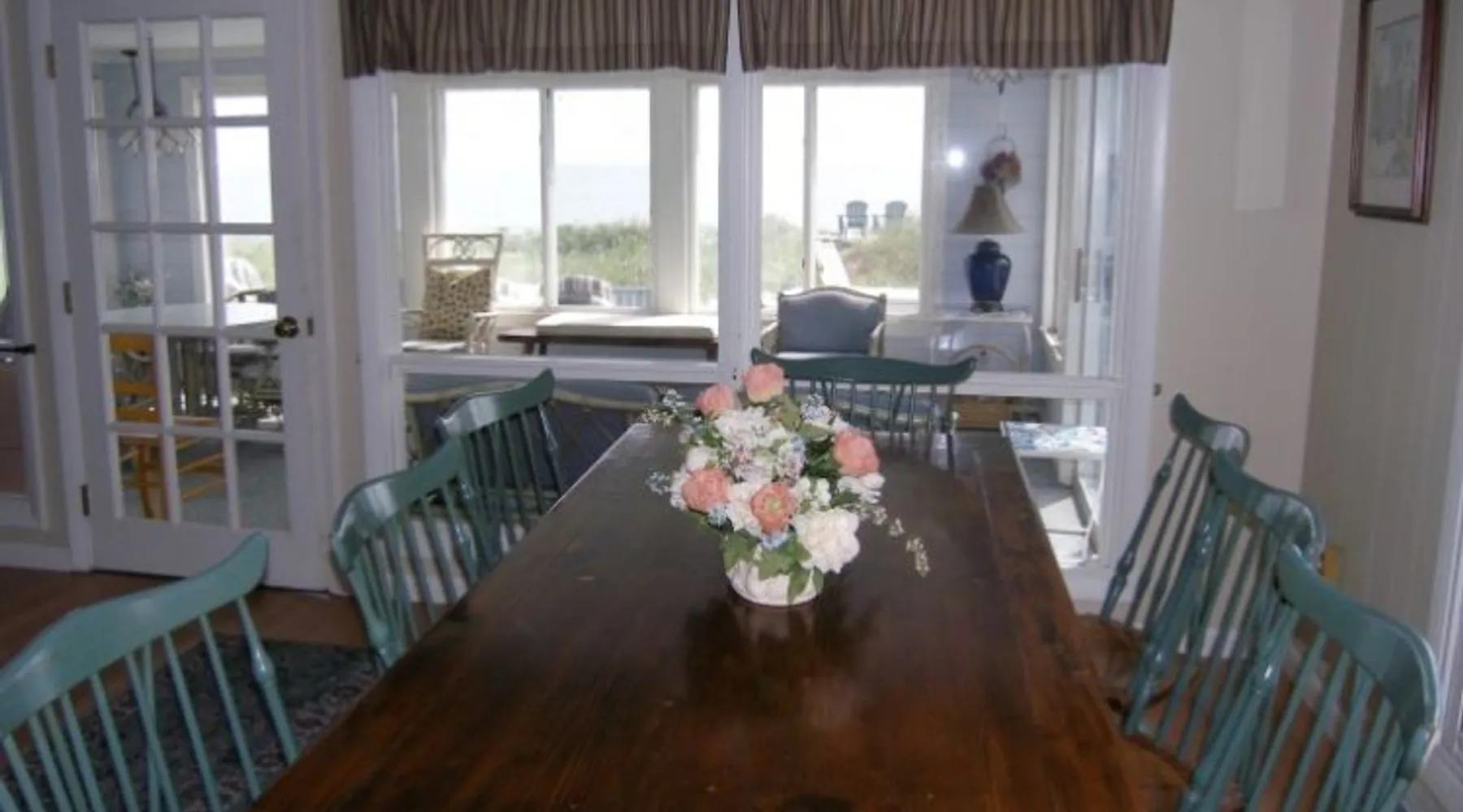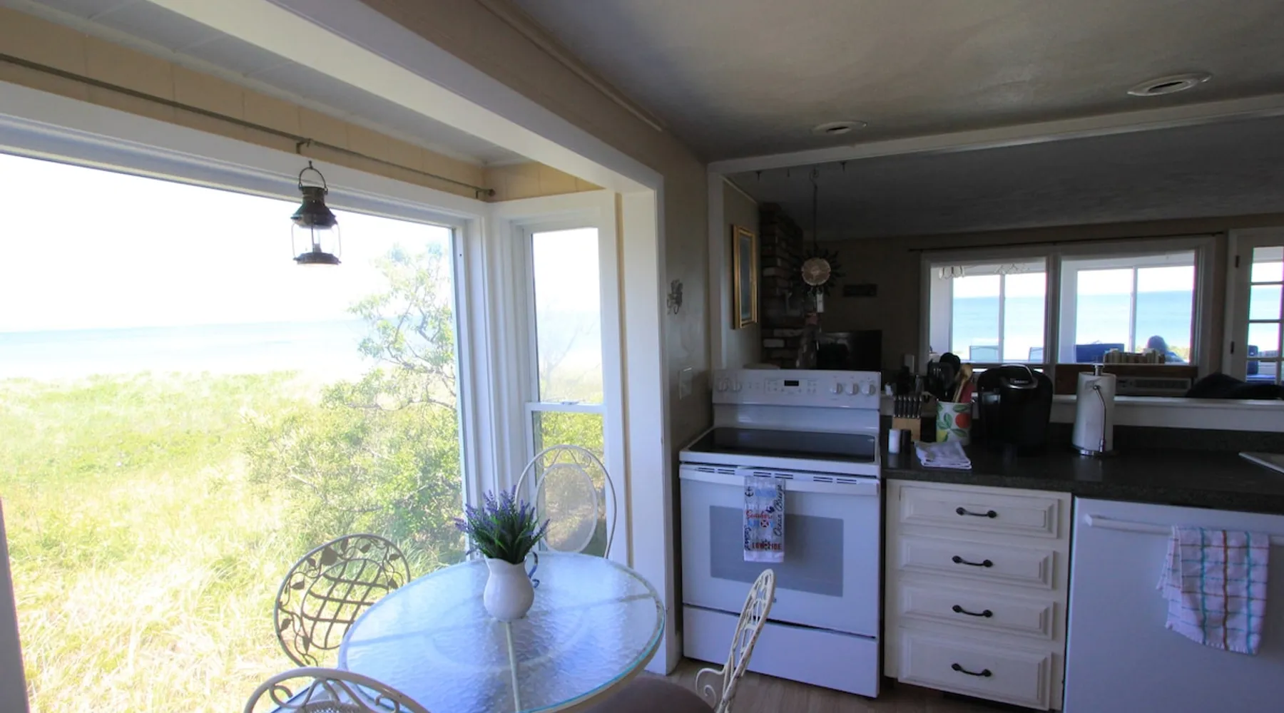 This spacious ocean view home is the perfect Cape Cod getaway for large families or groups of friends. With seven bedrooms, multiple living areas, and sweeping views of Cape Cod Bay from nearly every room, it’s a place made for relaxing, gathering, and making lasting memories. Enjoy morning coffee or evening cocktails on the wraparound deck as the ocean breeze drifts in — this Sagamore Beach retreat has everything you need for a comfortable and unforgettable stay. The space • Type: Large single-family home • Location: Sagamore Beach, with direct dune and ocean views • Approx. Size: Expansive layout with multiple living areas — ideal for large groups • Key Features: Wraparound deck with waterviews, fireplace, sunroom, Wi-Fi, laundry room, and fully equipped kitchen Bedrooms & Bathrooms • Bedroom 1: Queen bed (1st floor) • Bedroom 2: Two twin beds (1st floor) • Bedroom 3: Queen bed with private bath and ocean views (2nd floor, master) • Bedroom 4: Queen bed (2nd floor) • Bedroom 5: Queen bed (2nd floor) • Bedroom 6: Bunk room with 3 twins, one bunk bed, and one full bed (2nd floor) • Bedroom 7: Two twin beds (basement level) • Bathrooms: 3 full baths — one on the first floor and one on the second floor with shower and tub, and one in the master bedroom with shower Living Areas • Spacious living room with fireplace and ocean views • Cozy sunroom perfect for reading or morning coffee • Dining area adjacent to the kitchen for group meals • Additional lower-level space for bike and kayak storage Kitchen • Fully equipped kitchen with modern appliances including a drip and Keurig coffee maker plus second fridge in pantry area • Ample cabinet and counter space for cooking large meals • Dining table with seating for the group Outdoor Space • Wraparound deck with gas grill and stunning panoramic Cape Cod Bay views • Outdoor seating for dining and lounging • Enclosed outdoor shower Guest access entire house Other things to note • Parking: Parking for 4 cars in the driveway, additional parking across the street • Linens: Sheets and towels not provided — check out Dune Tootin Linen Rentals for pricing • Pets: Up to 2 dogs allowed ($100 fee for second dog) • A/C: A/C split unit (1 in first-floor living room, 4 on second floor — one in each bedroom); one window A/C unit available in second-floor closet if needed • Internet/TV: Wi-Fi and Smart TV with basic cable • Minimum Stay: 7-night minimum (Saturday–Saturday) • Check-in / Check-out: Check-in at 3 PM / Check-out at 10 AM; remote check-in with lockbox • Smoking: Not allowed • Other Notes: This large, comfortable home is perfect for multi-generational gatherings or family reunions, offering unmatched space and views of Cape Cod Bay.